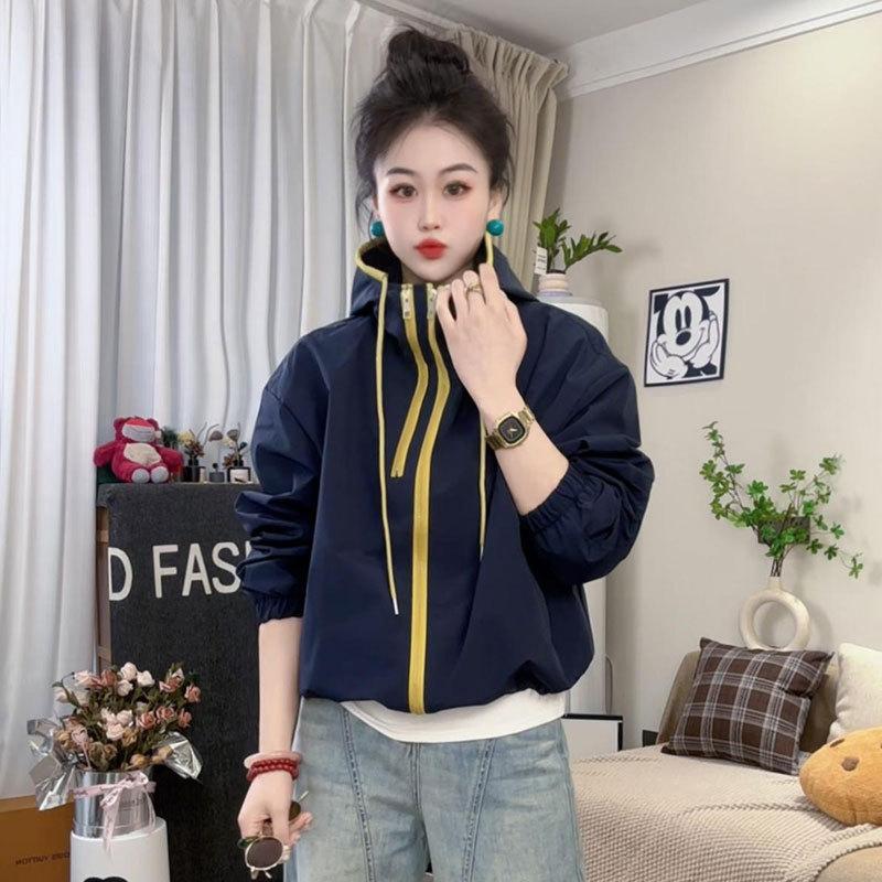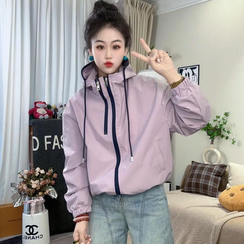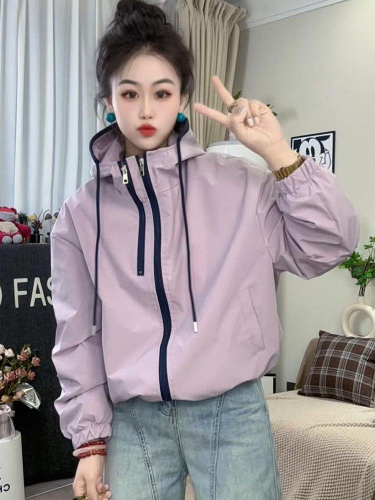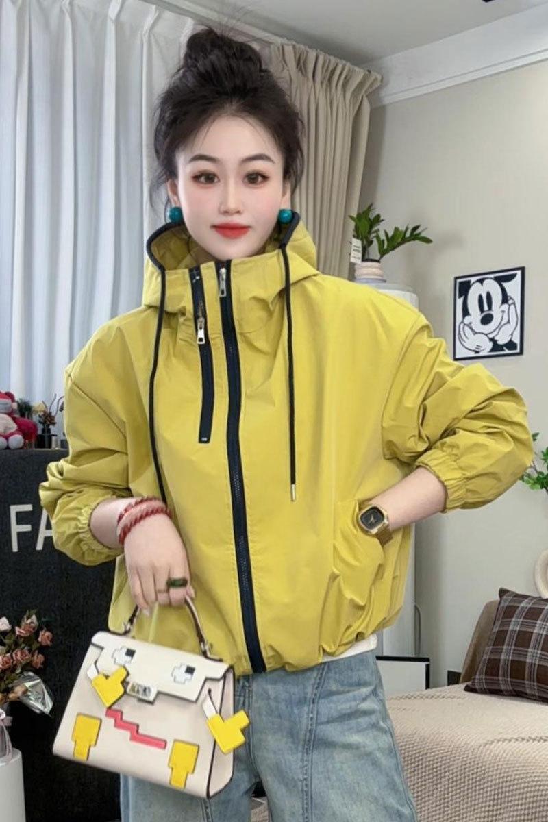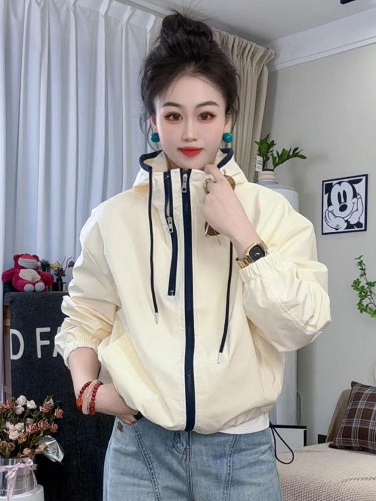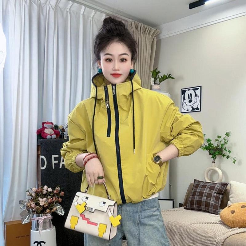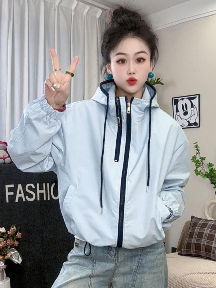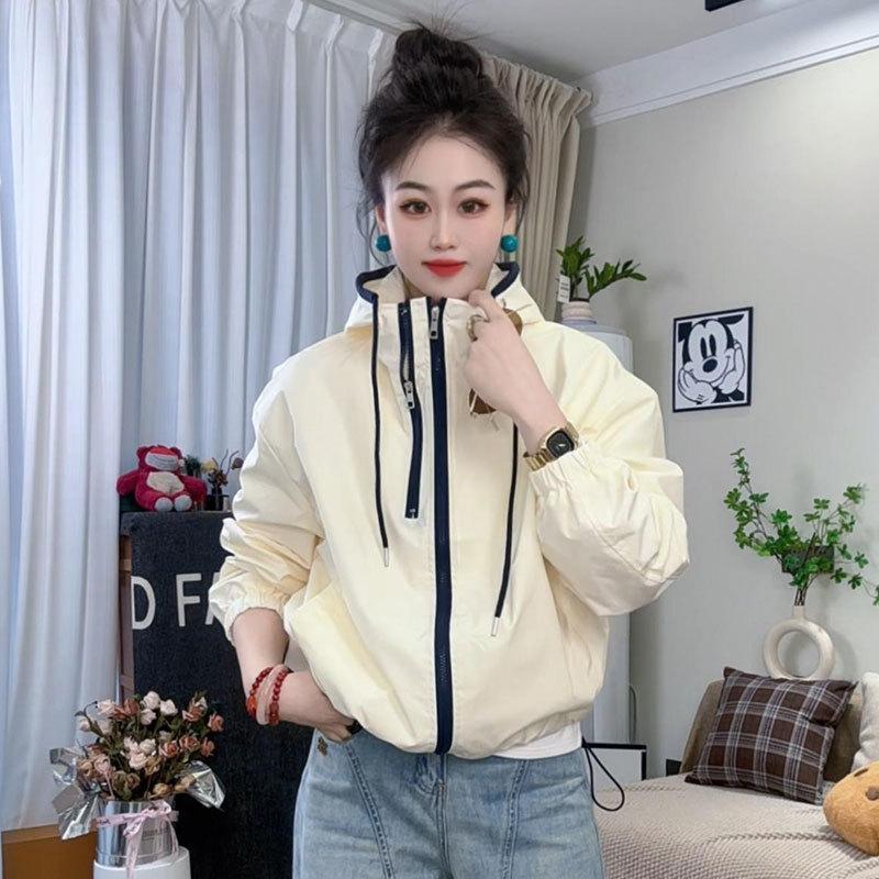 Chaqueta con capucha y protector solar para exteriores, estilo coreano, para mujer, primavera 2025, holgada y combinable.