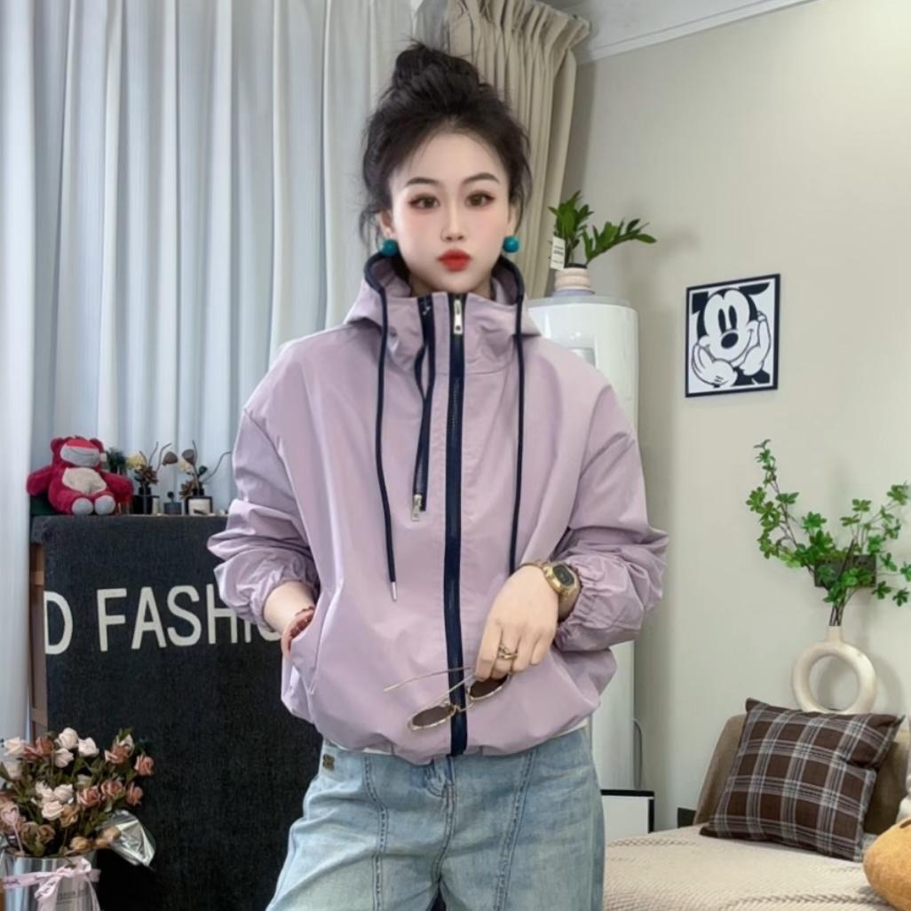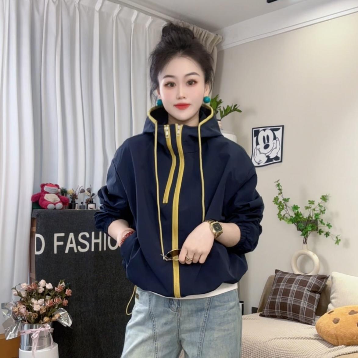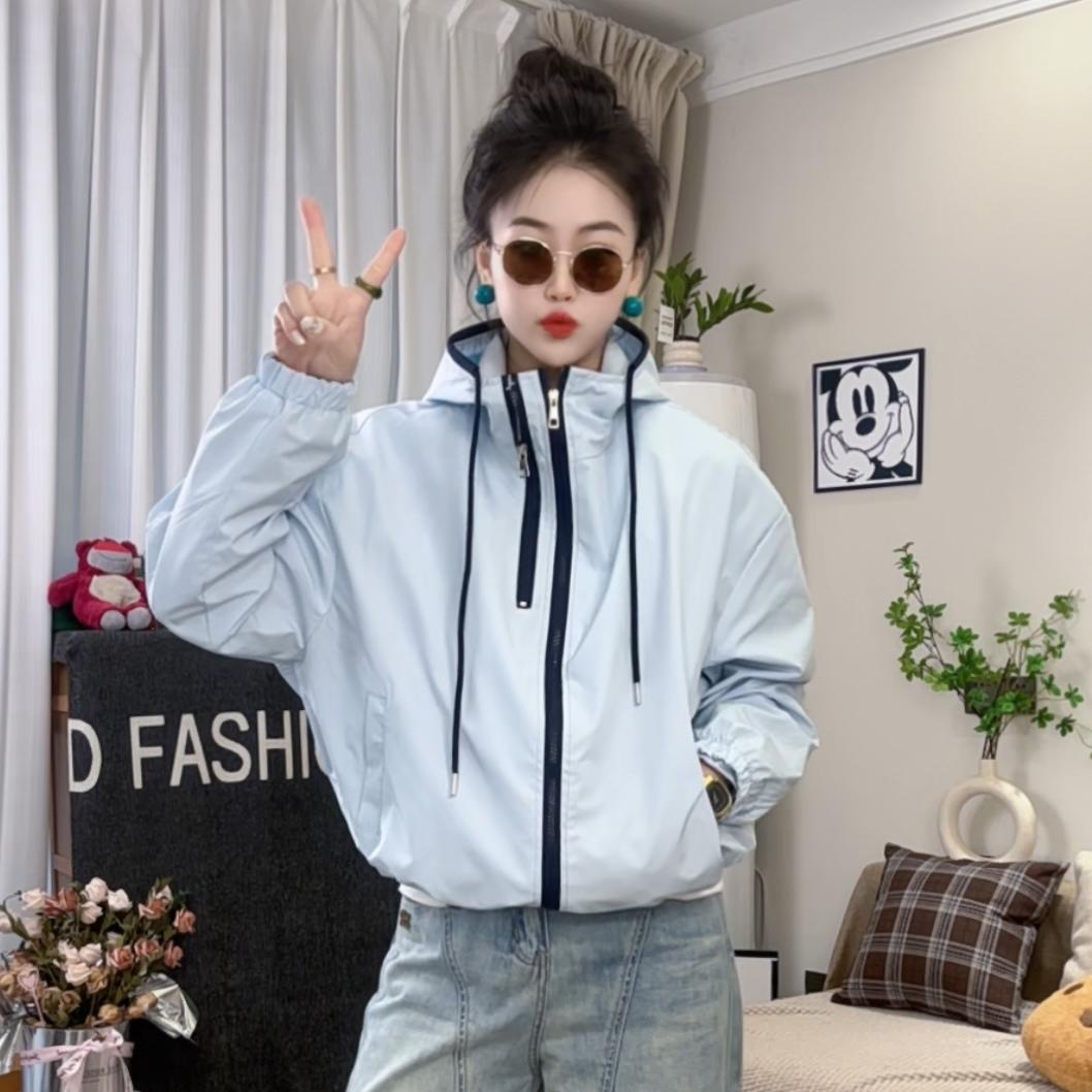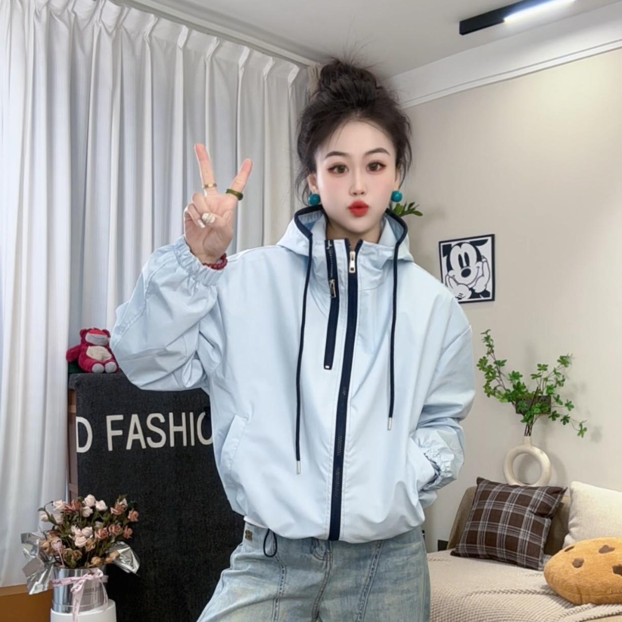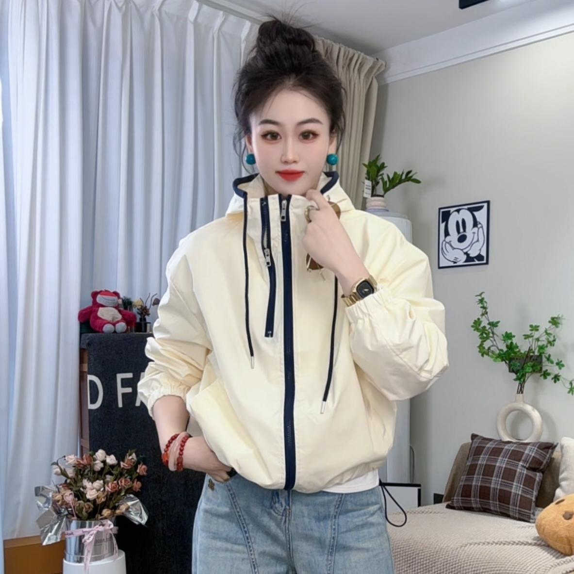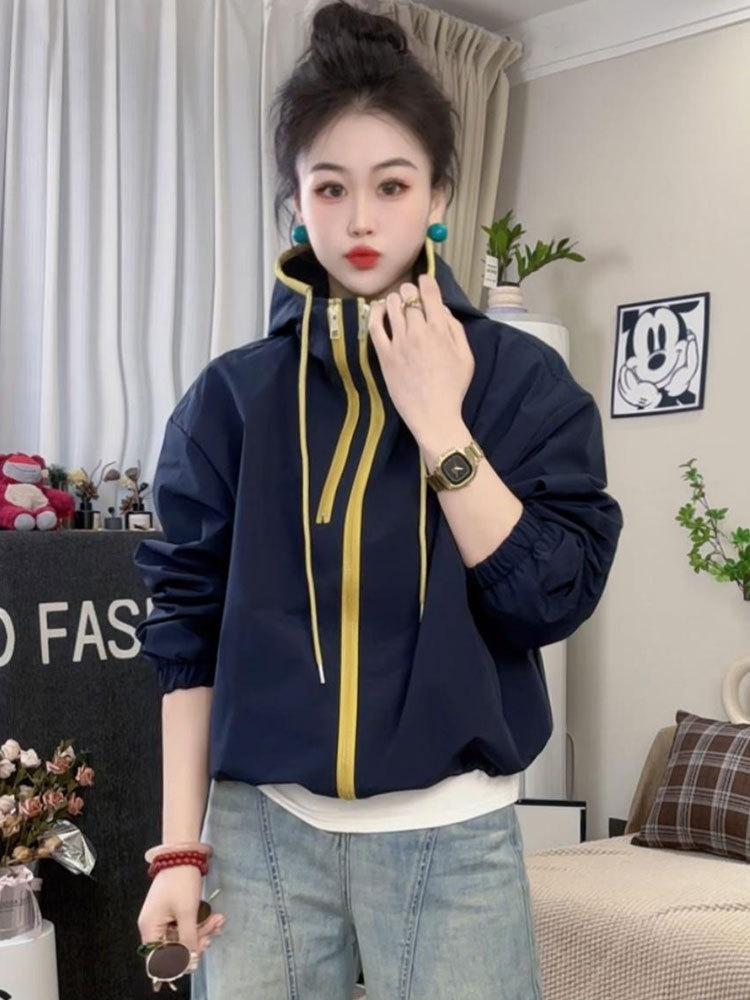 Chaqueta con capucha y protector solar para exteriores, estilo coreano, para mujer, primavera 2025, holgada y combinable.