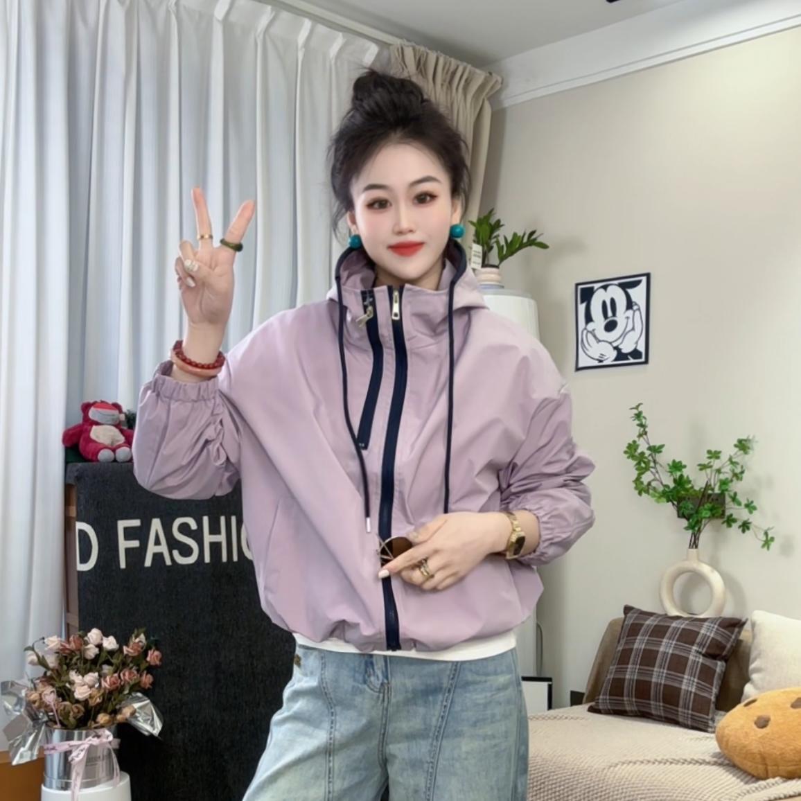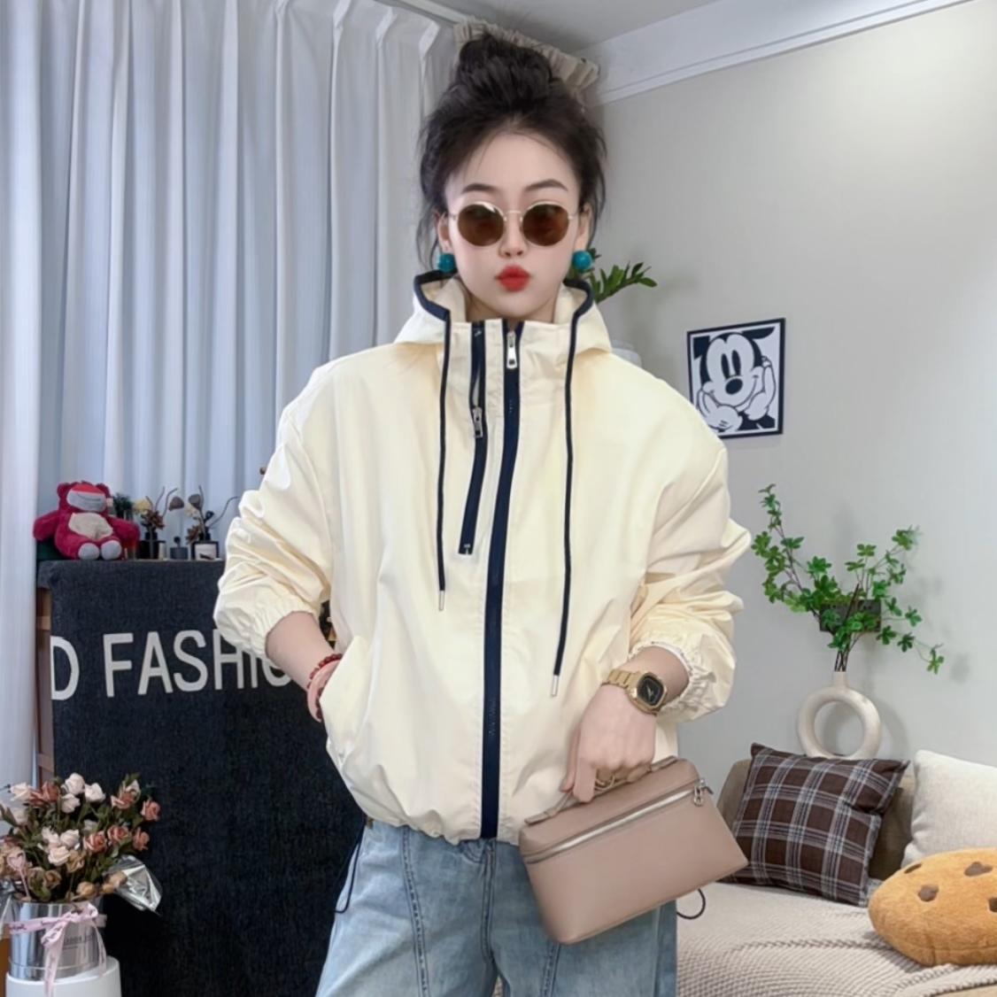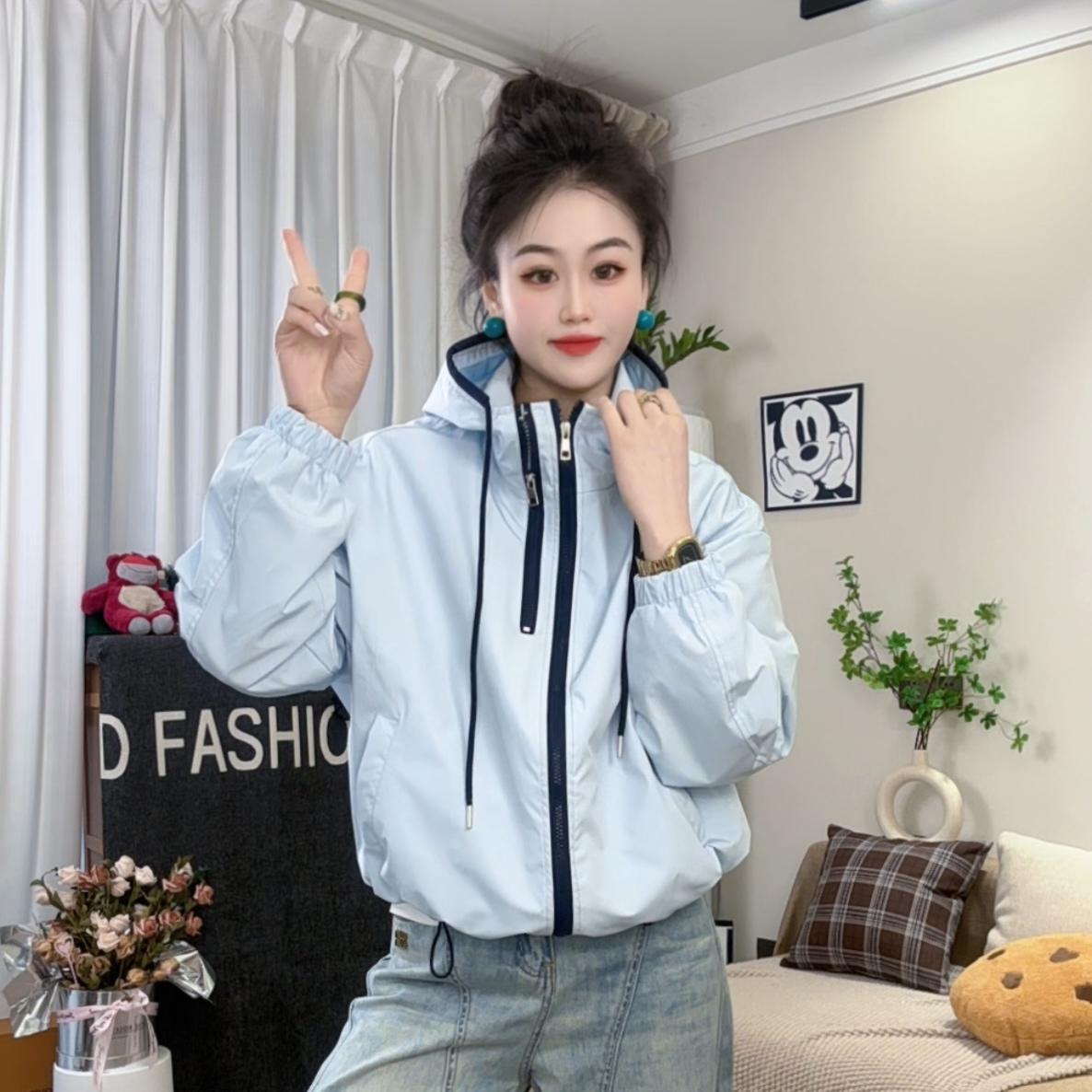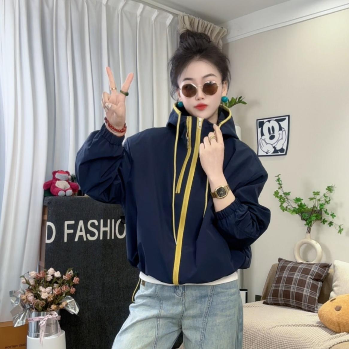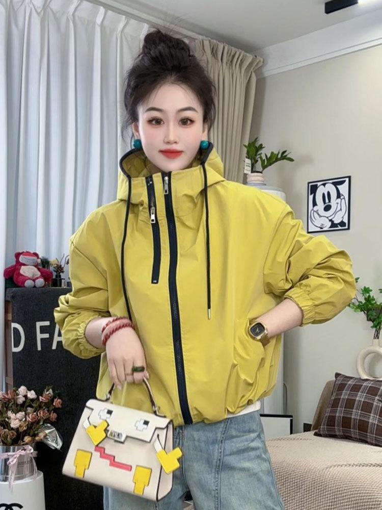 Chaqueta con capucha y protector solar para exteriores, estilo coreano, para mujer, primavera 2025, holgada y combinable.