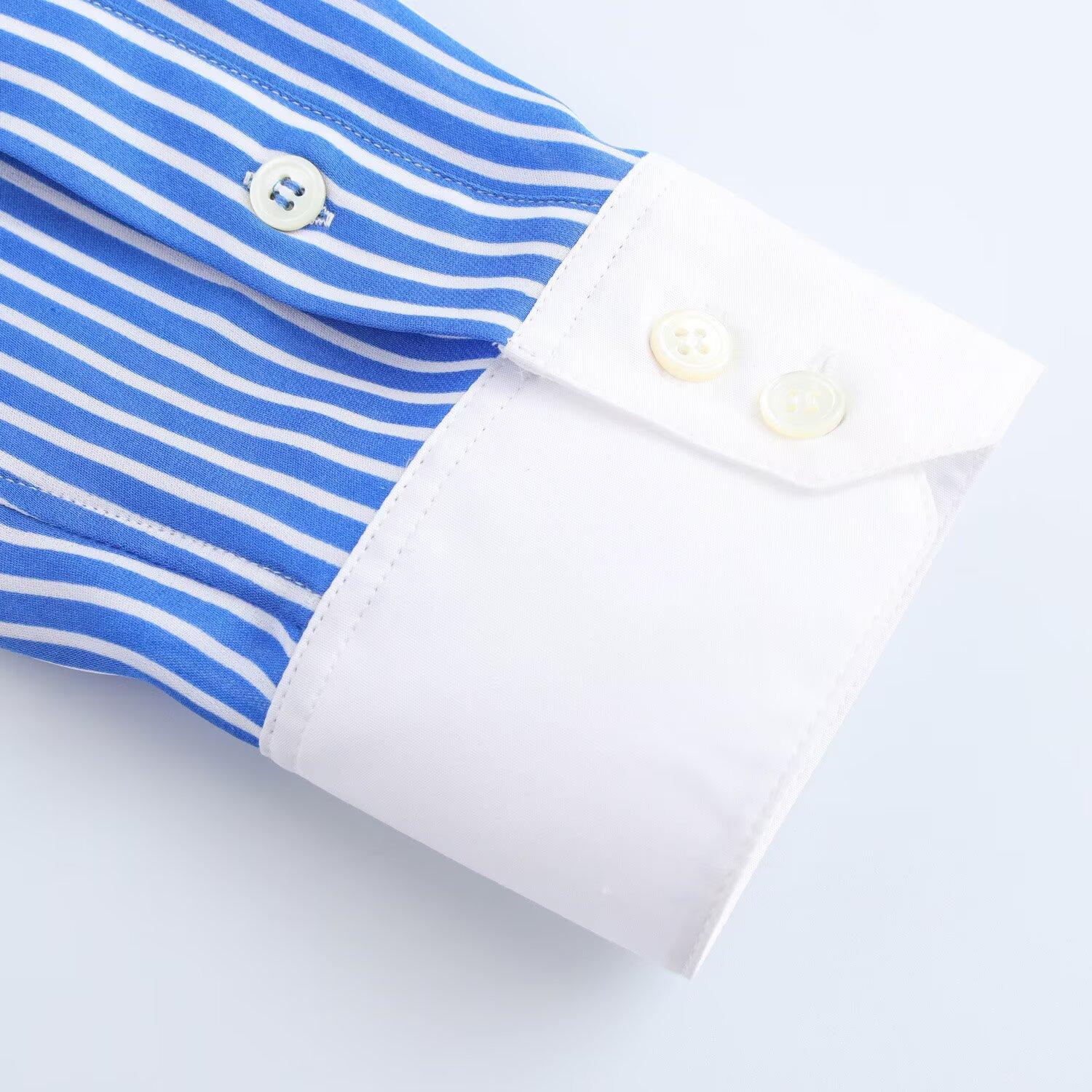 2025 primavera nuevo europeo y americano transfronterizo moda callejera para mujer camisa de manga larga a rayas mezclada w025 11268