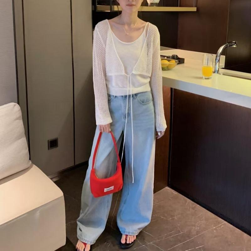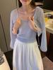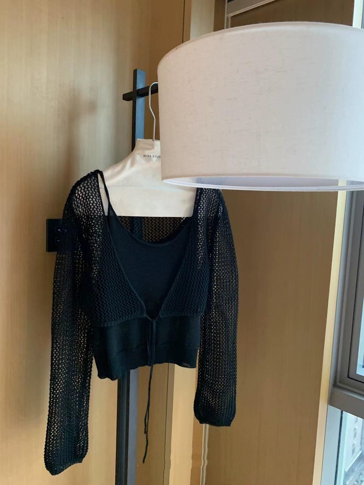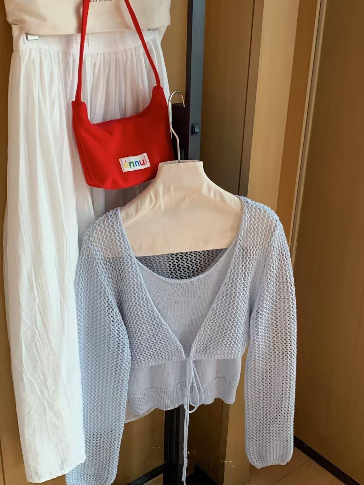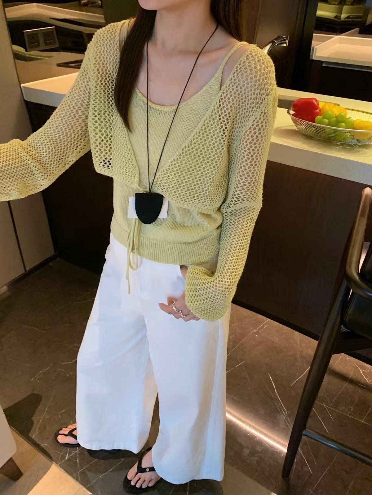 Chaleco de punto hueco de seda de hielo Conjunto de dos piezas Traje de protección solar para mujer Primavera y verano Chaqueta fina transpirable