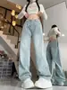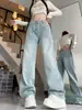 Pantalones vaqueros de pierna ancha de color claro para mujer, primavera y verano 2025, nuevos, de cintura alta, holgados, adelgazantes, rectos, modernos y largos.