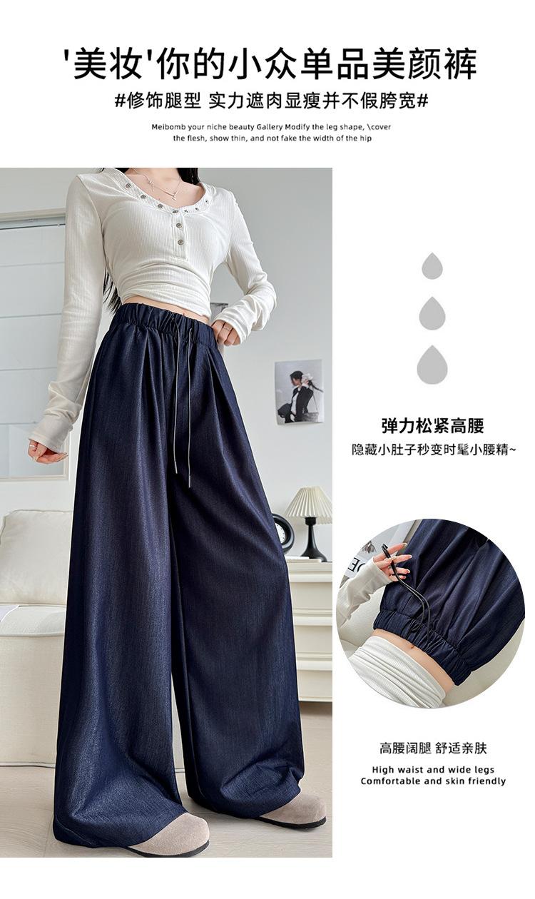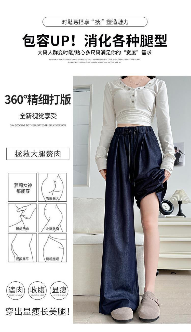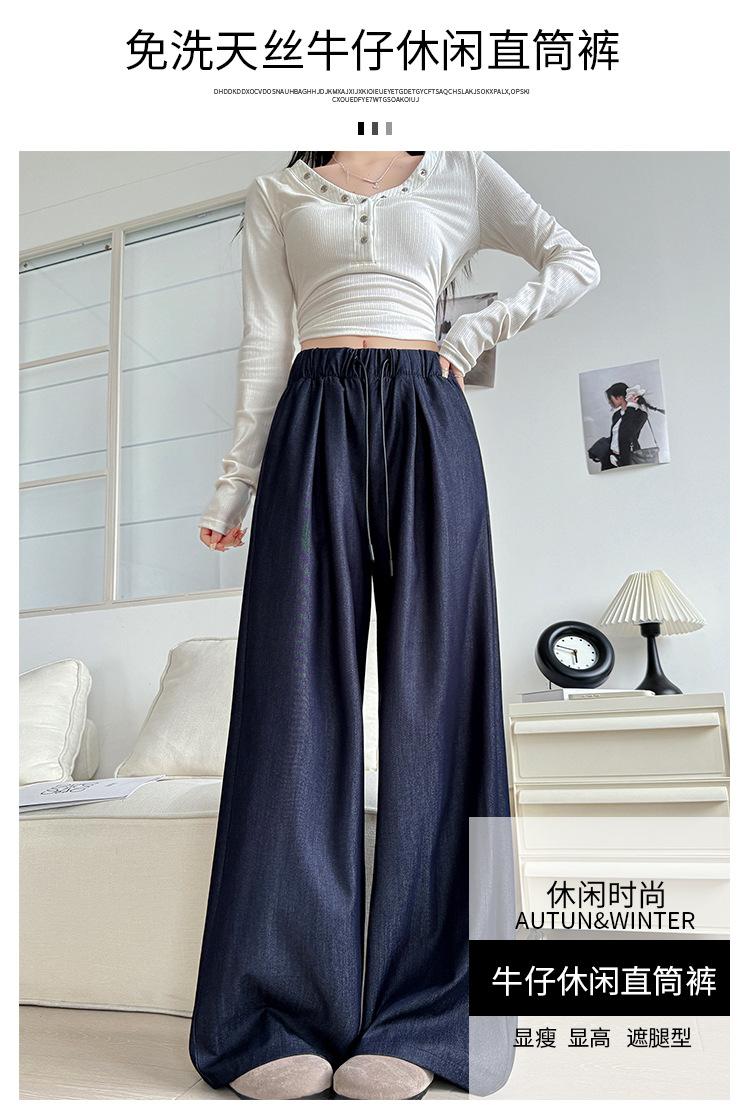 Jeans Tencel Sin Lavado para Mujer Primavera y Otoño 2025 Nuevo Slim Suelto Casual Rectos Cintura Alta Perezosos Pierna Ancha