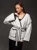 Cárdigan tejido con cordones cruzados de Amazon 2025 primavera Europa y Estados Unidos nuevo suelto color en contraste largo suéter de comercio exterior