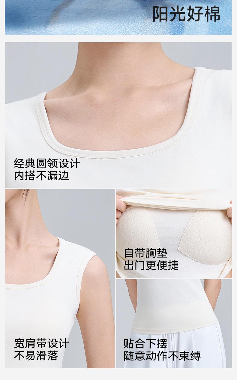 Chaleco de Algodón Puro para Mujer Cinturón Almohadilla para el Pecho Base Interna Tirantes 2025 Nuevo Cuello Cuadrado Sin Mangas Ropa Exterior Top Fresco Primavera y Verano