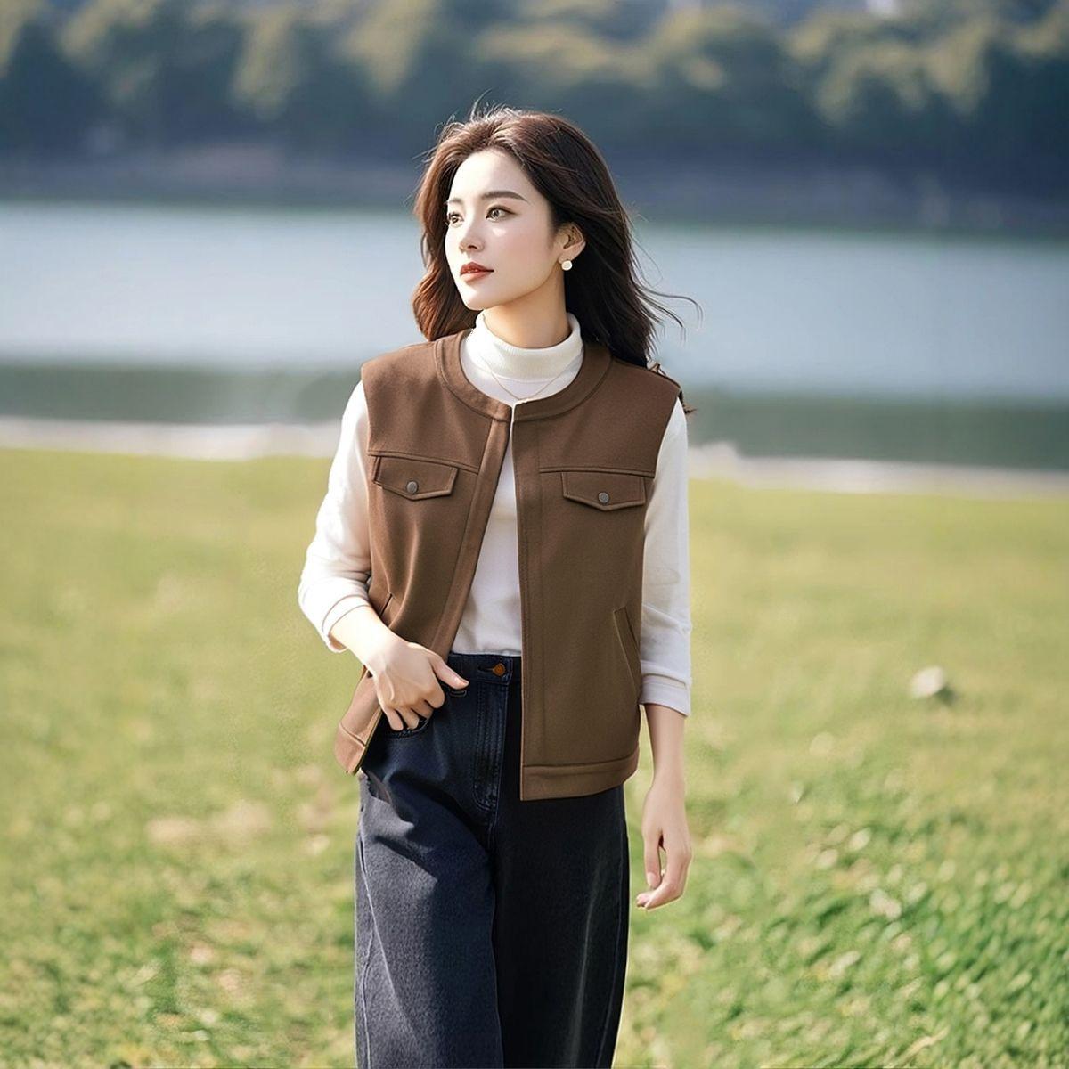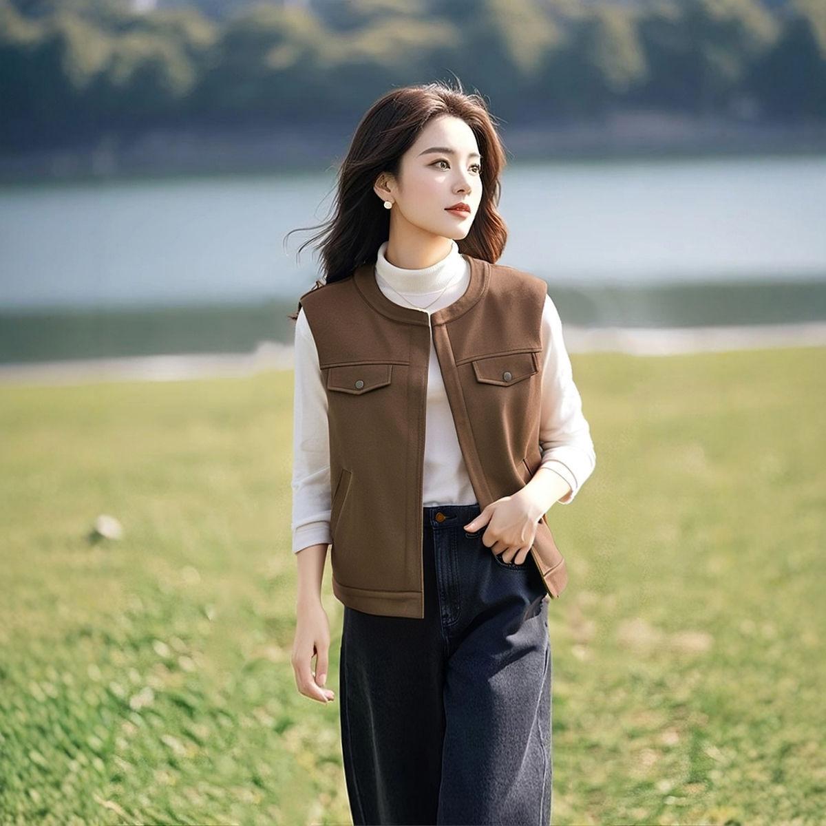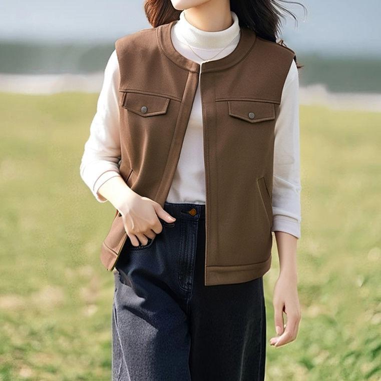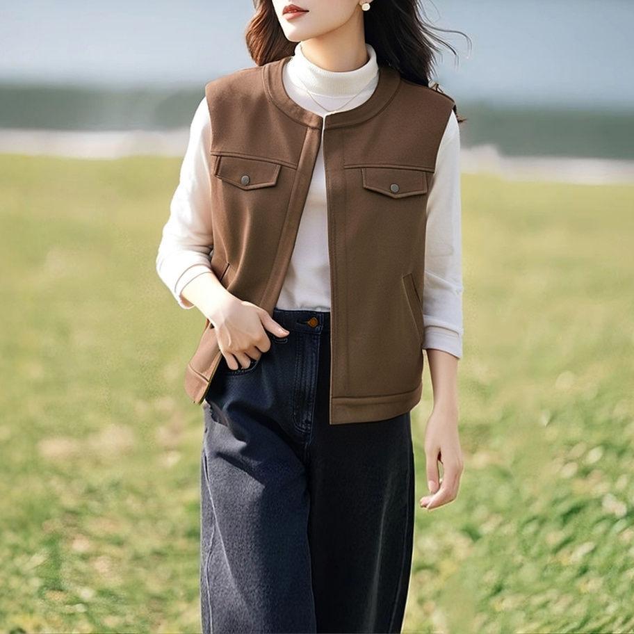 Cárdigan Chaleco Francés Retro de Gamuza en Capas para Mujer para Principios de Primavera y Otoño, Top Chaleco Exterior sin Mangas Elegante y que Reduce la Edad