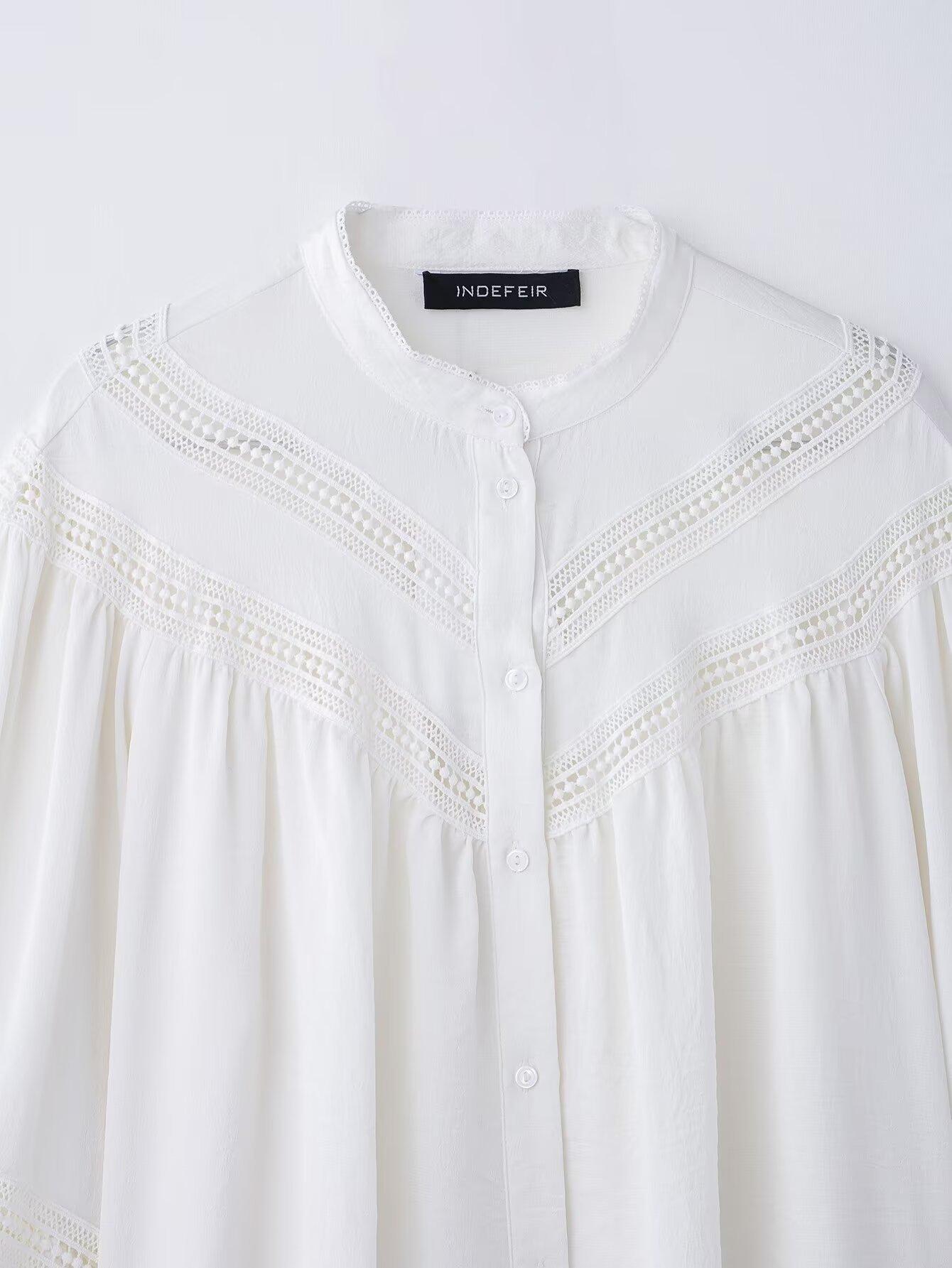 Amazon Comercio Exterior Transfronterizo Mujeres Europeas y Americanas 2025 Principios de Primavera Nuevo Camisa Recta de Encaje Dulce Fresca