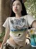 Playera Retro Europea y Americana de Manga Corta con Hombro Derecho Descubierto para Mujer Verano Tendencia Ins Diseño Chic Único Nicho Top Corto de Algodón Puro