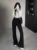 Pantalones Acampanados Negros para Mujer, Nuevo Estilo Primavera y Otoño 2025, Cintura Alta, Adelgazantes, con Caída, Pantalones Bootcut, Pantalones Casuales de Supermodelo Microacampanados