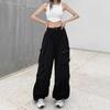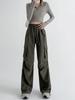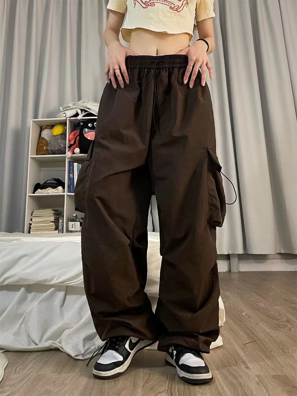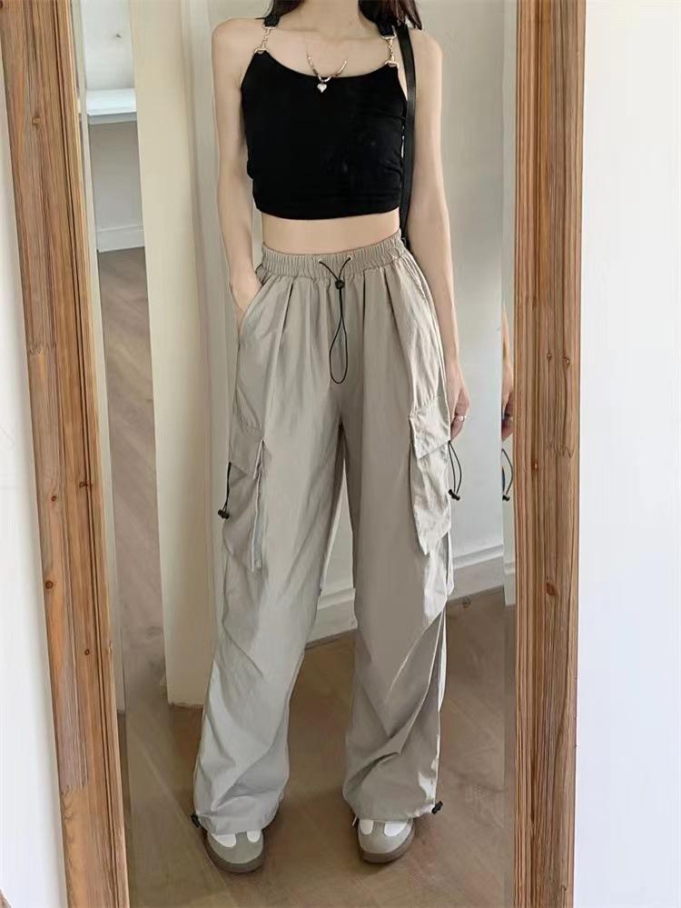 Pantalones Cargo de Secado Rápido 2025 para Mujer Verano Nuevo Pantalón Paracaídas Americano Cintura Alta Pierna Ancha Casual Cordón Deportivo