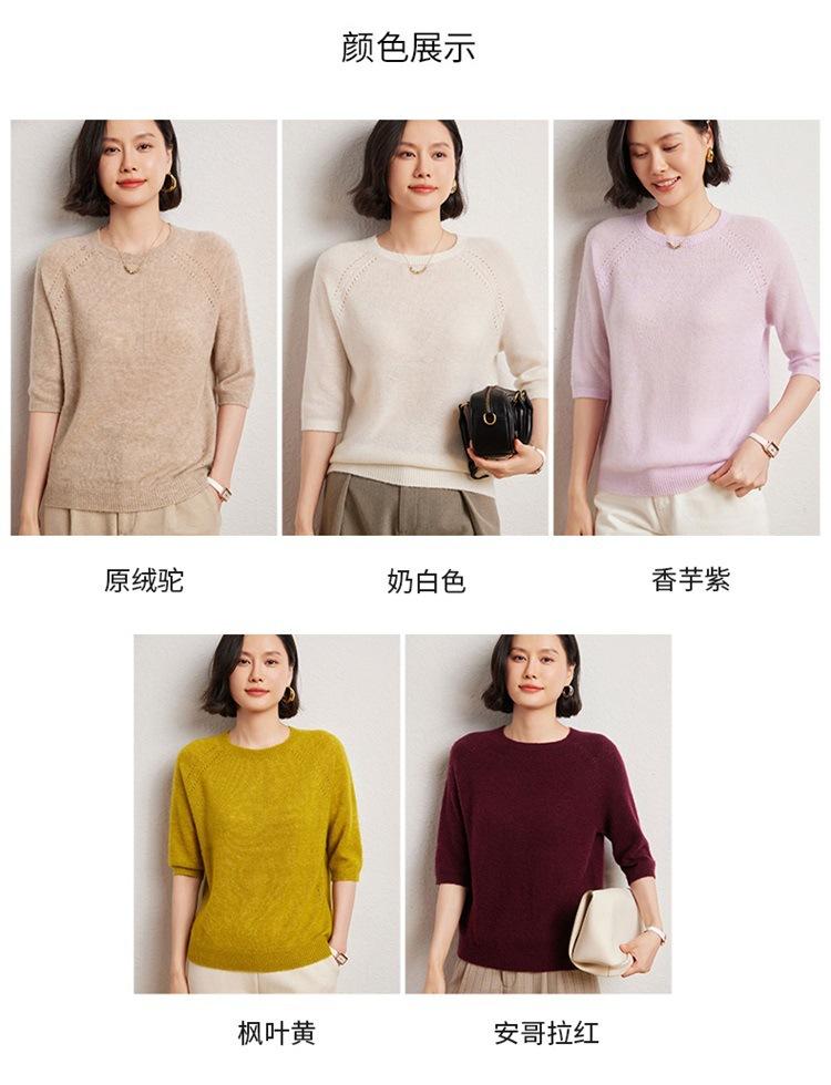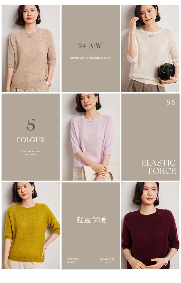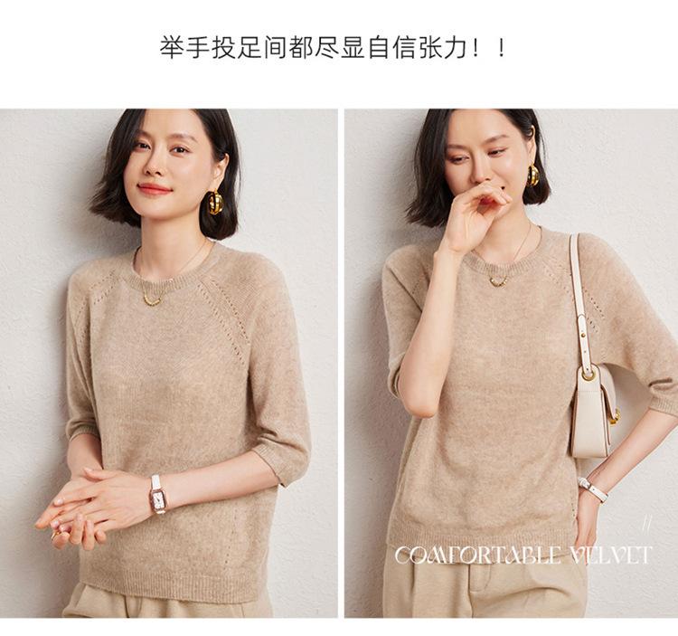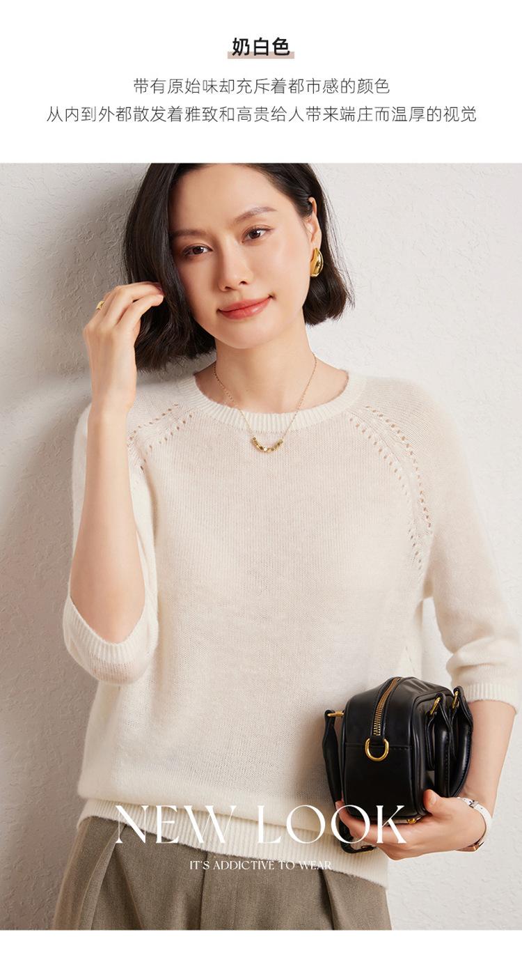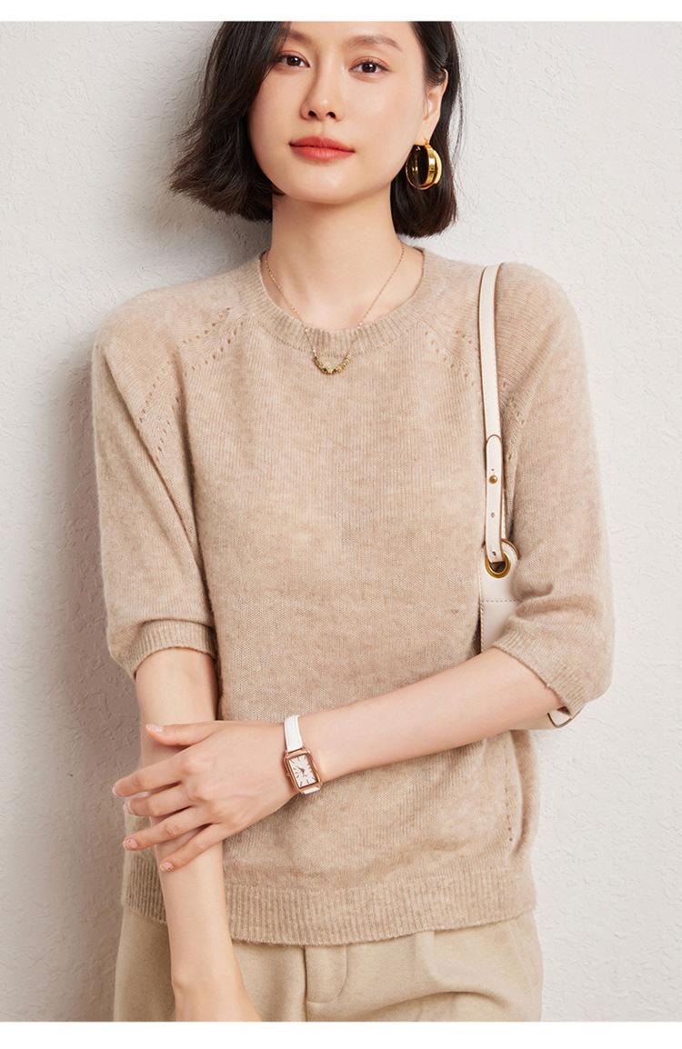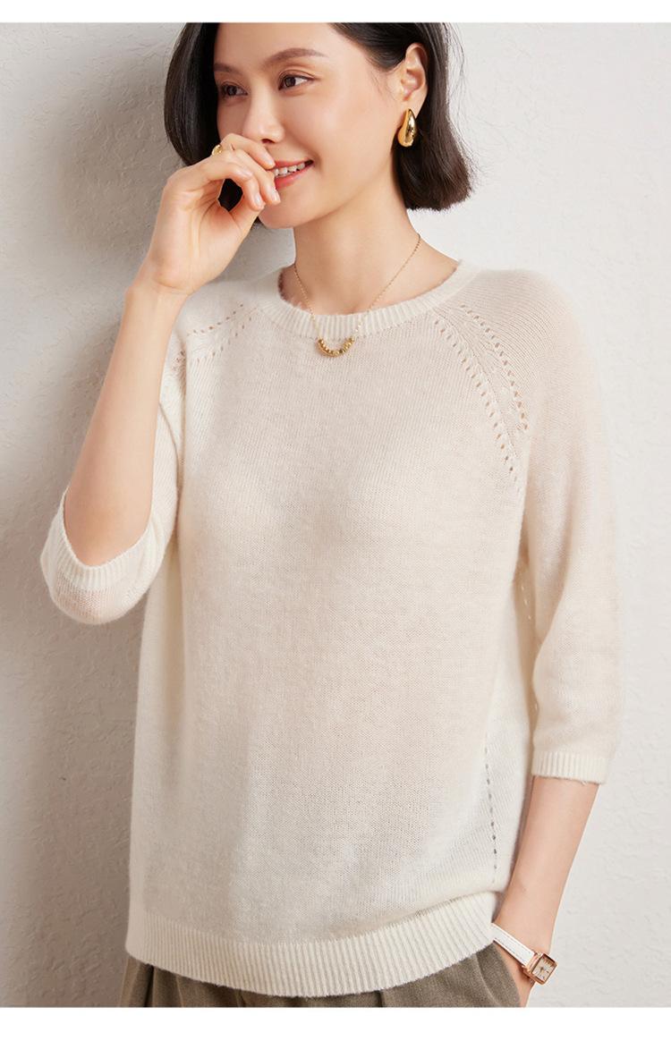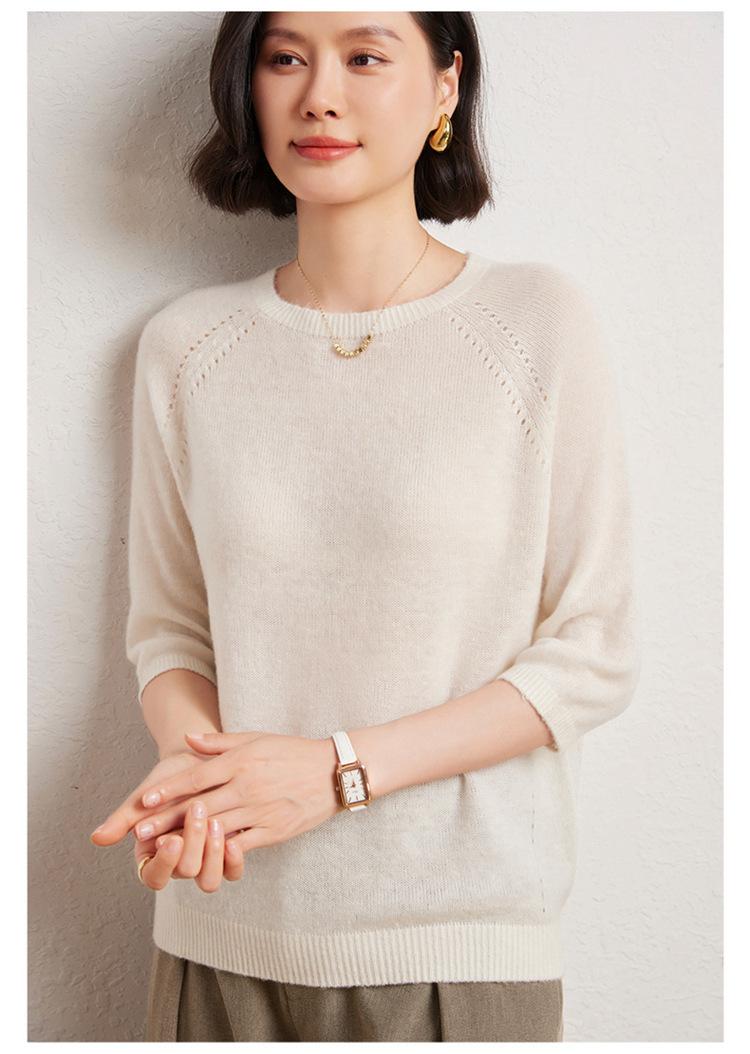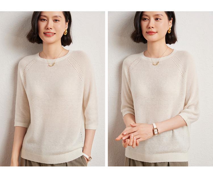 Top de Punto de Color Sólido de Cuello Redondo para Mujer con Mangas Tres Cuartos, Estilo Primavera y Otoño, Chaleco de Moda de Punto de Cachemira de Corte Ajustado
