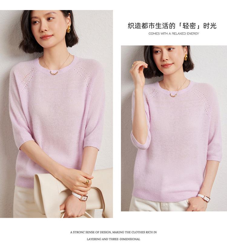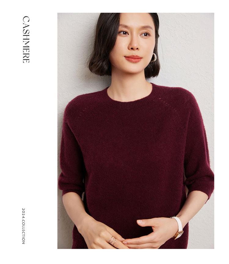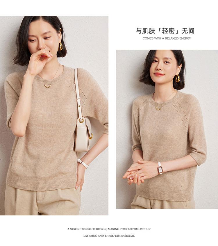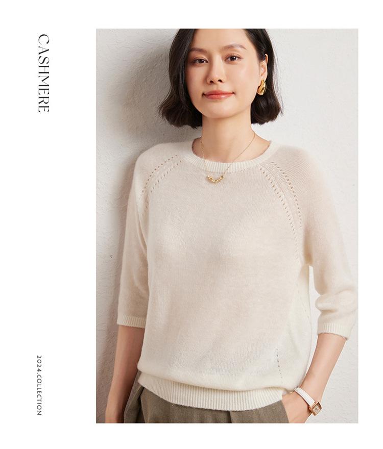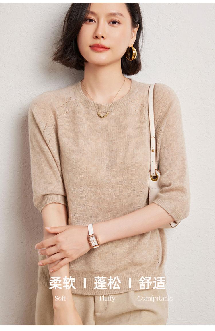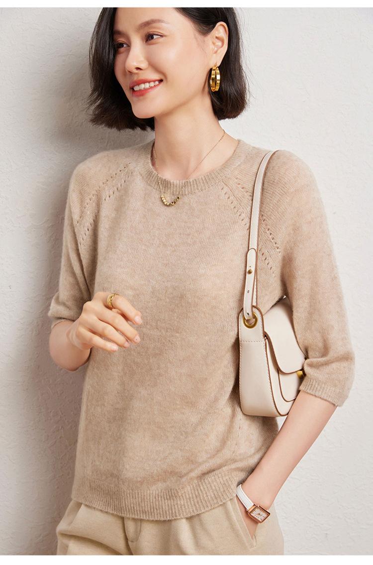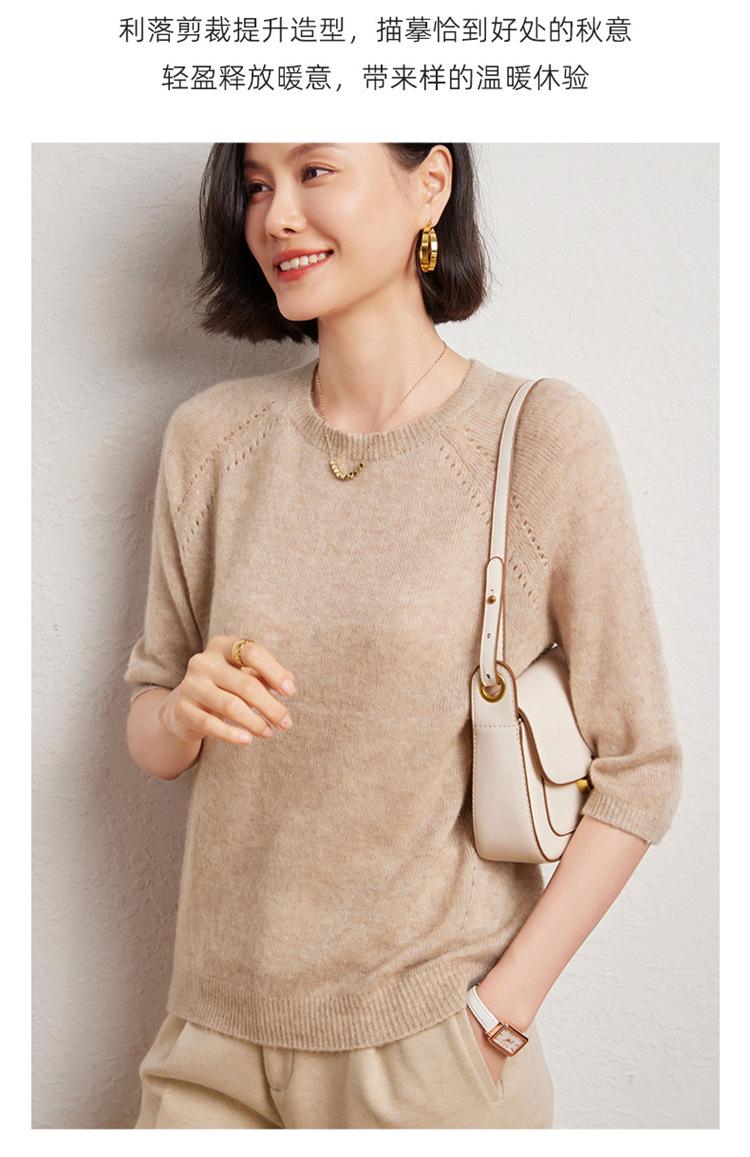 Top de Punto de Color Sólido de Cuello Redondo para Mujer con Mangas Tres Cuartos, Estilo Primavera y Otoño, Chaleco de Moda de Punto de Cachemira de Corte Ajustado