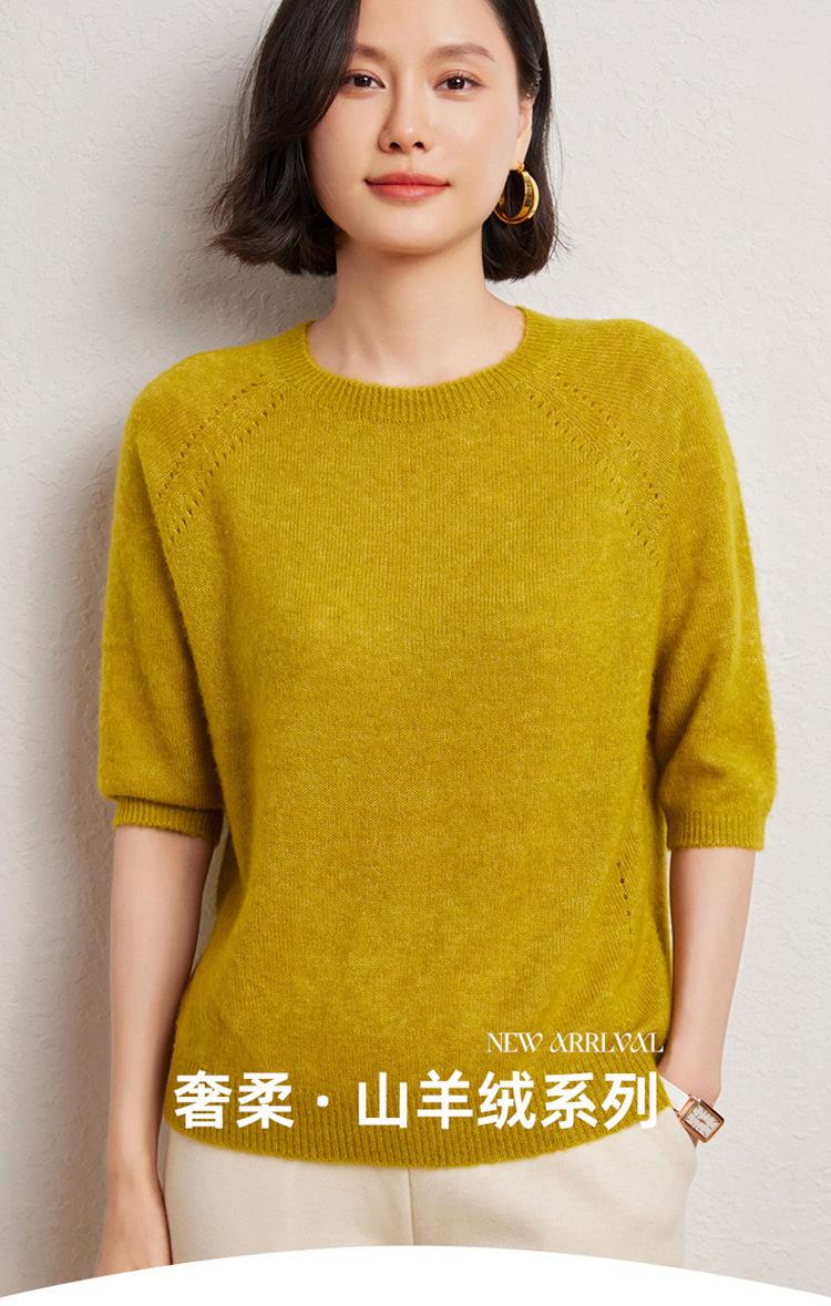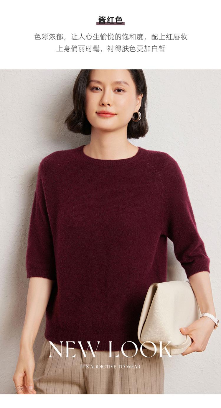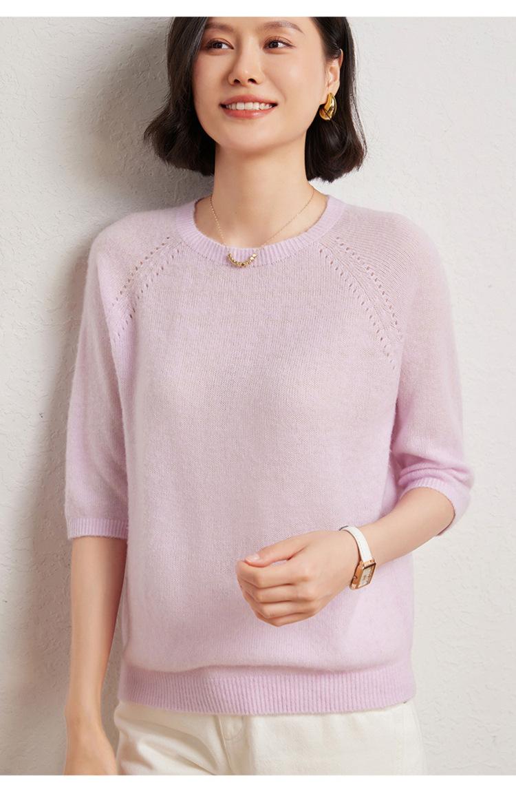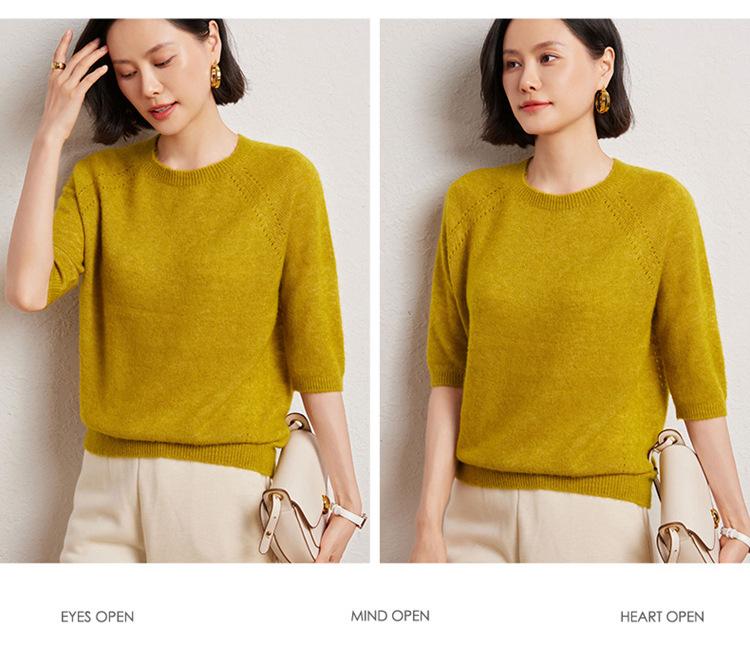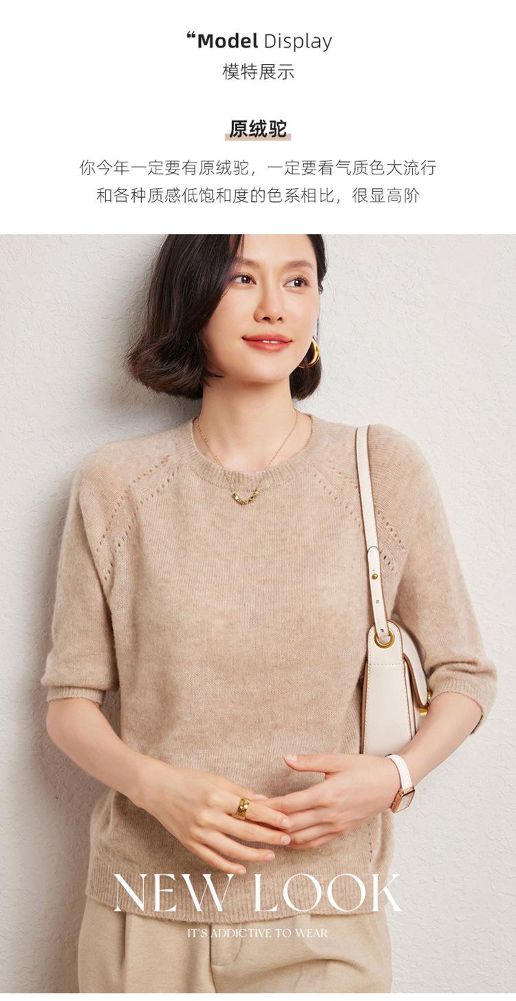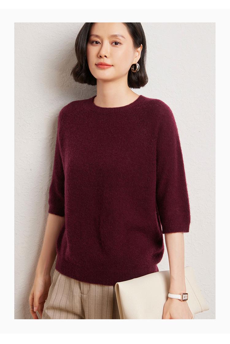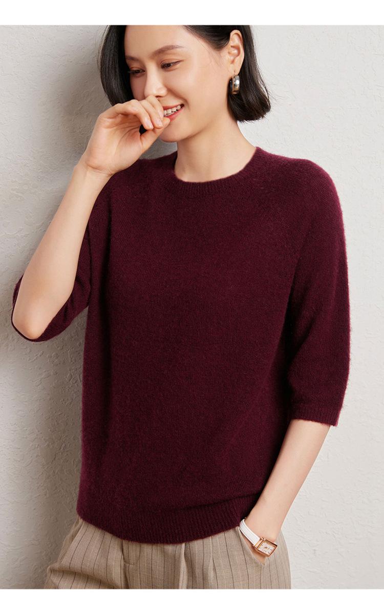 Top de Punto de Color Sólido de Cuello Redondo para Mujer con Mangas Tres Cuartos, Estilo Primavera y Otoño, Chaleco de Moda de Punto de Cachemira de Corte Ajustado