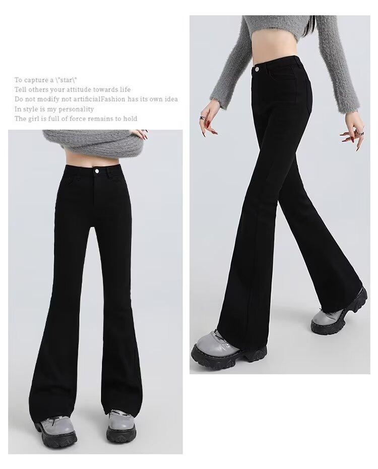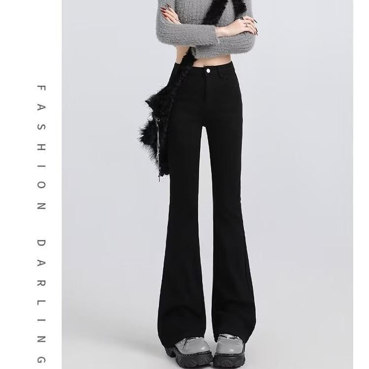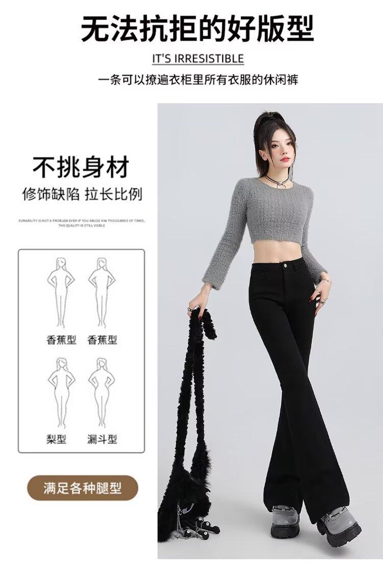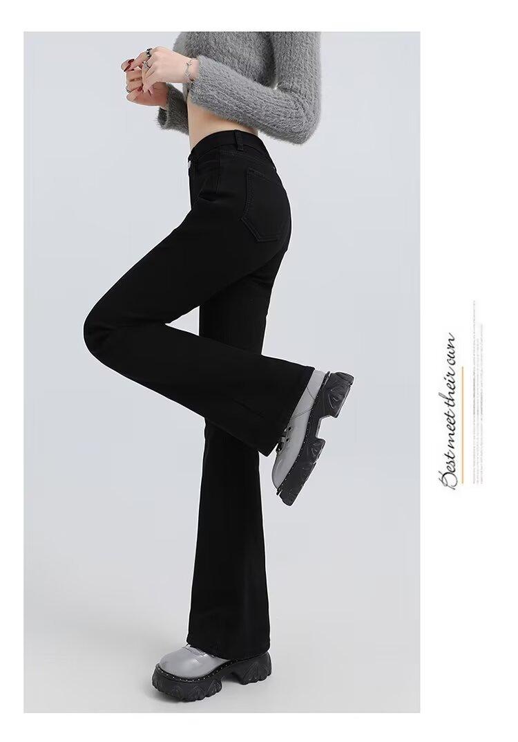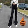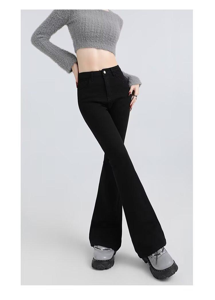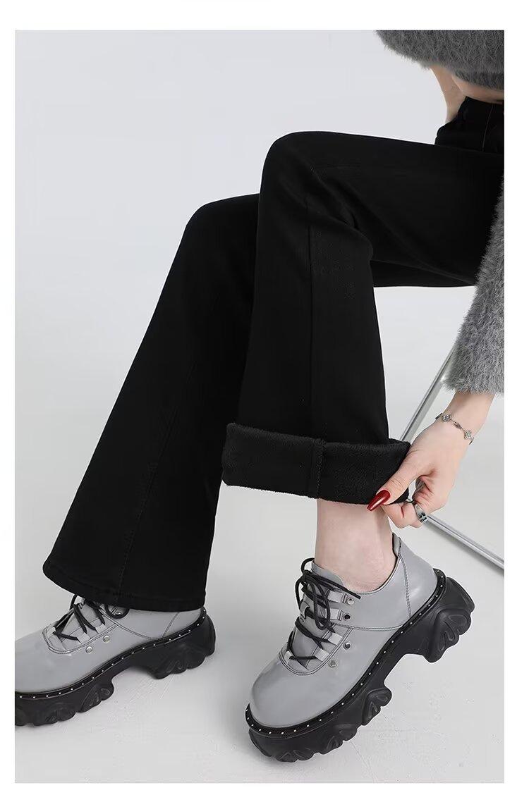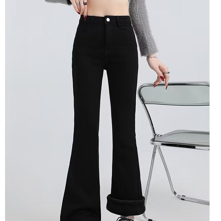 Jeans acampanados gruesos con forro polar negro para mujer, cintura alta, elásticos, corte ajustado, adelgazantes, pantalones de otoño e invierno para mujer