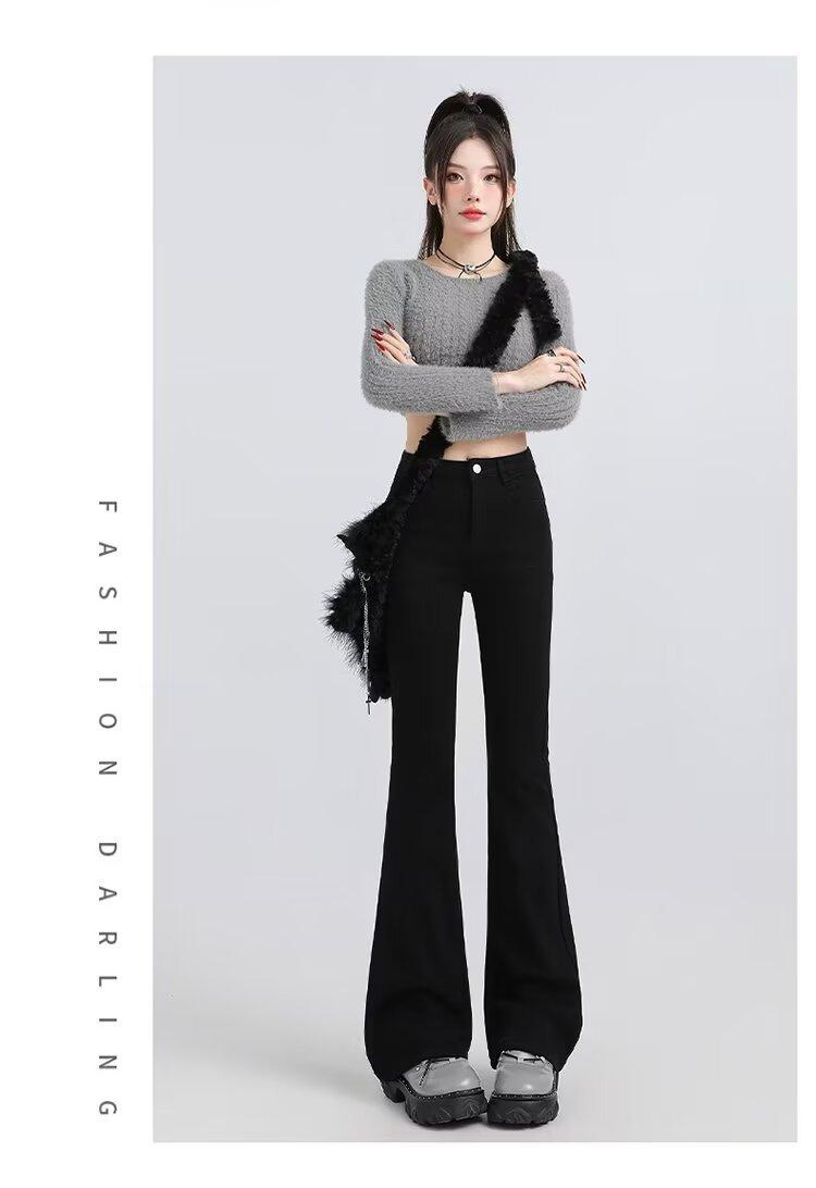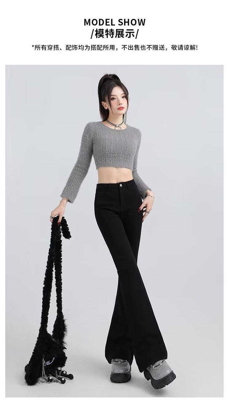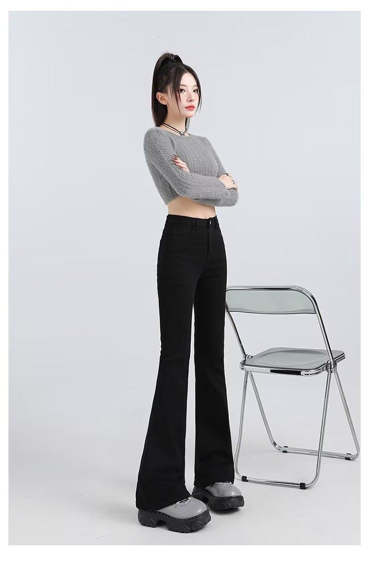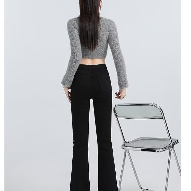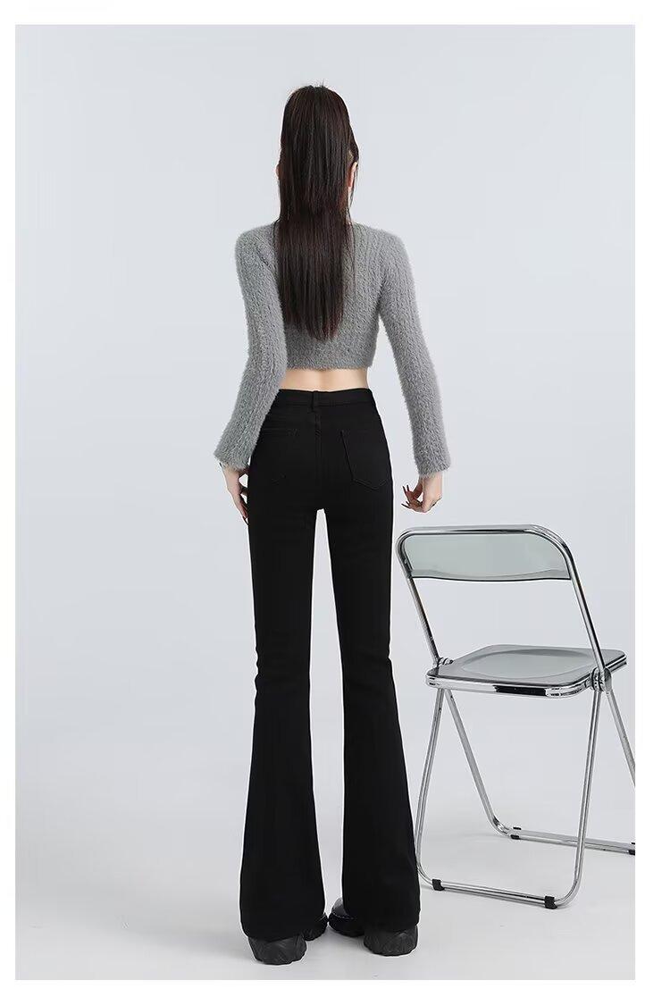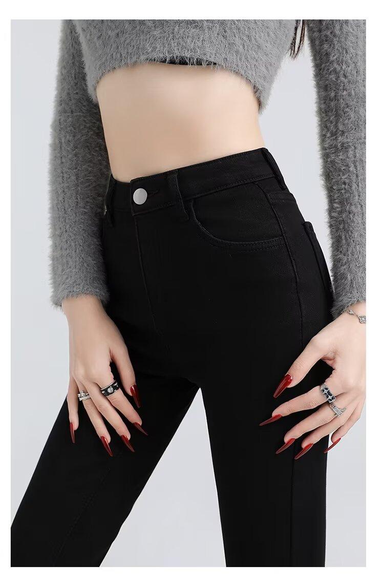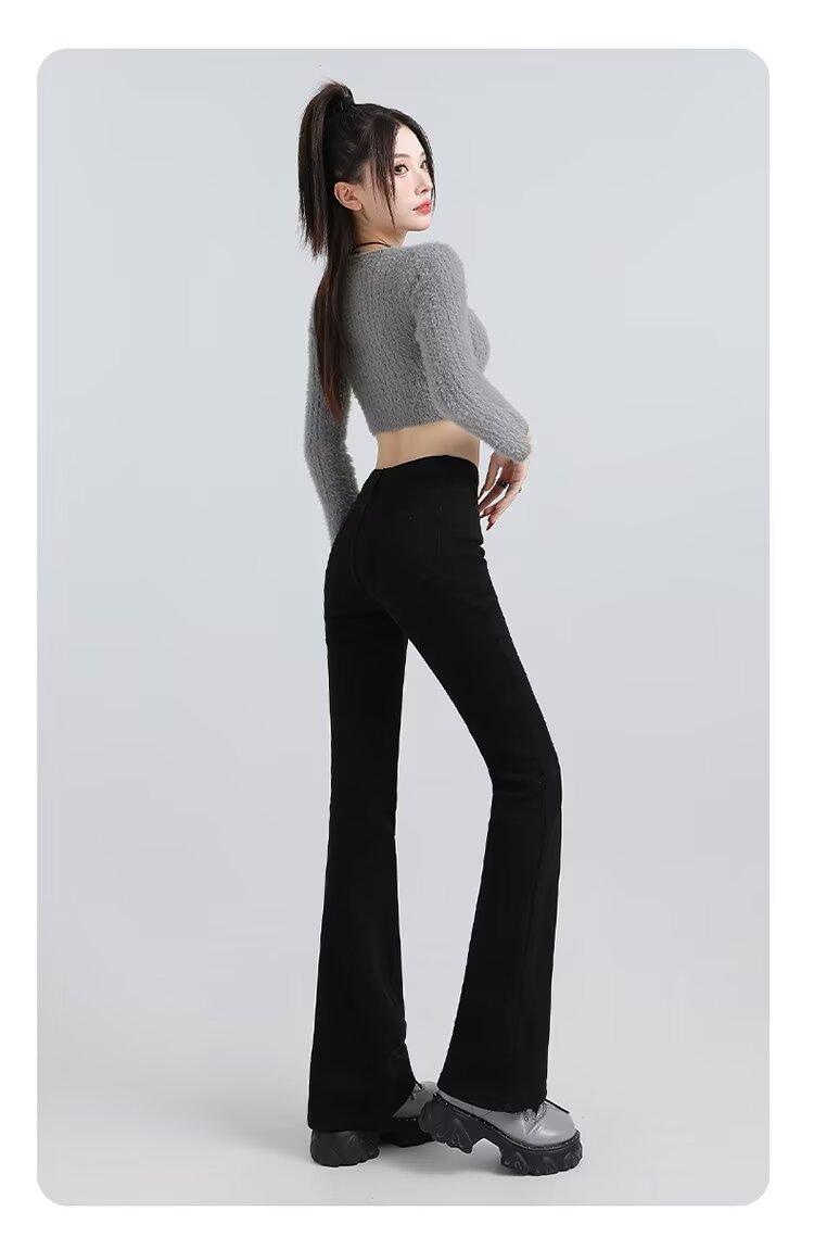 Jeans acampanados gruesos con forro polar negro para mujer, cintura alta, elásticos, corte ajustado, adelgazantes, pantalones de otoño e invierno para mujer