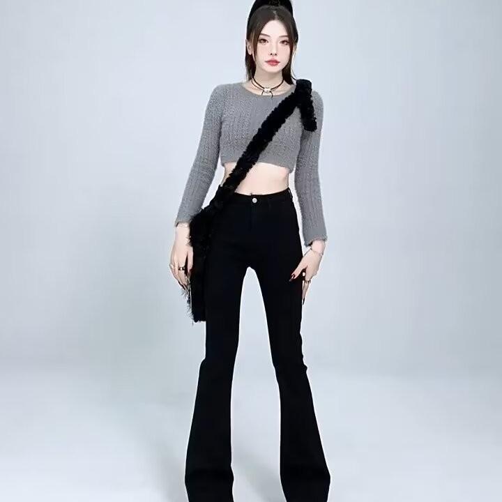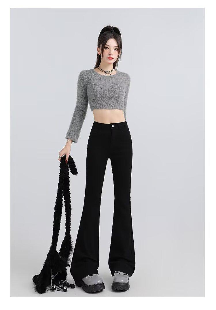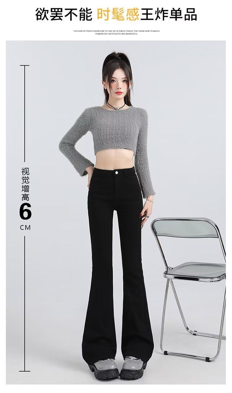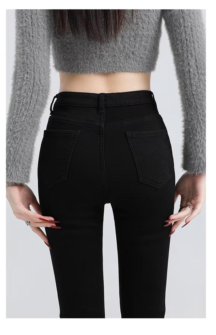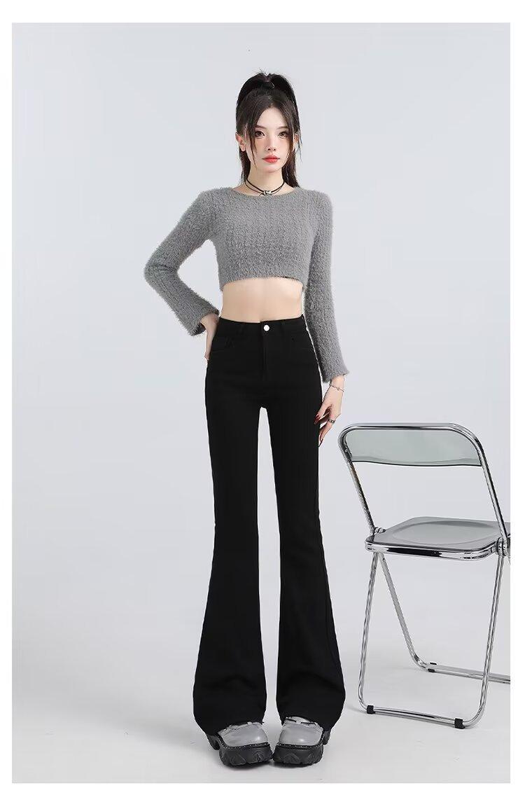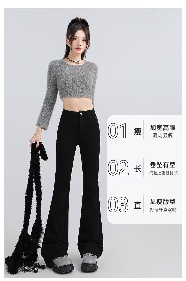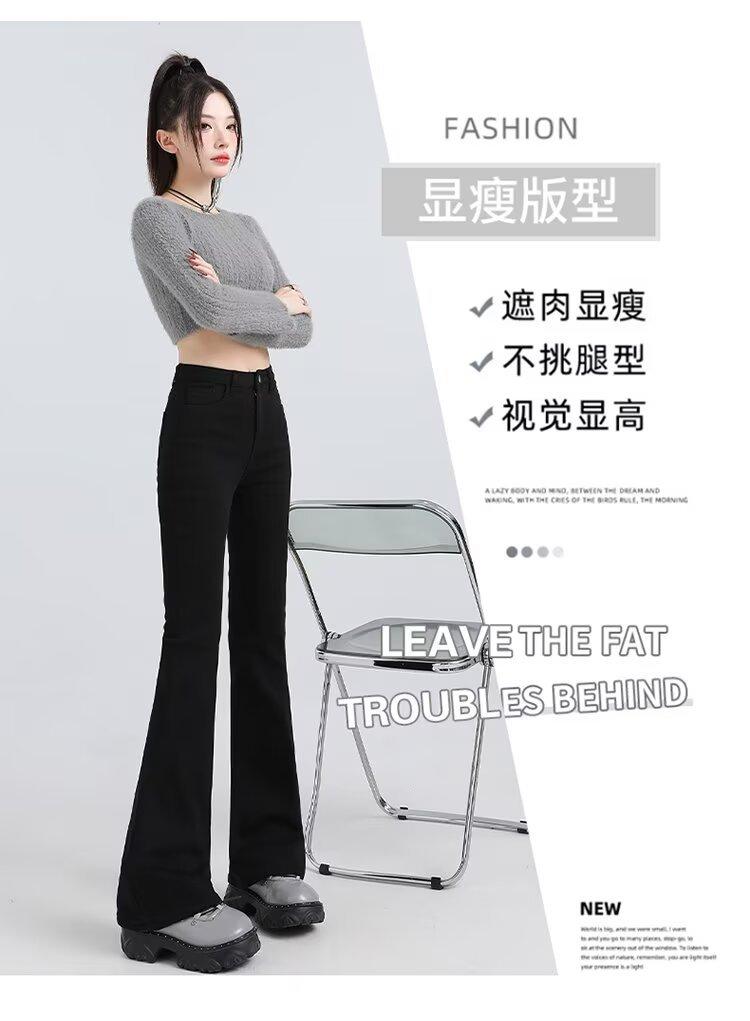 Jeans acampanados gruesos con forro polar negro para mujer, cintura alta, elásticos, corte ajustado, adelgazantes, pantalones de otoño e invierno para mujer