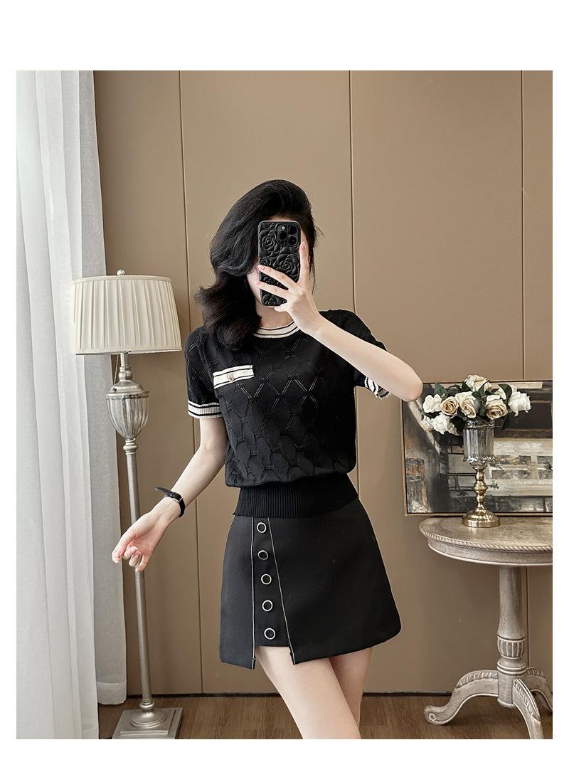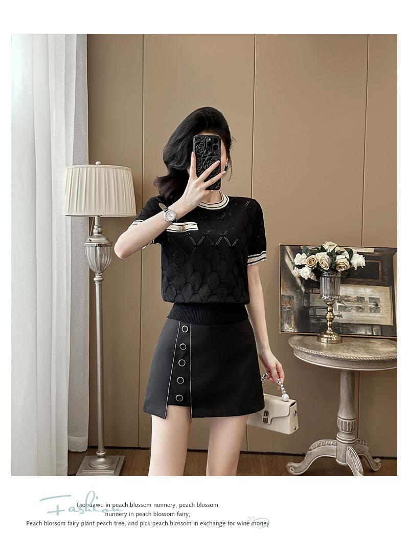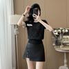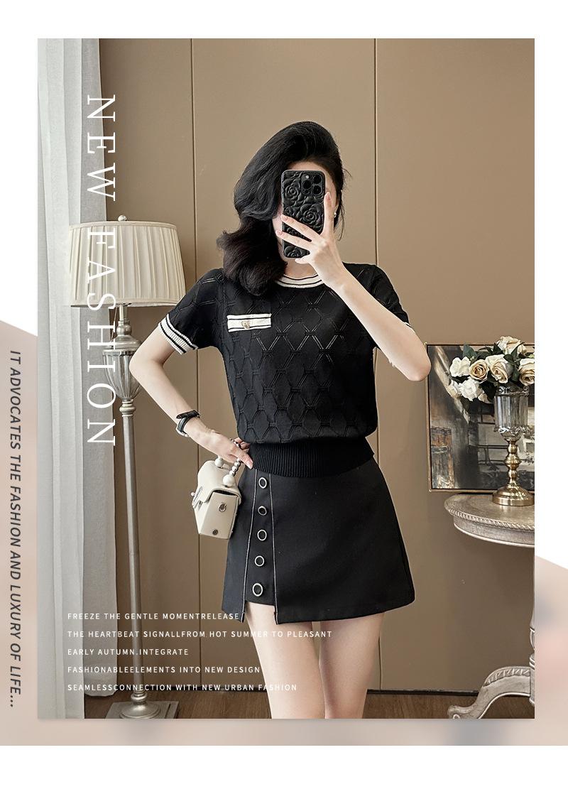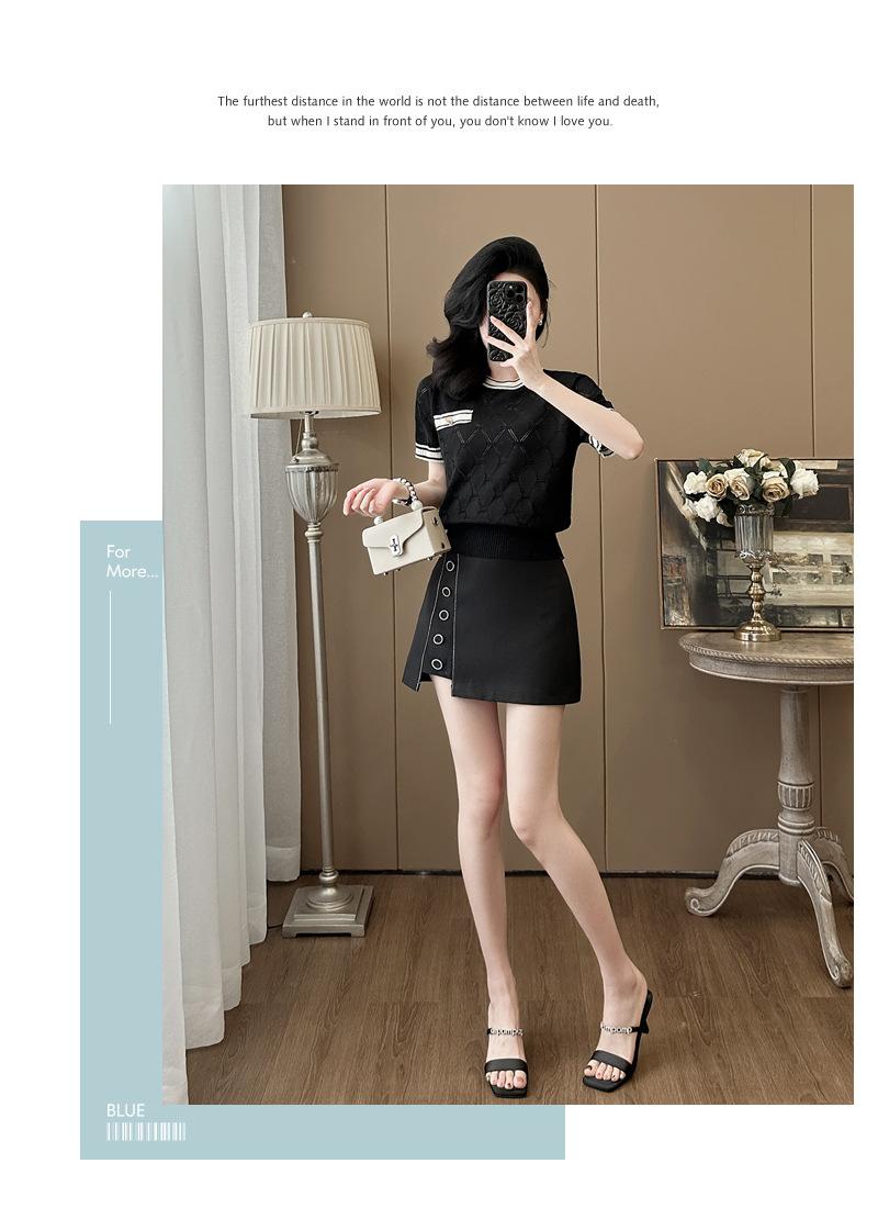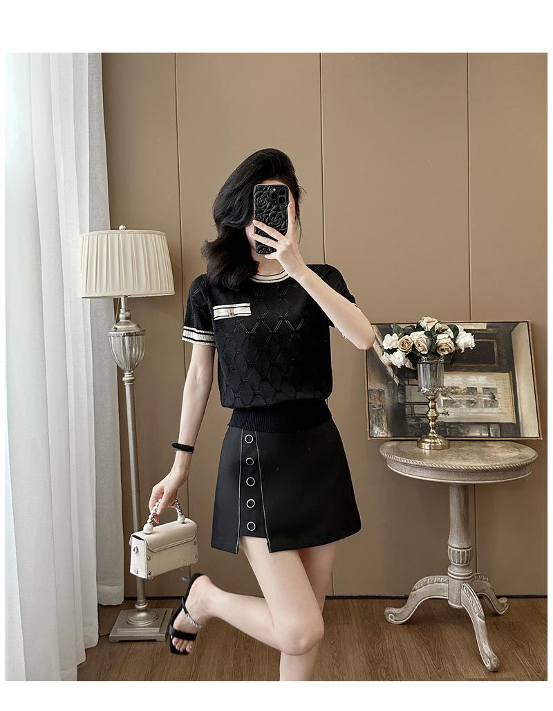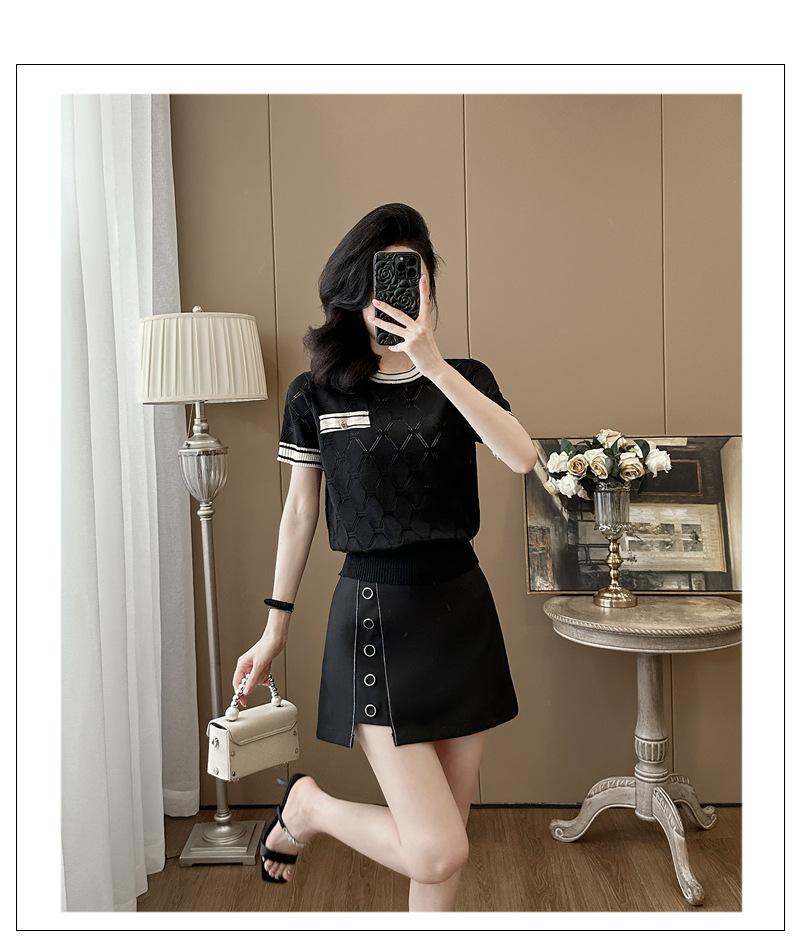 Verano Nuevo Bingma Top para Mujer Falda Media Traje Casual de Moda Chanel Vestido de Punto de Dos Piezas