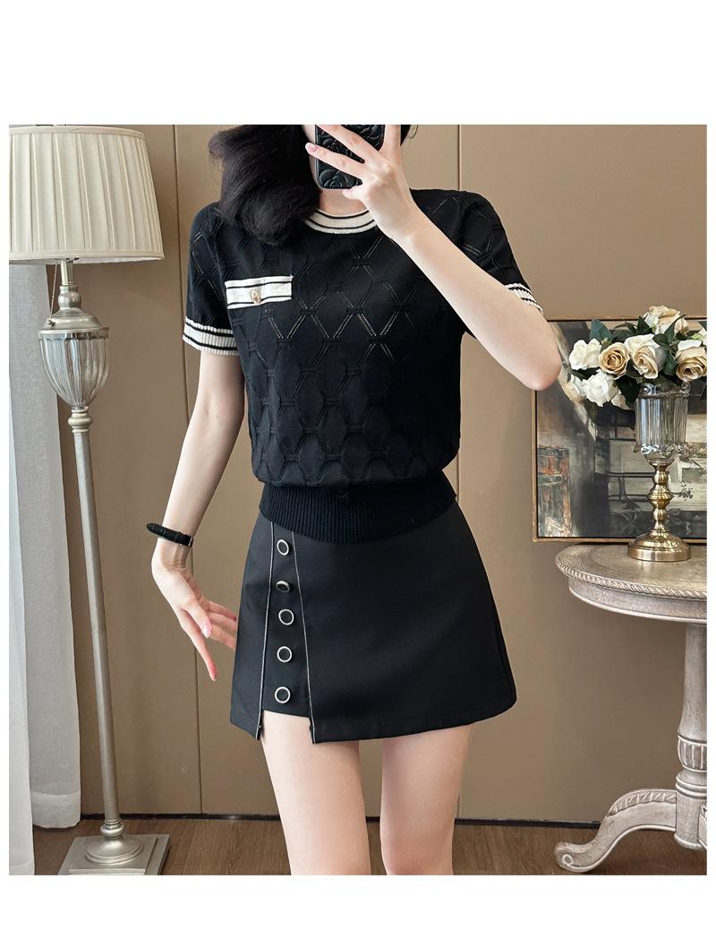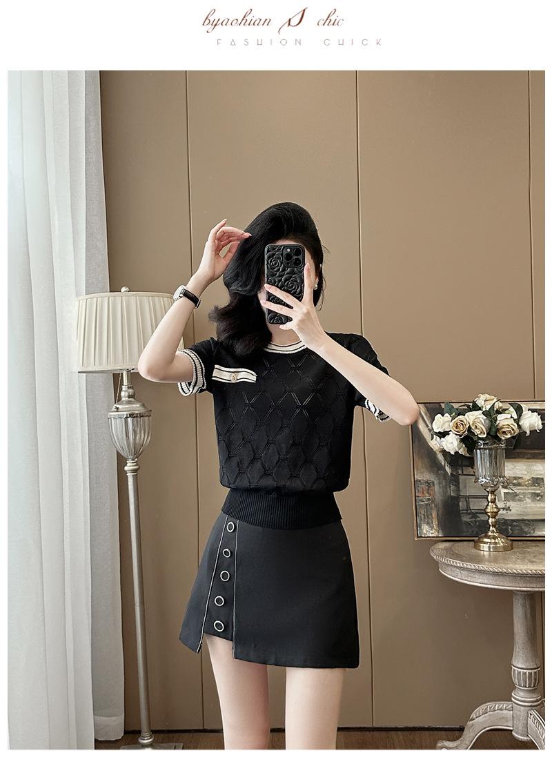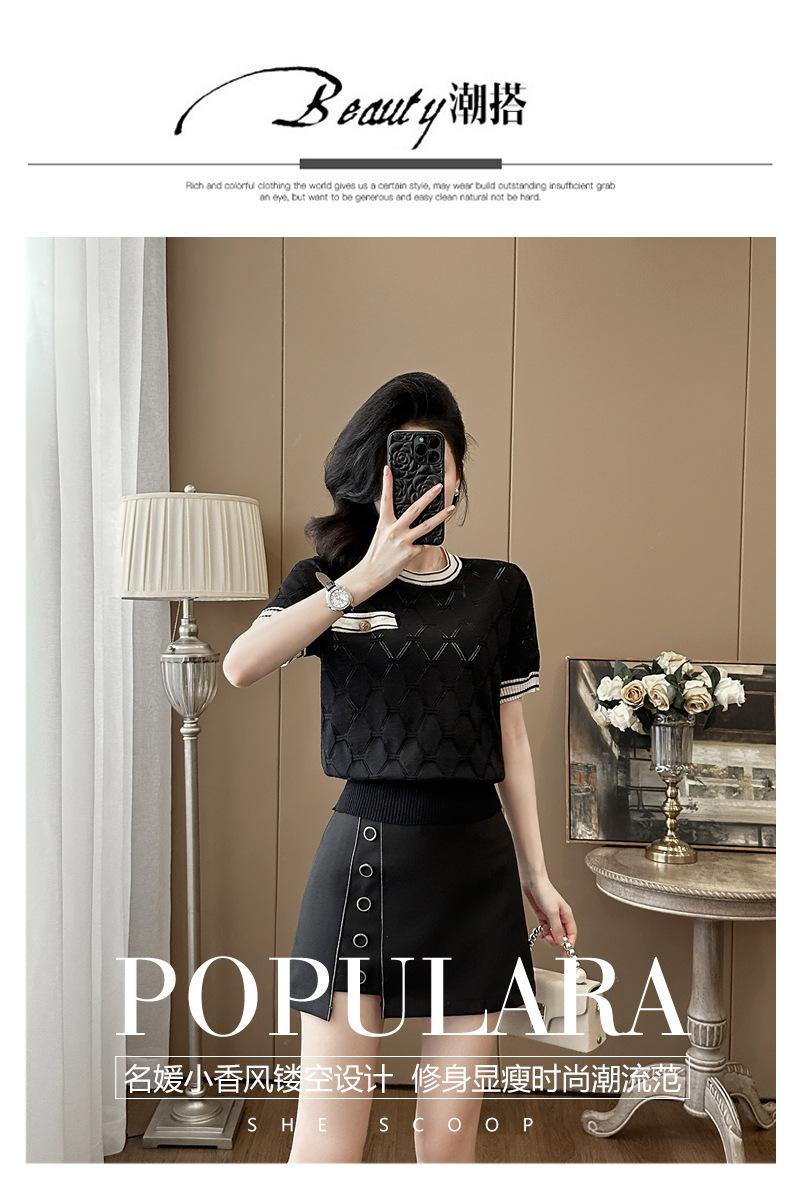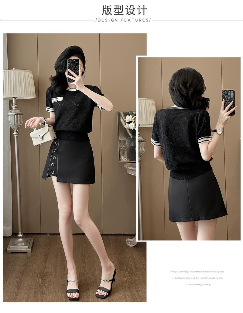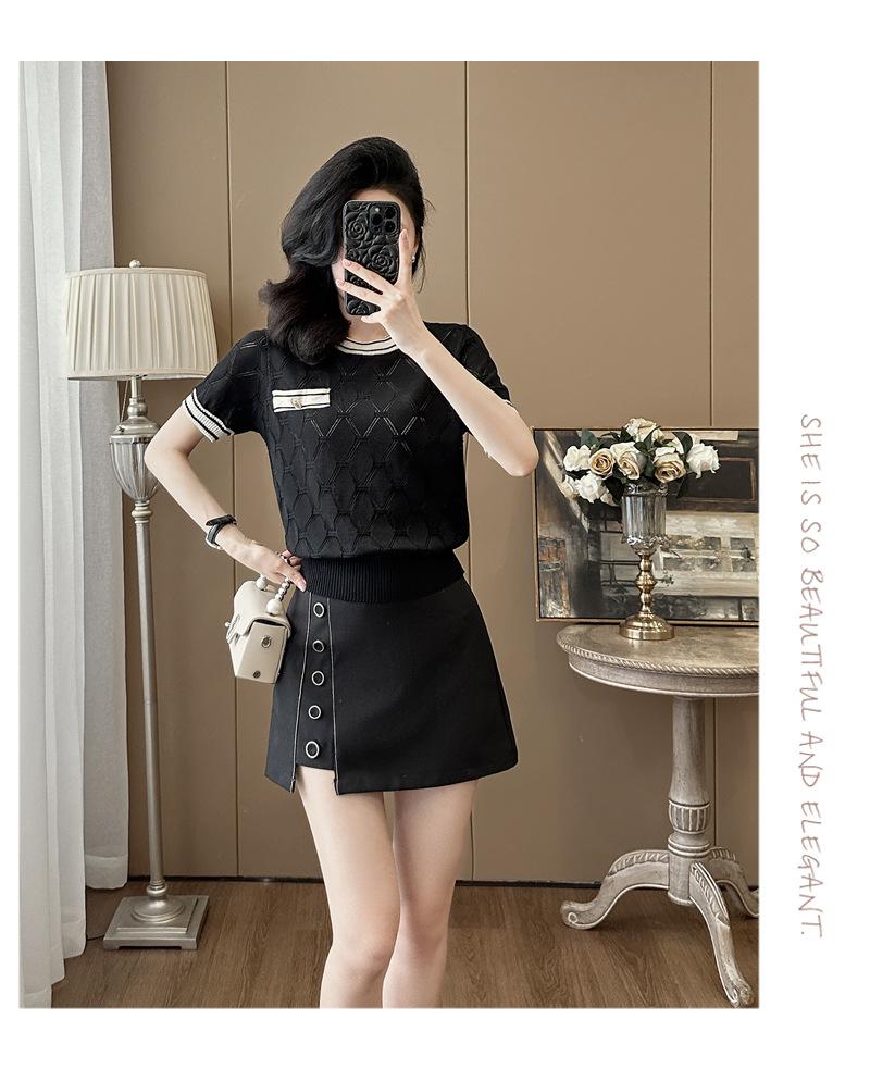 Verano Nuevo Bingma Top para Mujer Falda Media Traje Casual de Moda Chanel Vestido de Punto de Dos Piezas