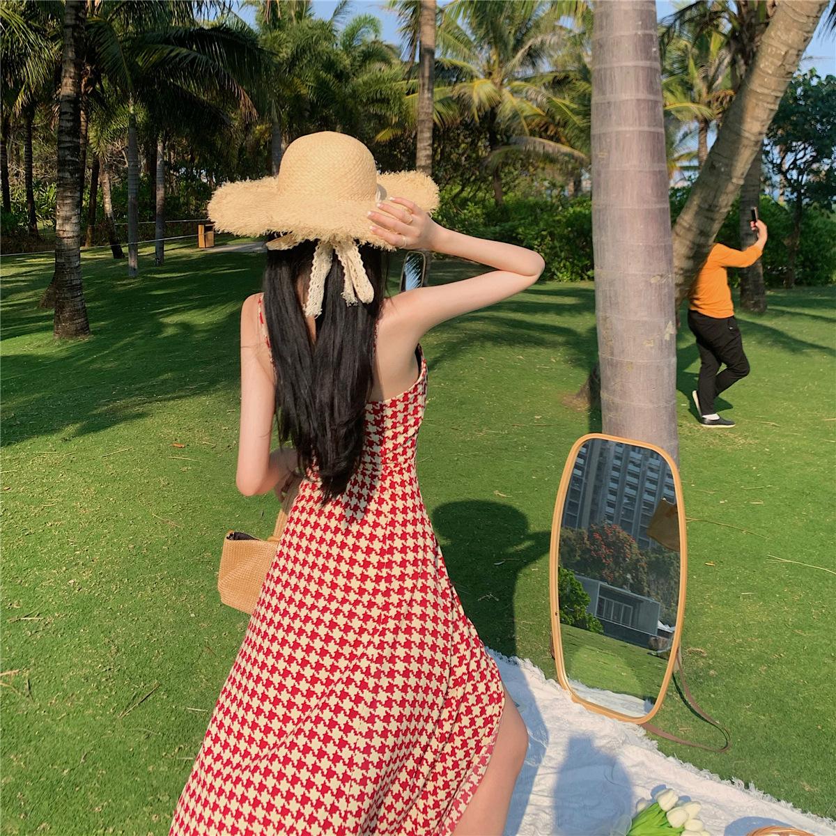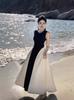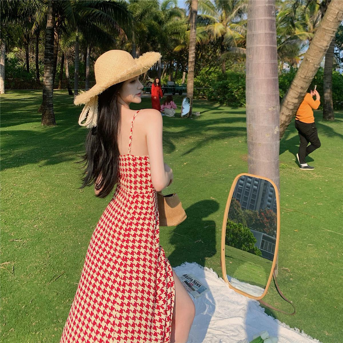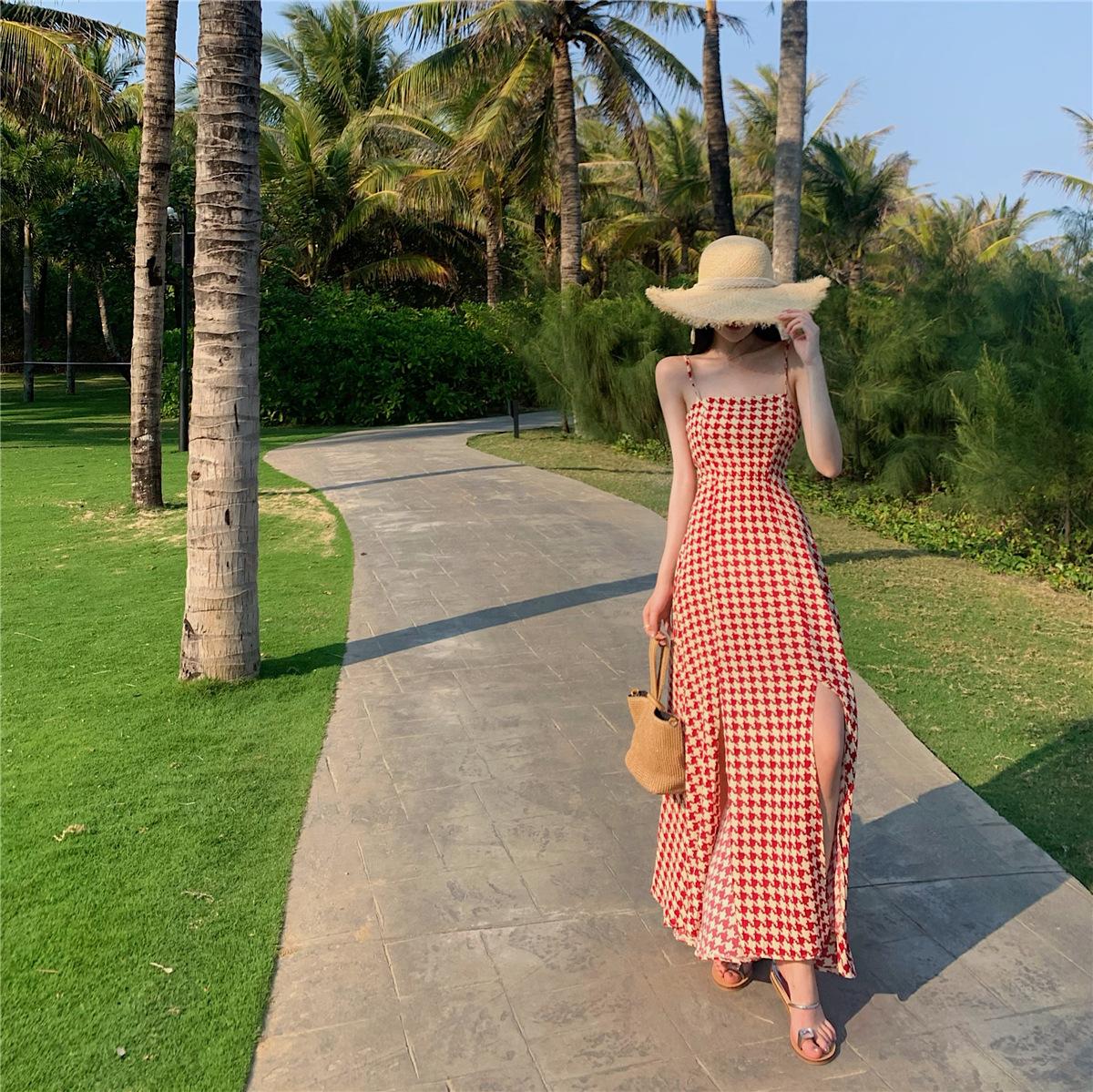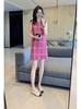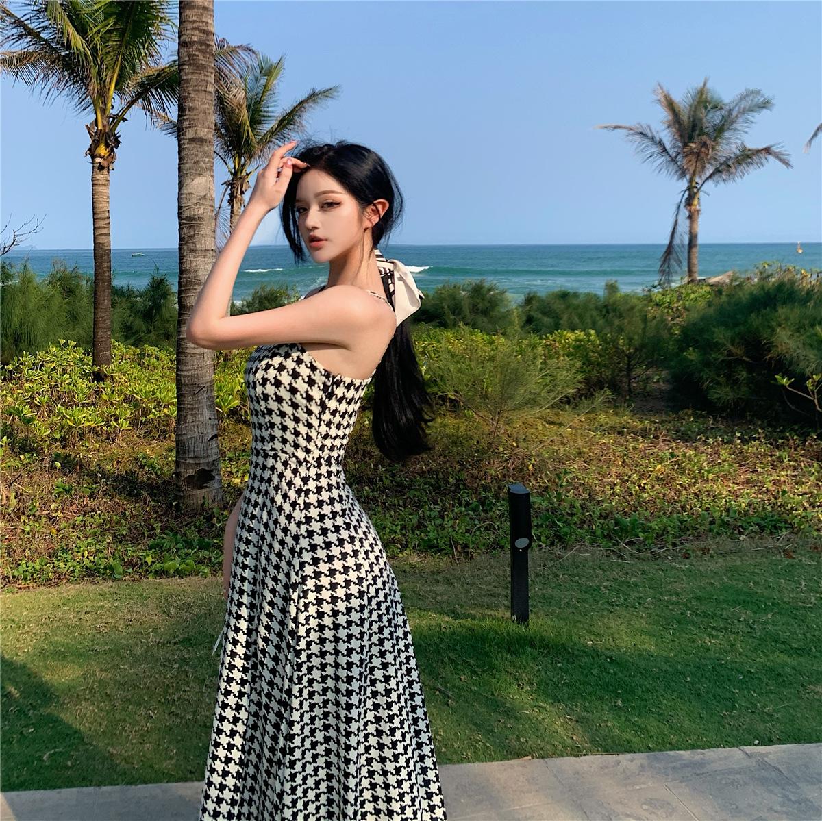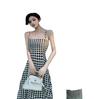 Vestido camisola de pata de gallo con abertura estilo francés para mujeres petite, Verano 2024, Vestido de estilo elegante y maduro, Artículo popular transfronterizo