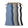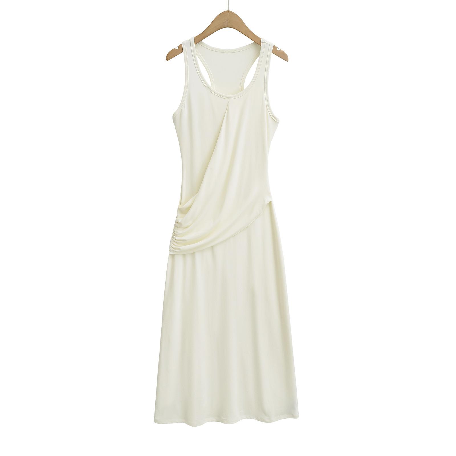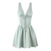 137-Vestido de chaleco plisado sexy para chica sexy de estilo europeo y americano 2025, nuevo vestido de mujer con escote en U y cintura ajustada