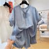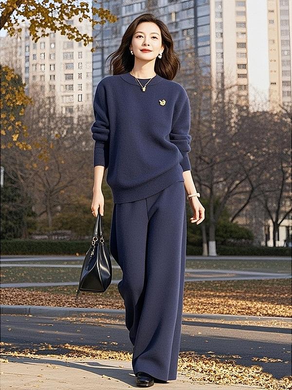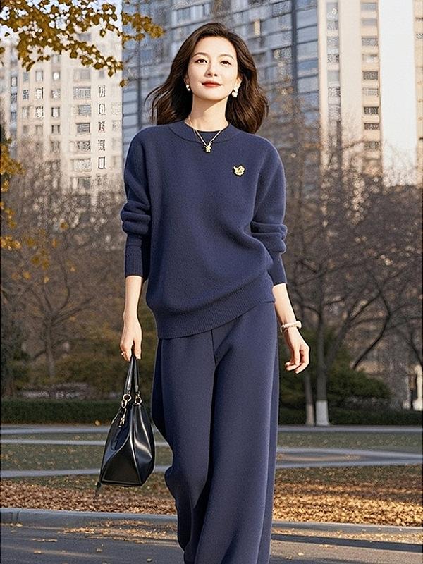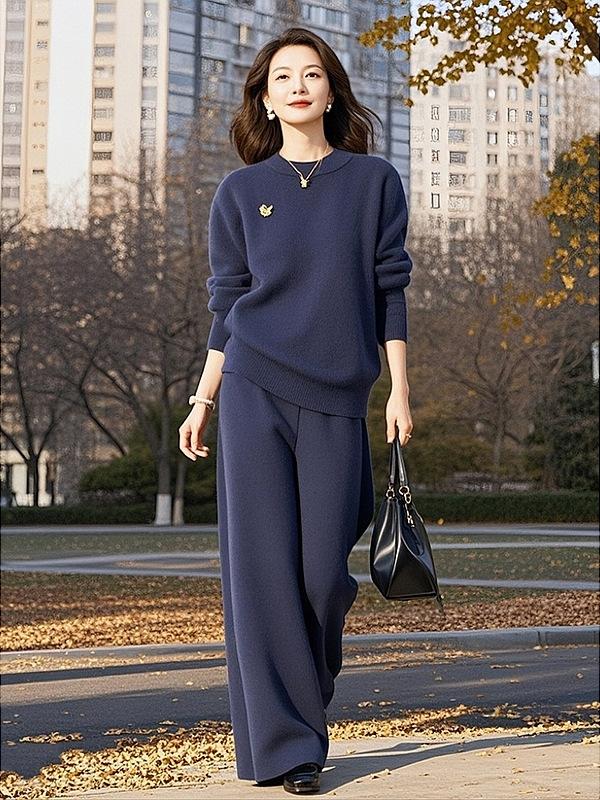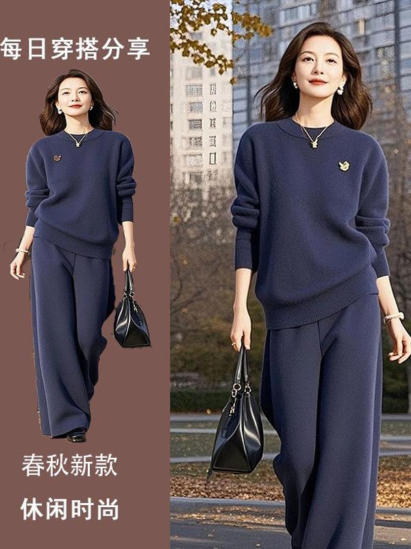 Temperamento un conjunto completo de uso nicho sin colisión único hermoso top azul traje de pantalones casuales mujer principios de primavera