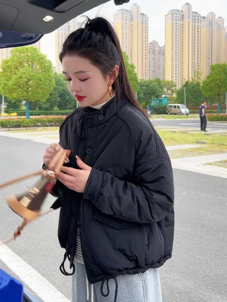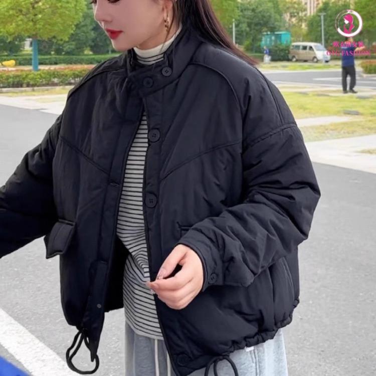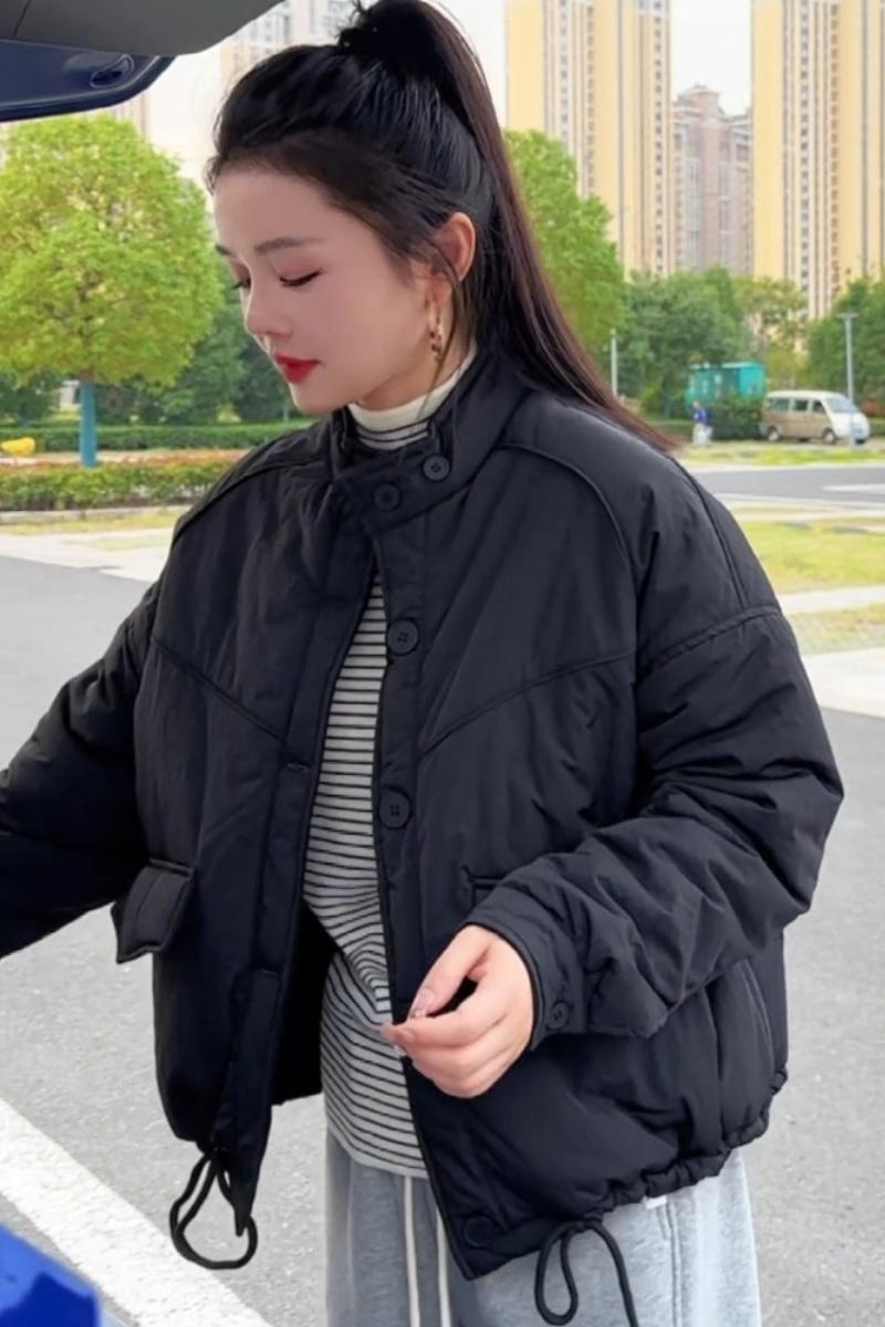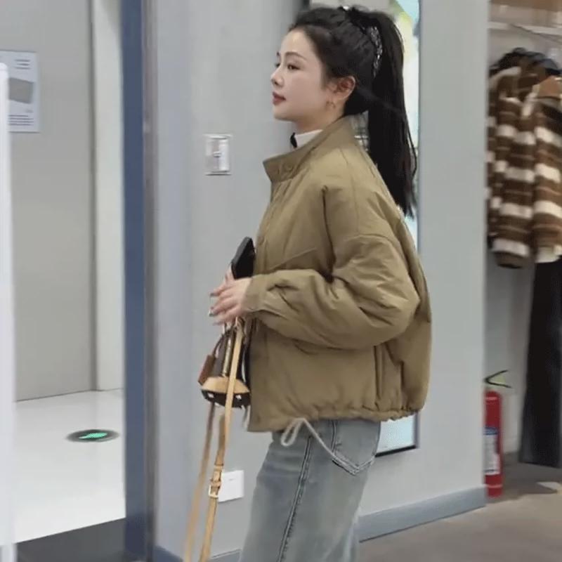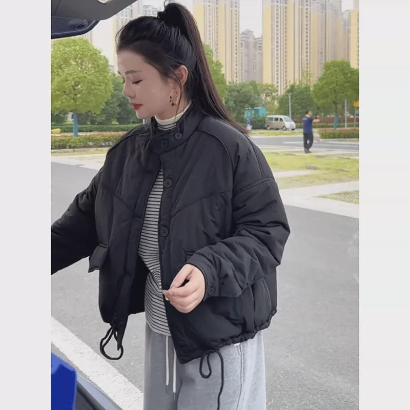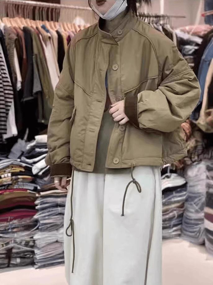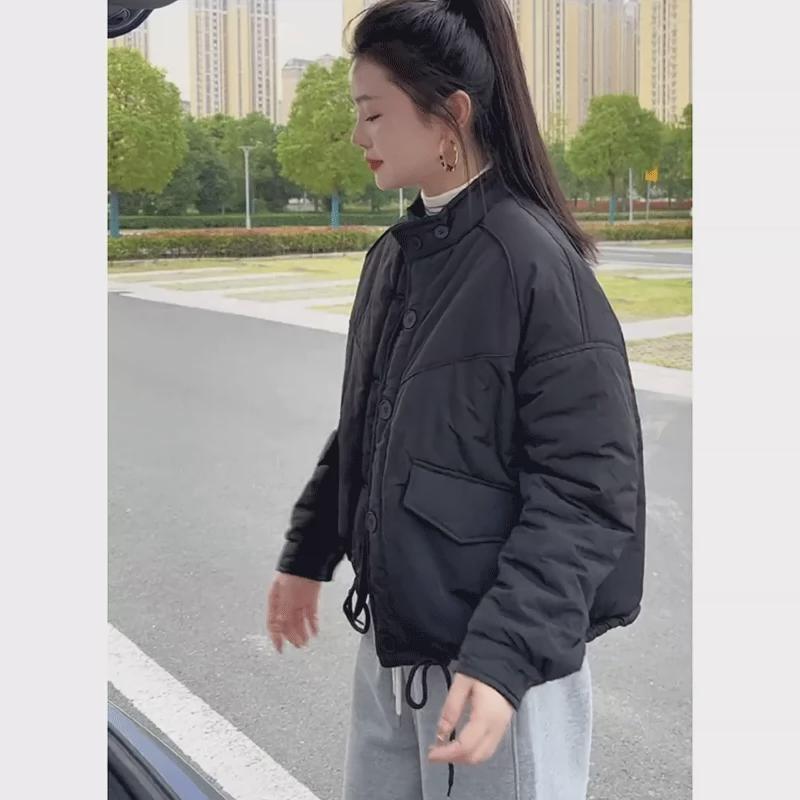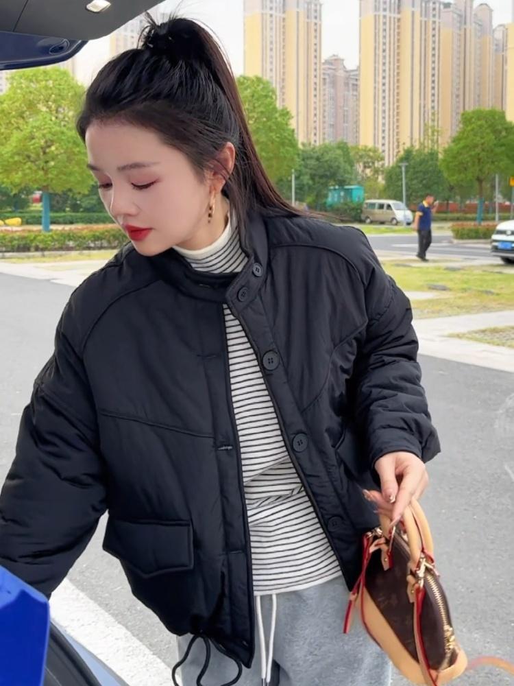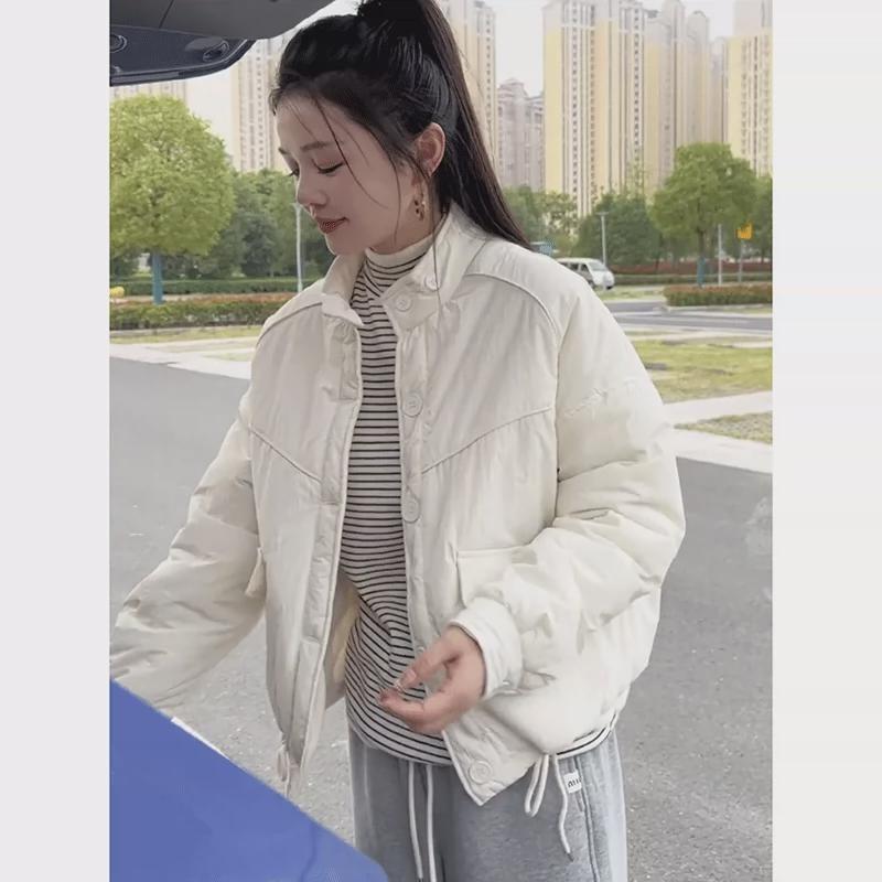 Chaqueta de Trabajo Acolchada Ligera de Cuello Mao Estilo Europeo para Mujer, Otoño e Invierno 2024 Versátil Abrigo de Algodón Suelto para Desplazamientos