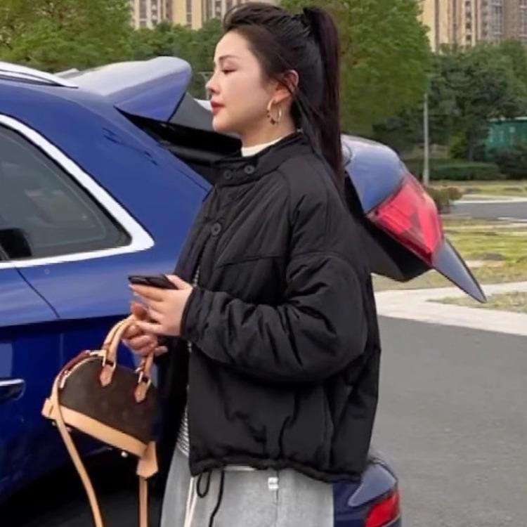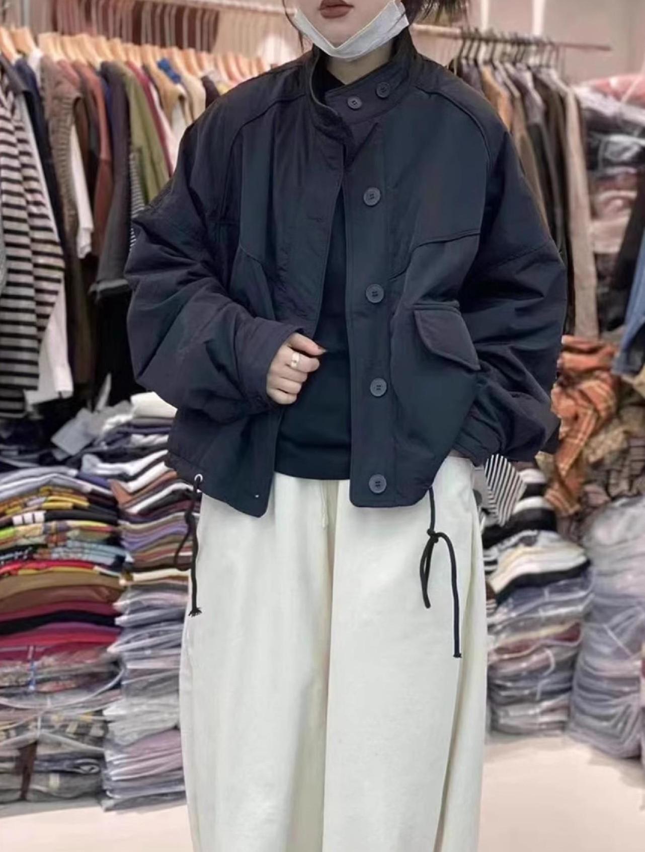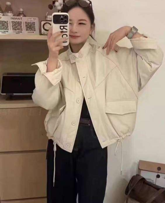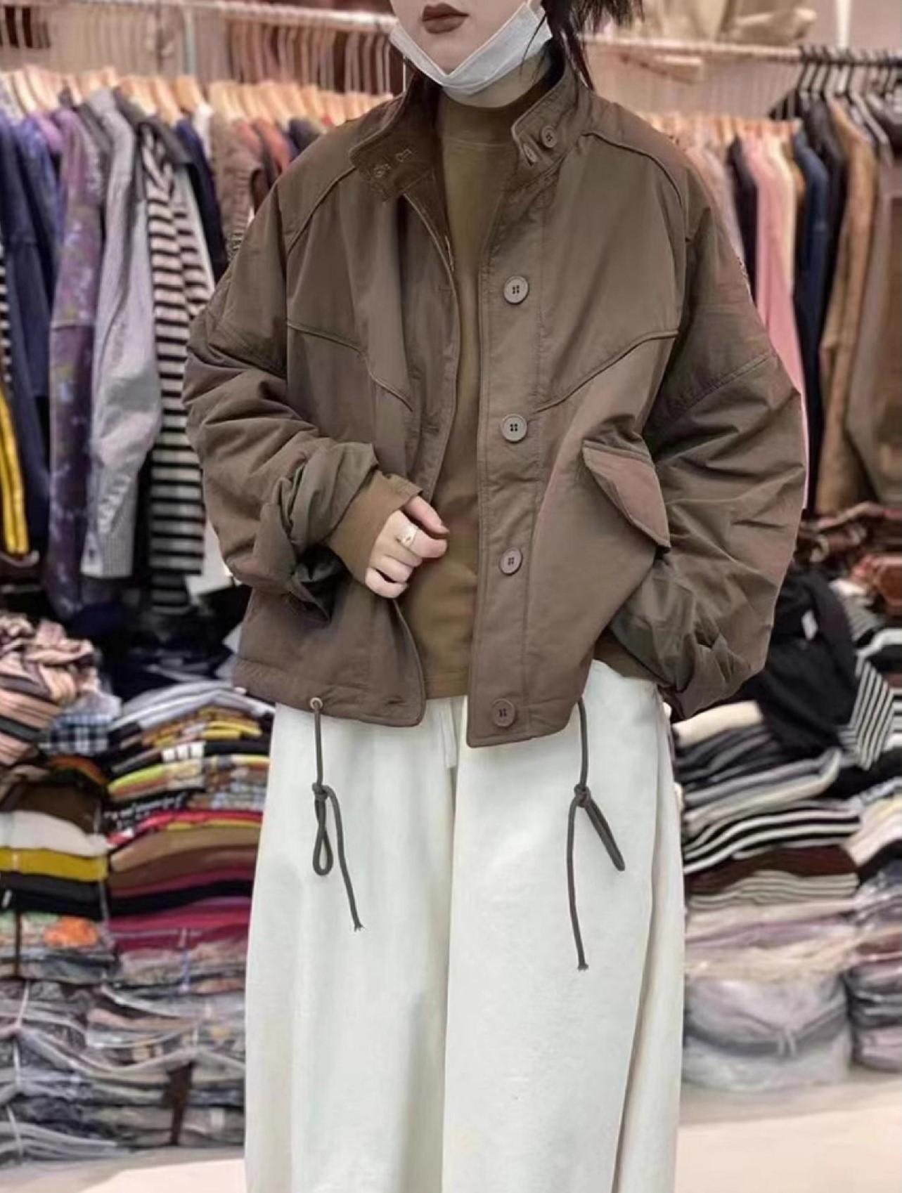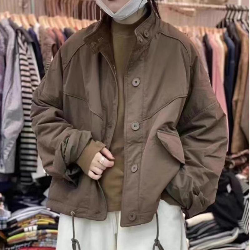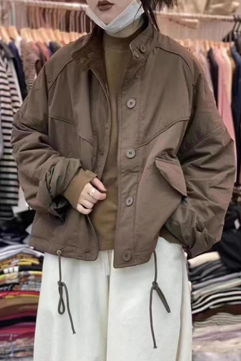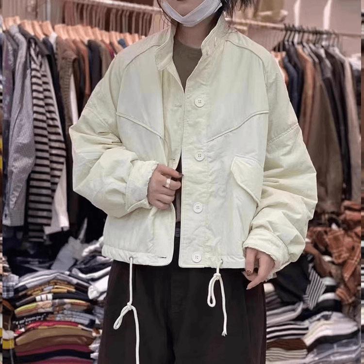 Chaqueta de Trabajo Acolchada Ligera de Cuello Mao Estilo Europeo para Mujer, Otoño e Invierno 2024 Versátil Abrigo de Algodón Suelto para Desplazamientos