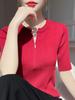 Suéter de verano con hombros descubiertos y manga corta para mujer, color liso, sencillo, nuevo estilo 2025, diseño con cremallera, top fino y moderno