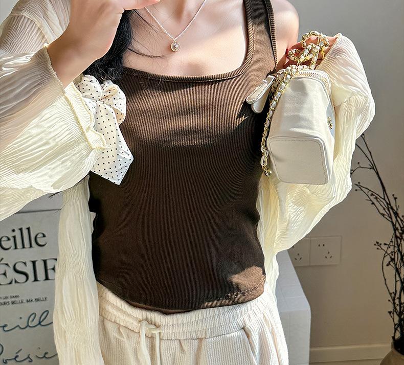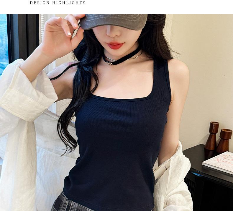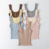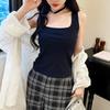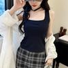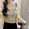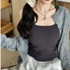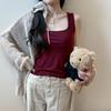 Camisola básica de mujer de corte ajustado, cuello cuadrado, básica, para primavera y verano.