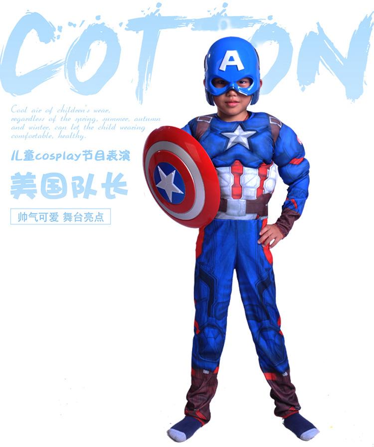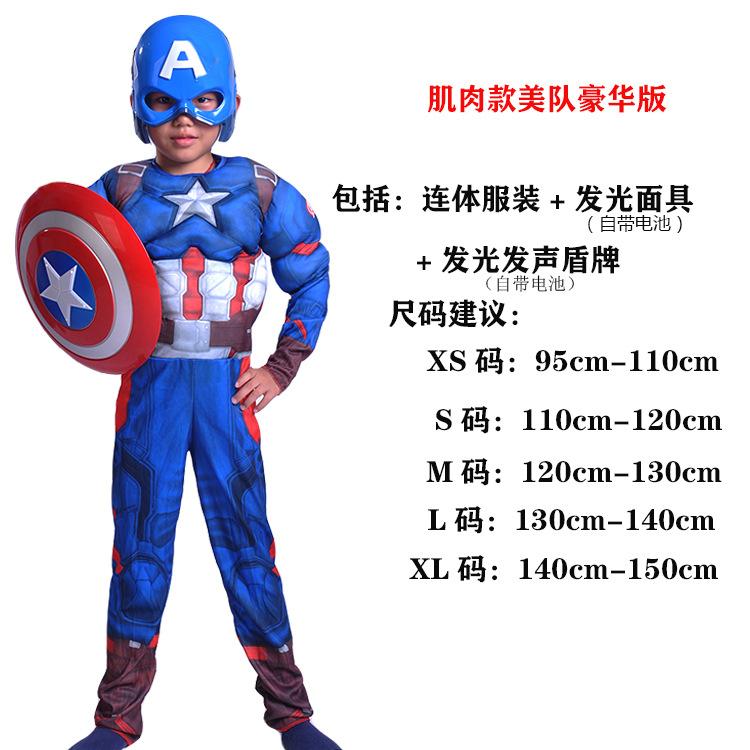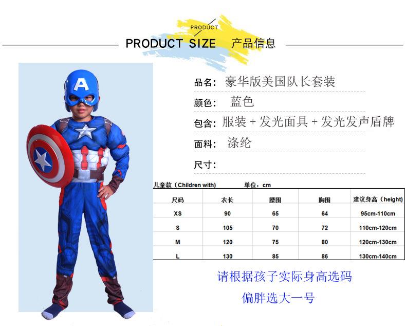 Disfraz de Capitán América para niños Cosplay Halloween Juego de roles con máscara y escudo iluminado