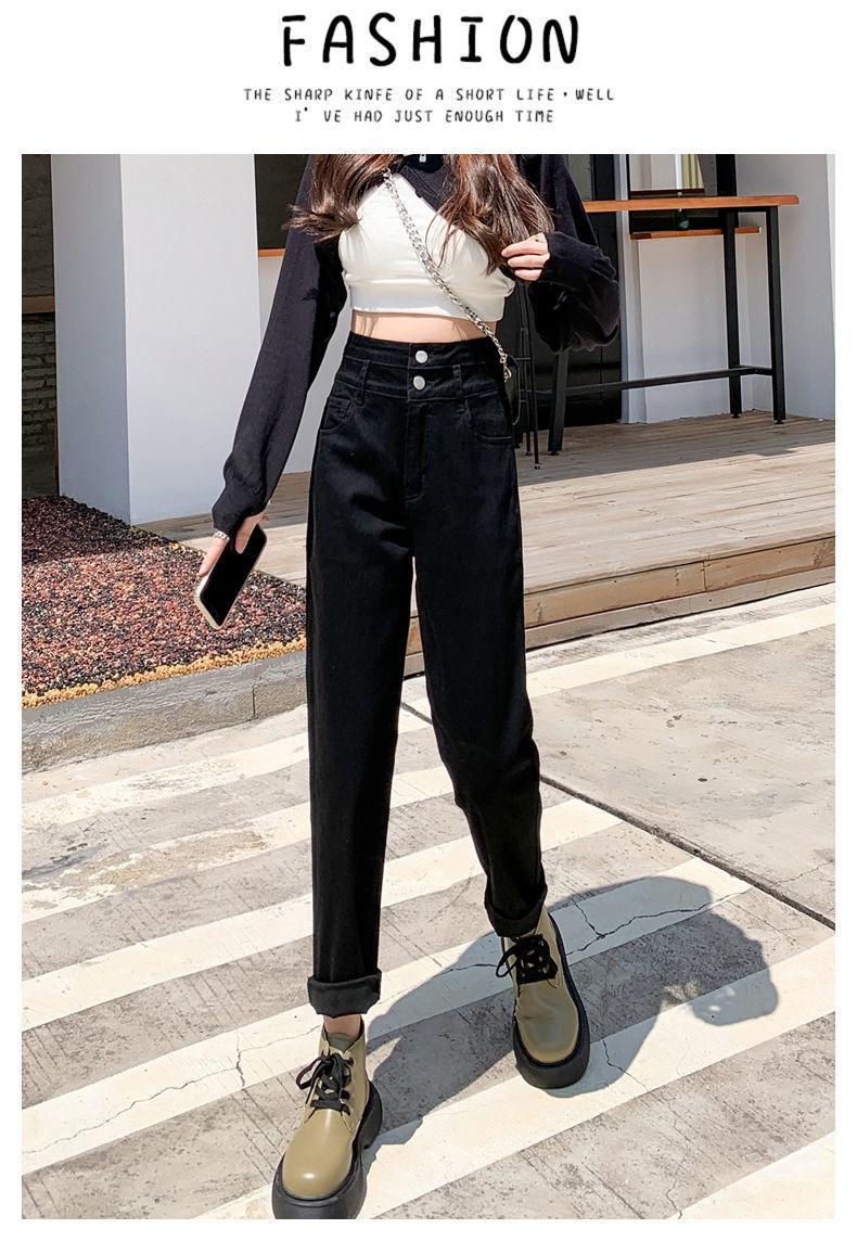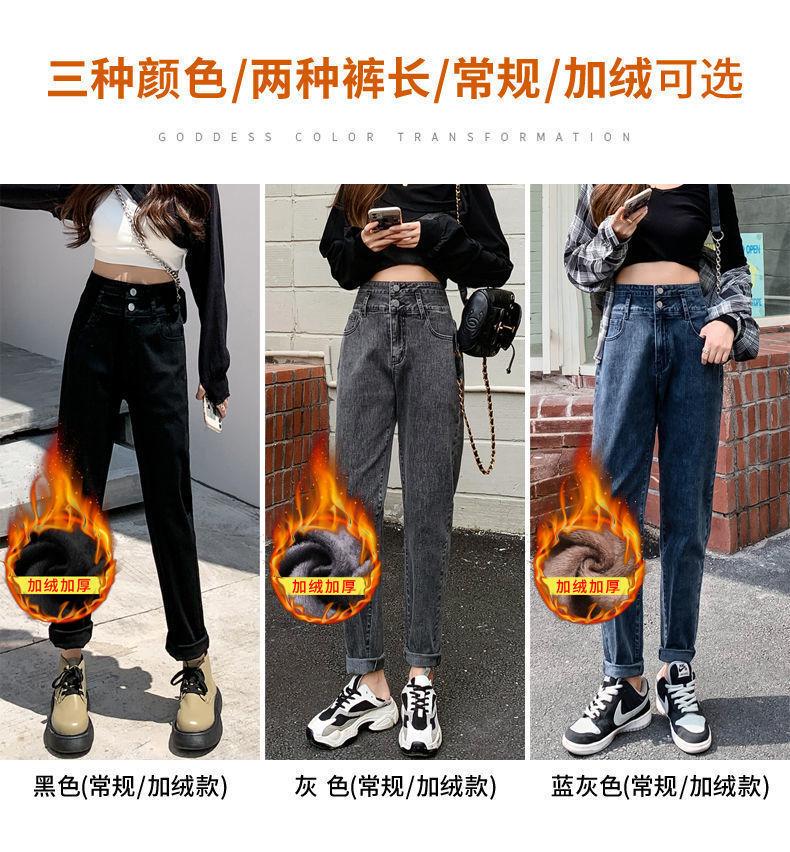 Jeans Harlan de Cintura Alta para Mujer con Forro Polar Otoño e Invierno 2024 Nuevo Cuerpo en Forma de Pera Chica Gordita Talla Grande Adelgazantes Pantalones Torre
