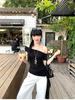 Camiseta de tubo de un solo hombro con lazo de chica sexy de Black Pure Desire, top de verano para mujer con cintura elegante y hombros descubiertos