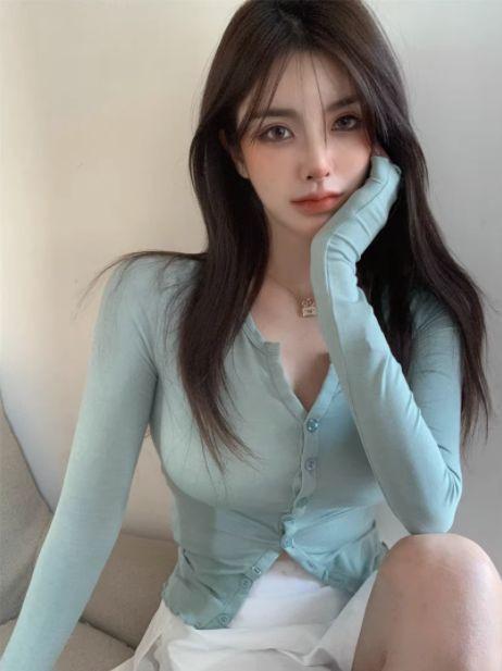 Cárdigan de manga larga con protección solar para mujer, estilo Spice Girl, diseño de camiseta de estilo Pure Desire, ajustado y adelgazante de principios de otoño.