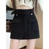 Falda Plisada Irregular para Mujer, Otoño e Invierno Estilo Coreano Retro Negro Falda Ajustada a la Cadera
