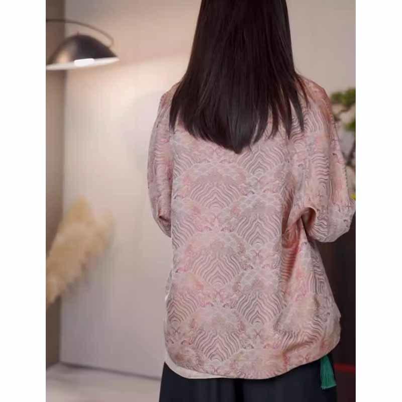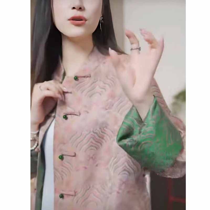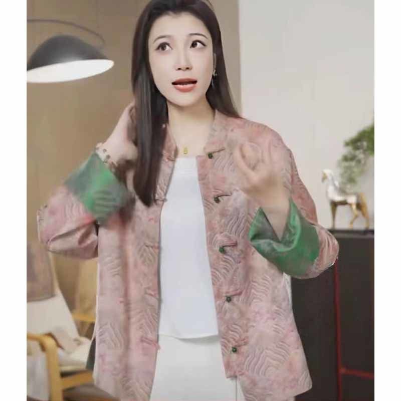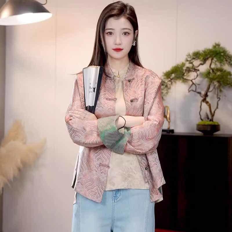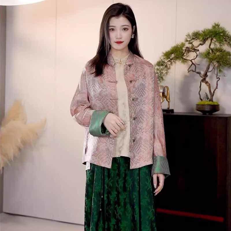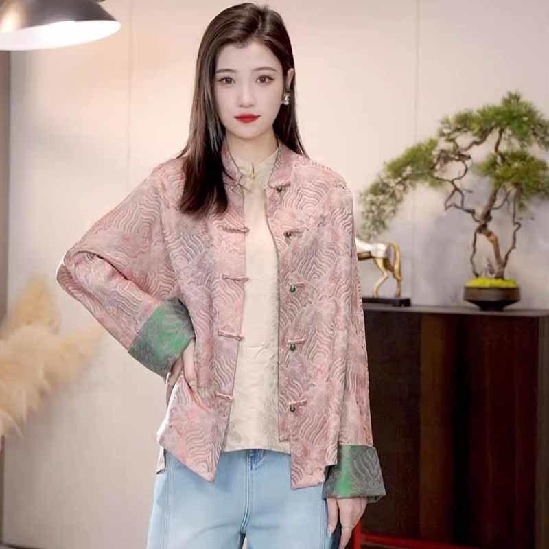 Abrigo corto de jacquard rosa de alta calidad para mujer, estilo nacional chino, otoño 2025