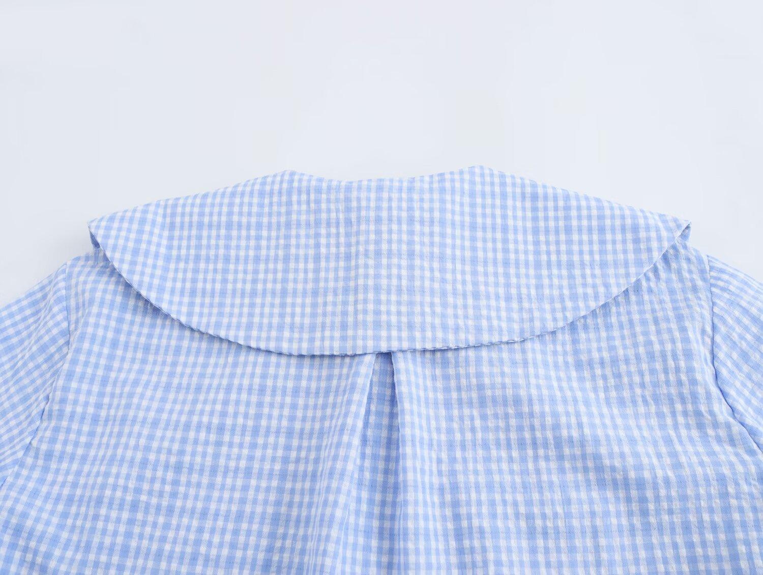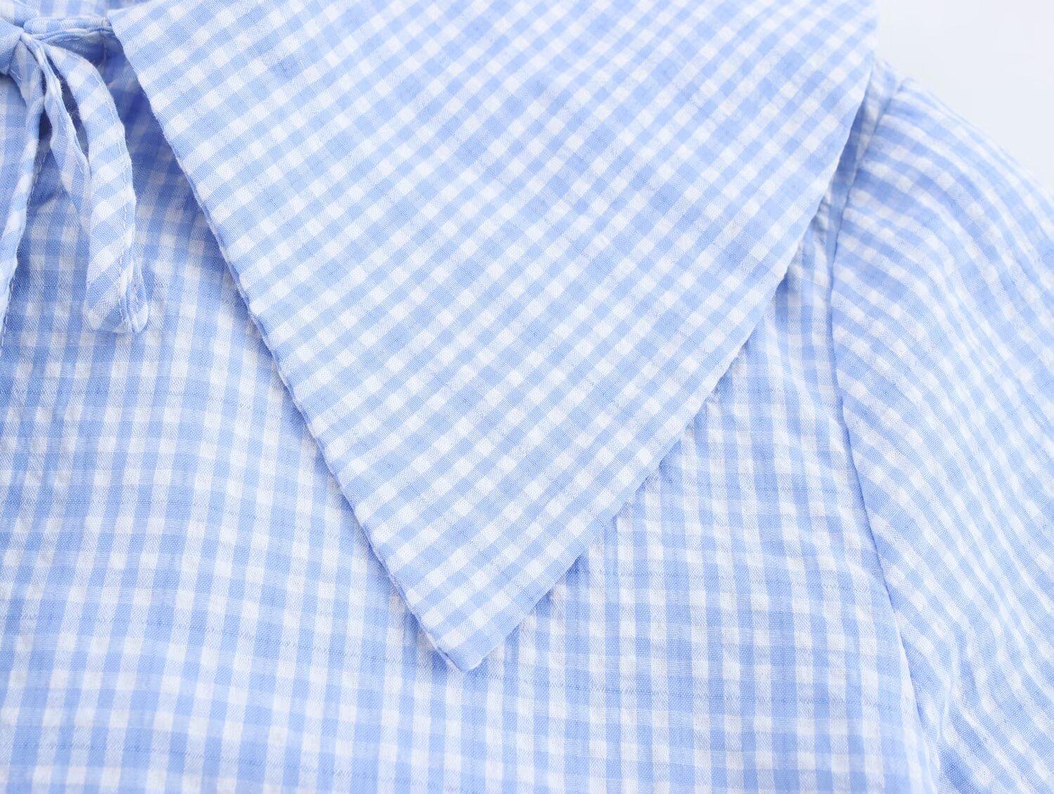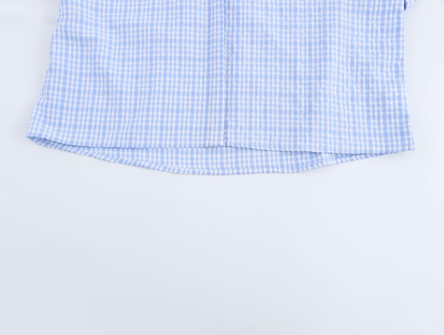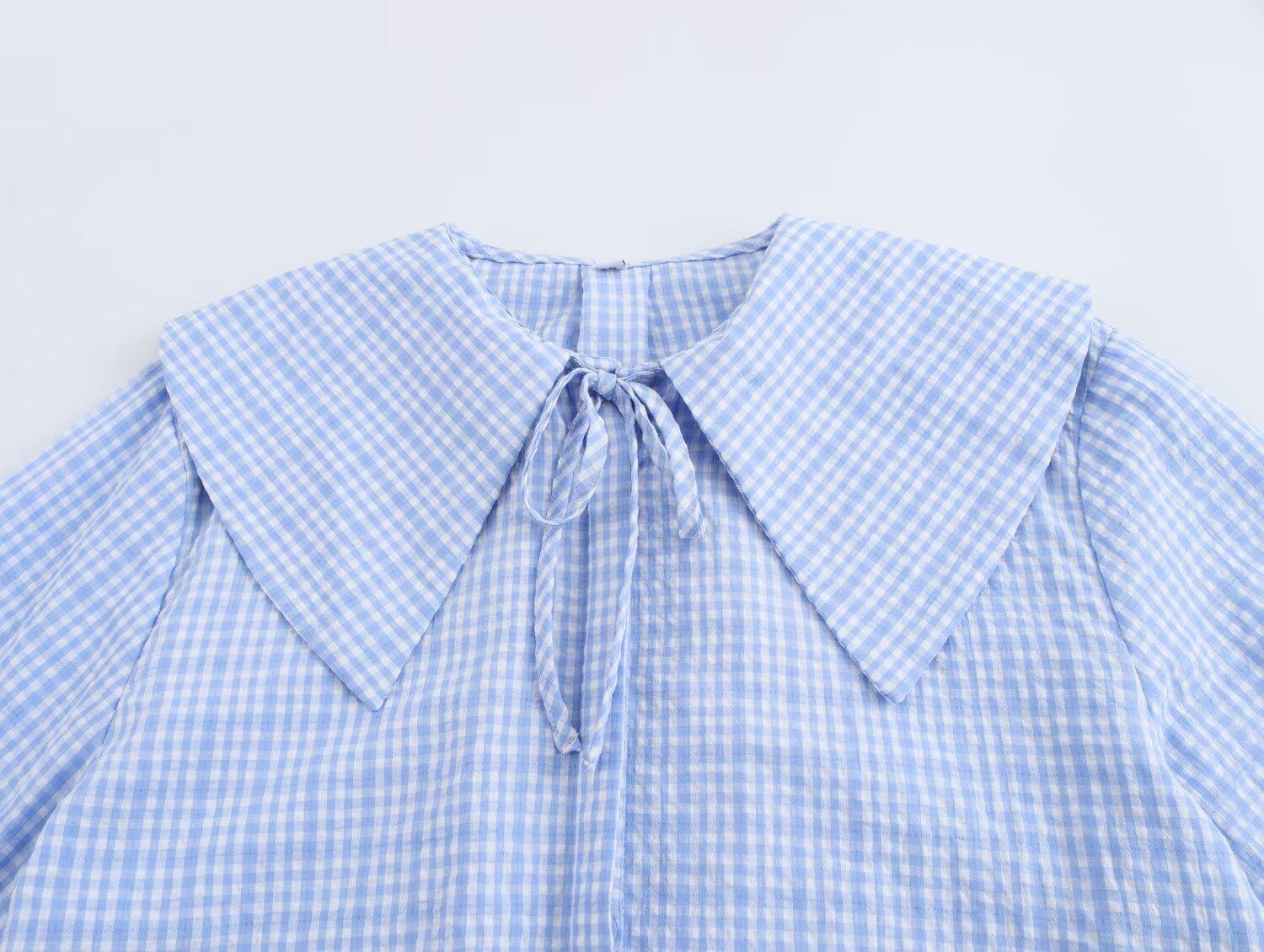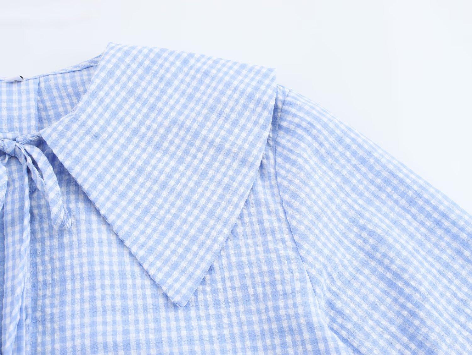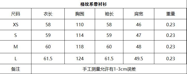 Camisa de manga larga con cuello de muñeca y cordones a cuadros para mujer, estilo transfronterizo europeo y americano, primavera de 2025, w021 81941