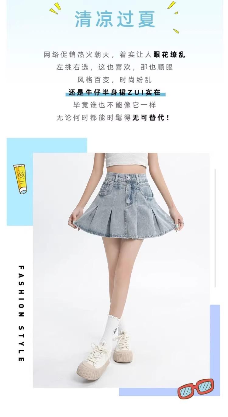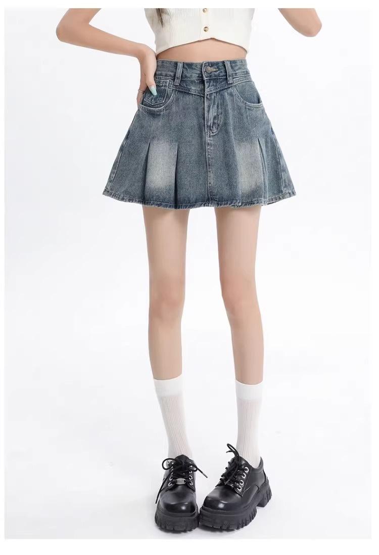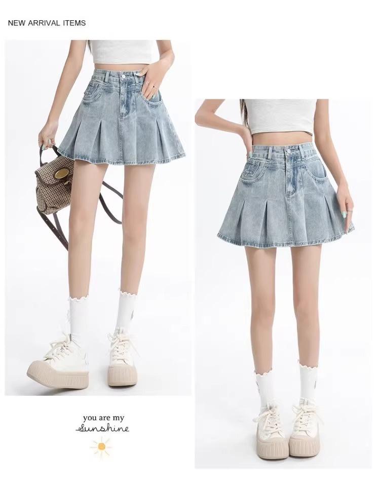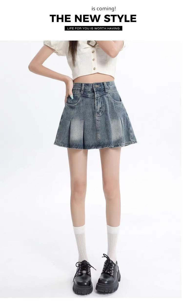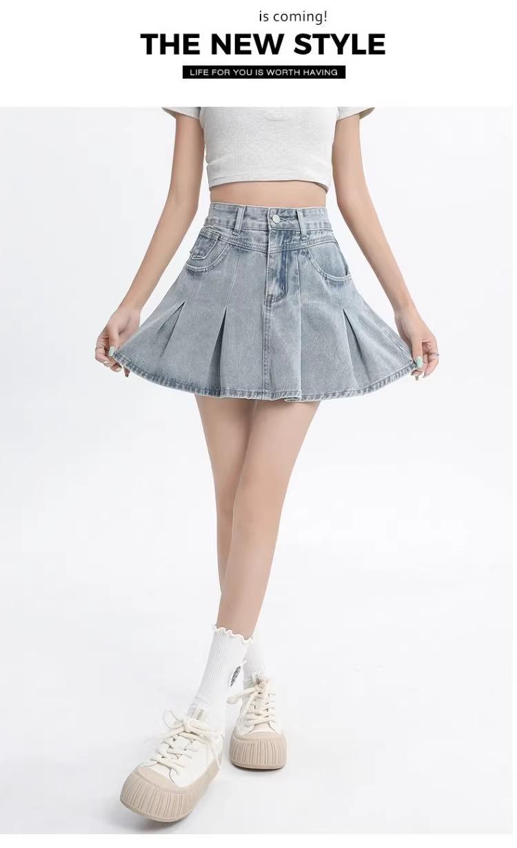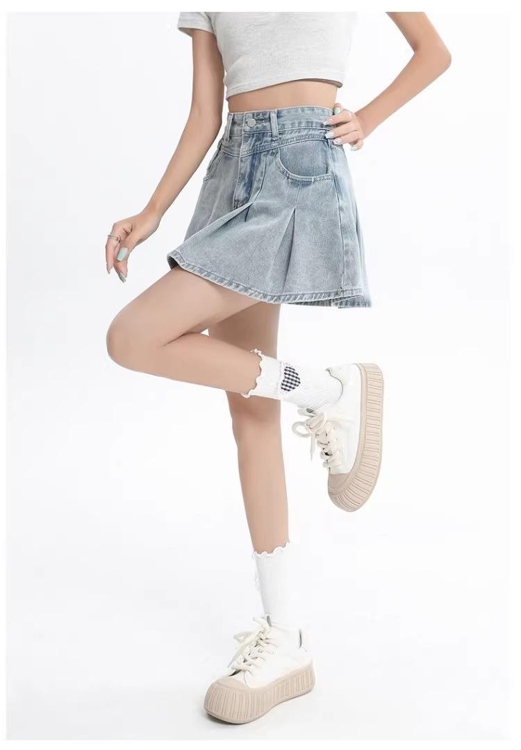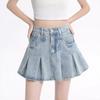 Falda vaquera de color claro para mujer, estilo americano de verano, estilo retro, cintura alta, adelgazante, plisada, corte A