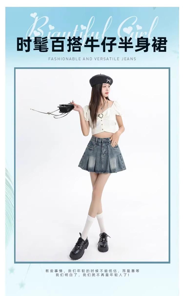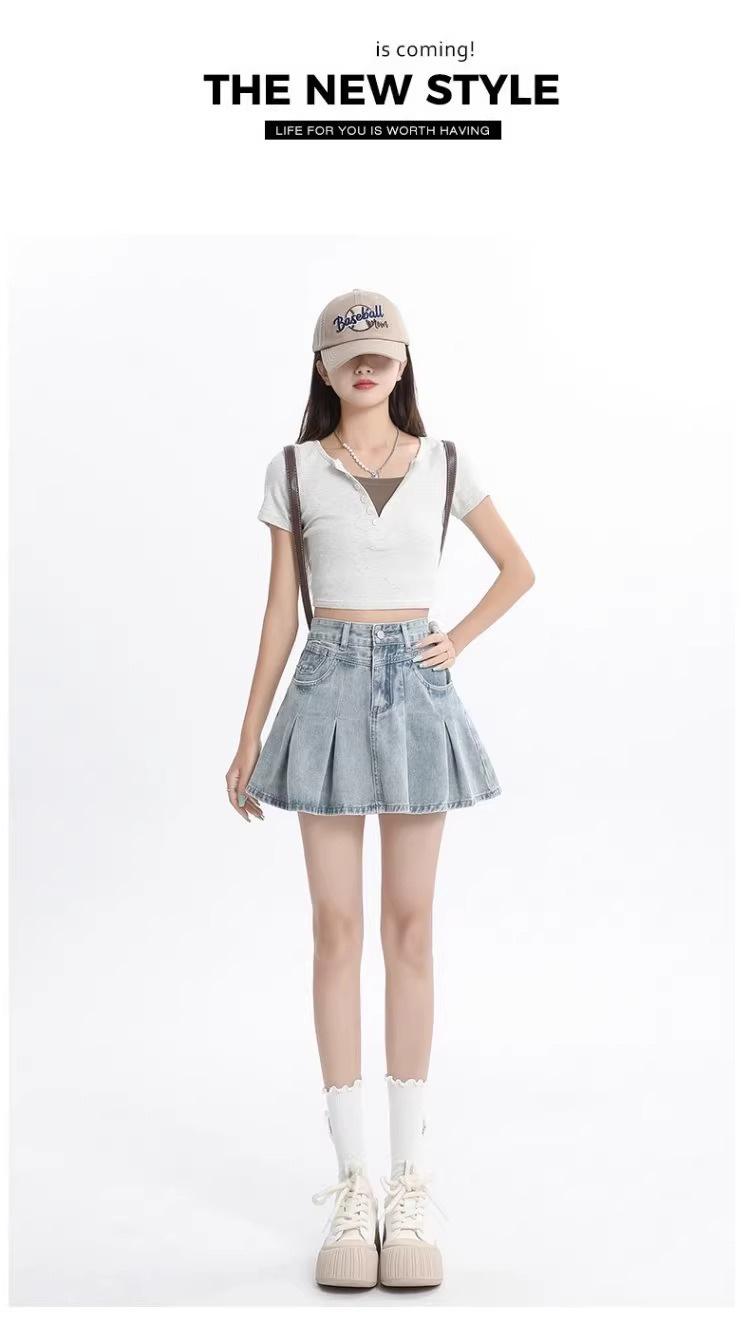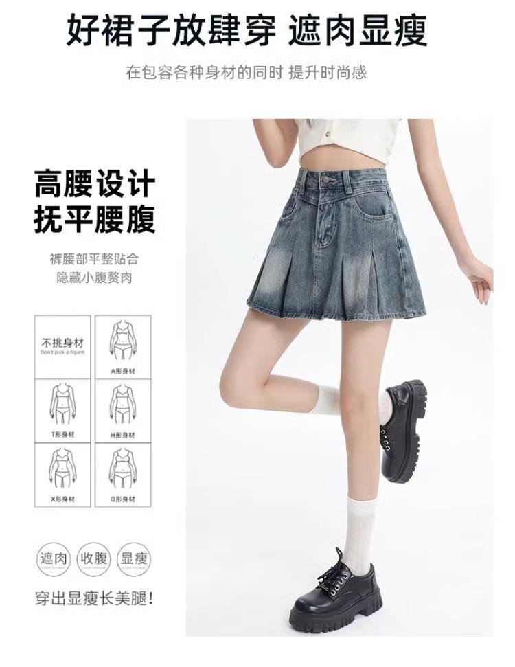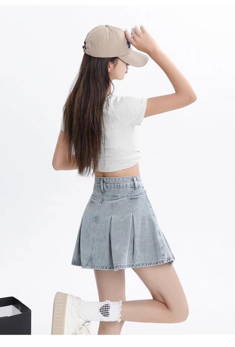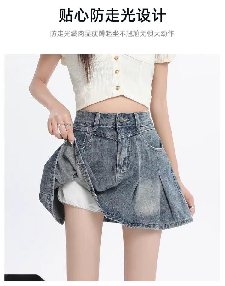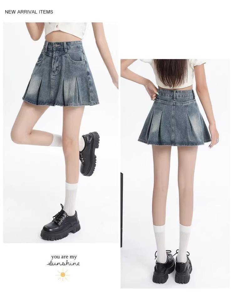 Falda vaquera de color claro para mujer, estilo americano de verano, estilo retro, cintura alta, adelgazante, plisada, corte A