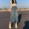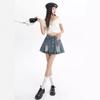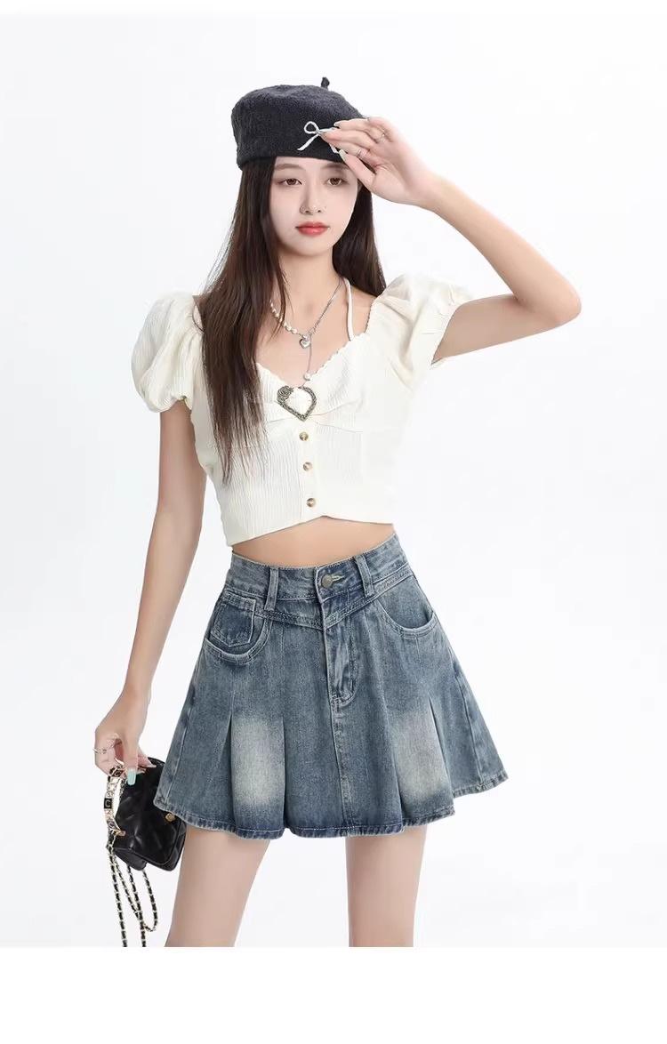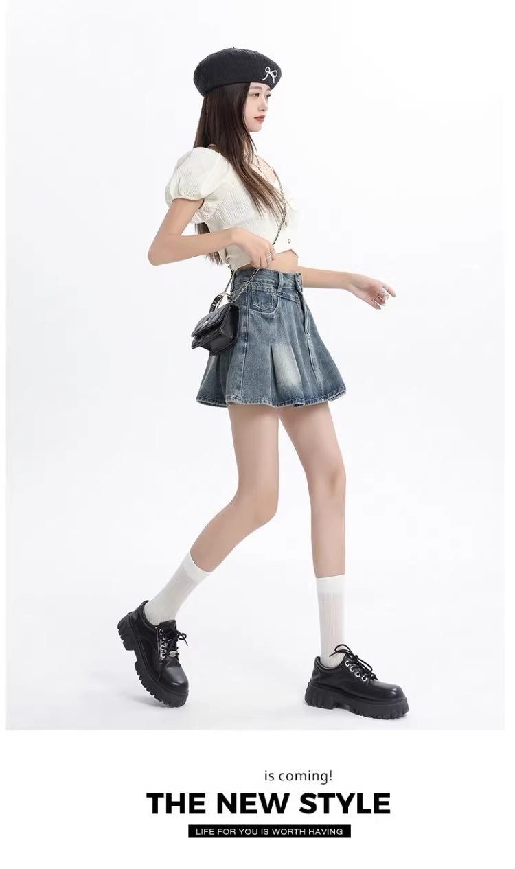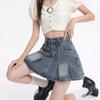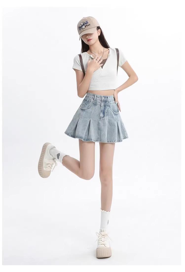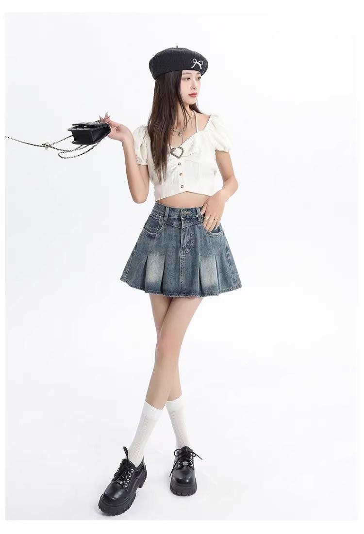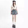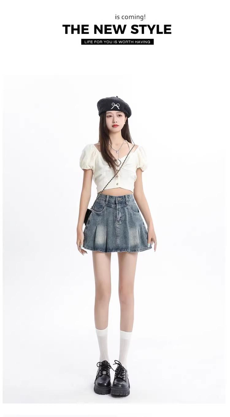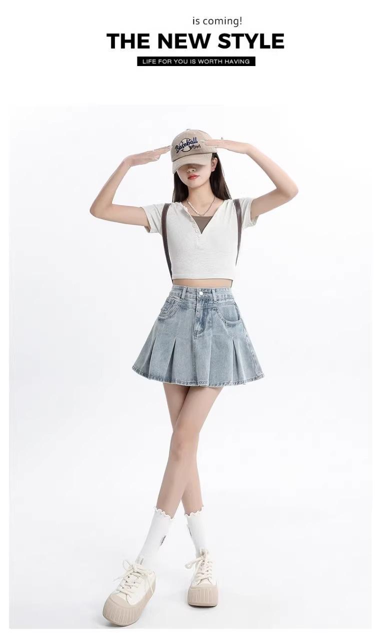 Falda vaquera de color claro para mujer, estilo americano de verano, estilo retro, cintura alta, adelgazante, plisada, corte A