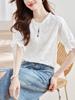 Camisa de Manga Corta con Cuello de Encaje de Algodón para Mujer, Nuevo Diseño de Nicho Verano 2026, Top Elegante y con Estilo para el Trabajo