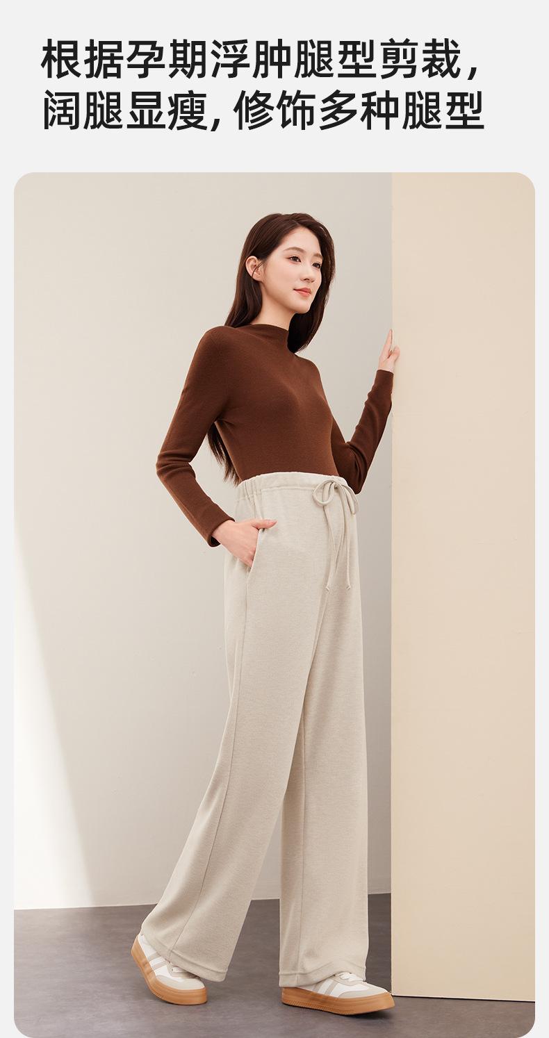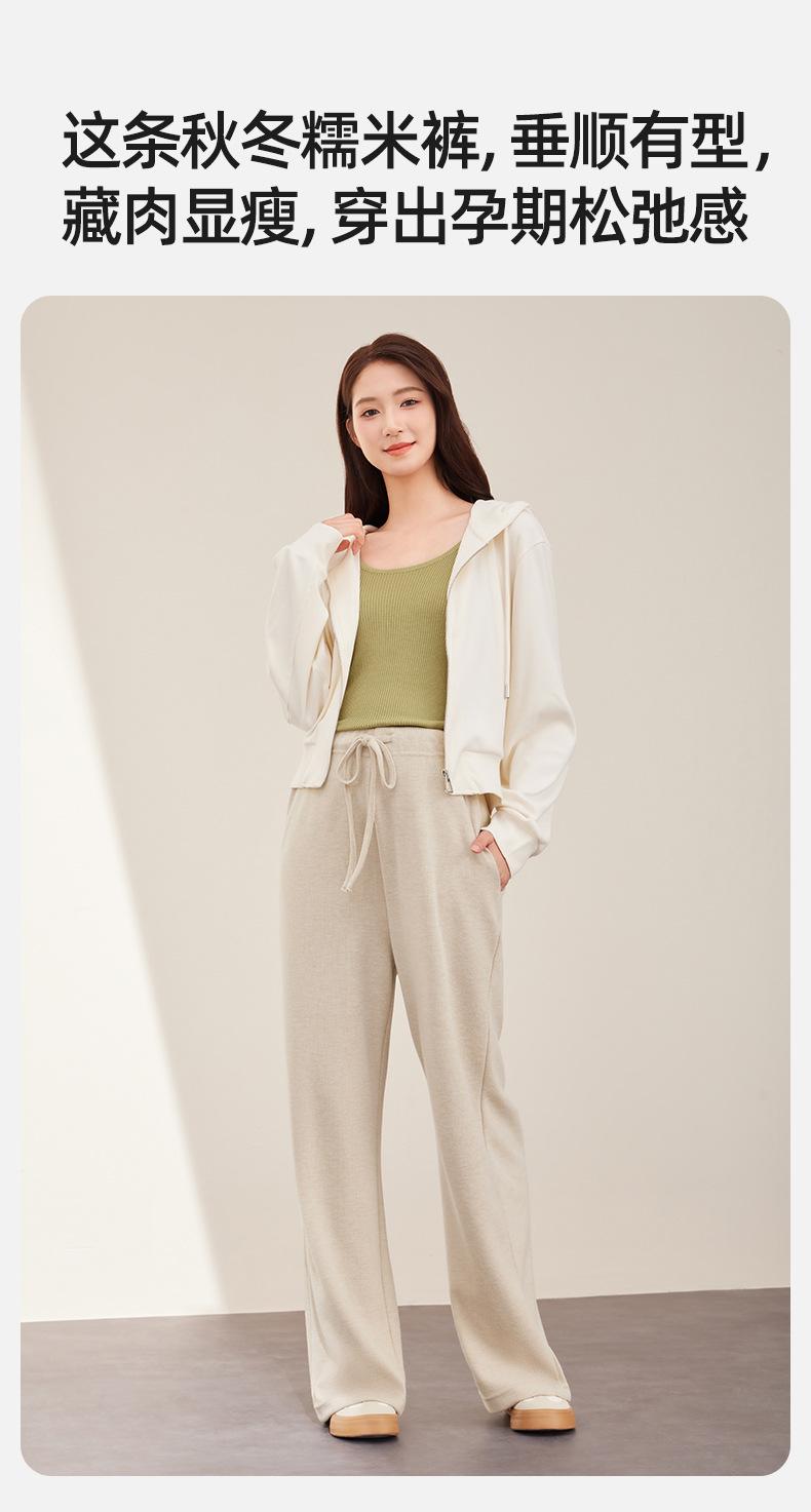 Pantalones de Maternidad Crystal de Octubre 2024 Otoño Gratis Todo-En-Uno Cordón Arroz Glutinoso Pierna Ancha para Ropa Exterior Pierna Recta Casual