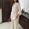Chaqueta de traje informal holgada de doble botonadura y pantalones casuales con doble pliegue para mujer europea y americana de primavera 2025.