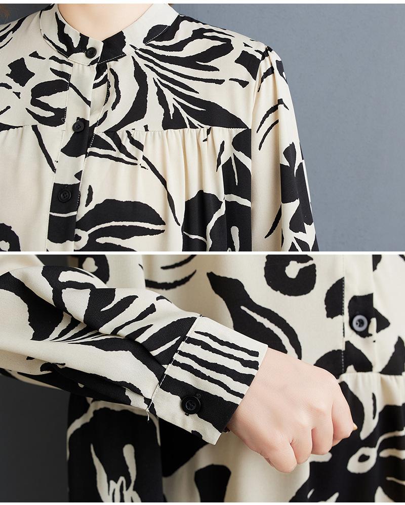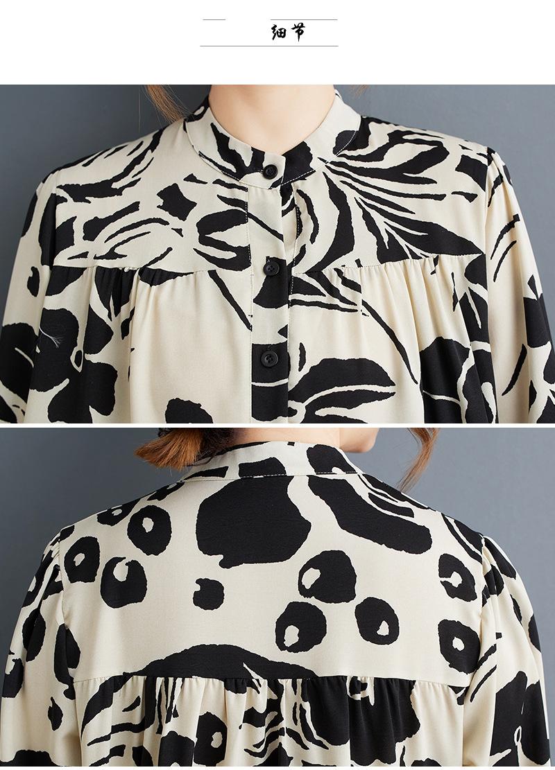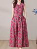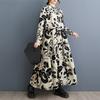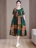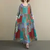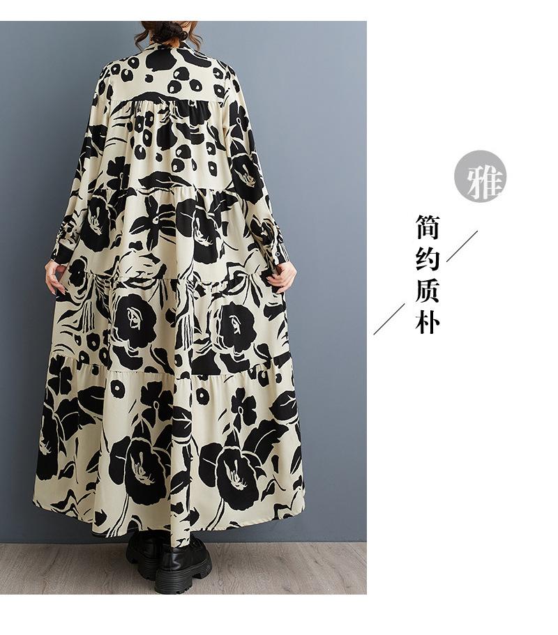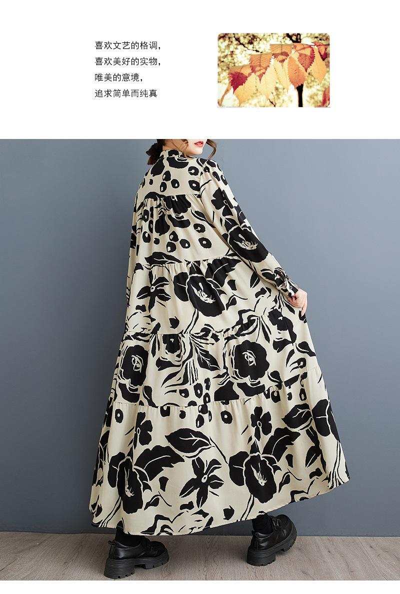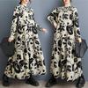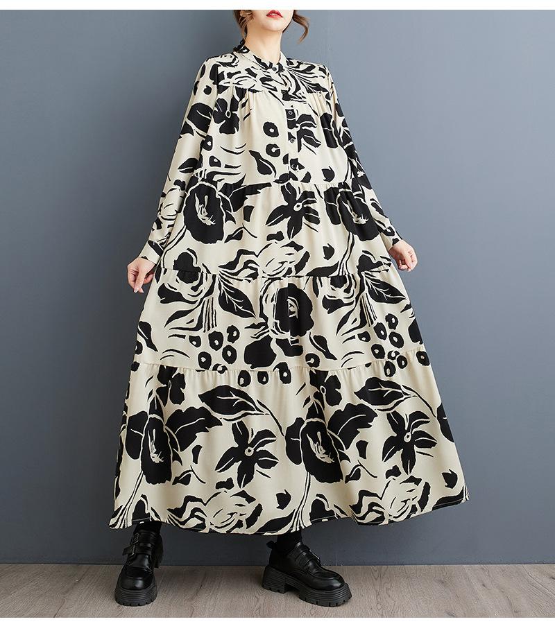 Primavera y Otoño 2025 Nuevo Talla Grande Cuello Redondo Manga Larga Suelto Amplio Vuelo Vestido de Comercio Exterior para Madres de Mediana Edad y Mayores