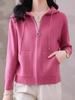Casaco com capuz feminino, bolso, primavera e outono 2025, novo, solto, top, malha, cardigan, primavera e outono