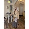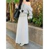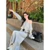 Traje casual Gris hombros descubiertos Manga larga Sudadera Ropa de mujer Primavera Falda de cintura alta Falda línea A Conjunto perezoso de dos piezas