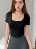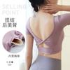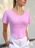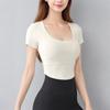 Ropa de Yoga Lulu para Mujer con Almohadillas en el Pecho, Tops de Manga Corta de Secado Rápido, Cintura Descubierta y Espalda Hermosa, Ropa Deportiva Profesional para Correr y Fitness