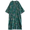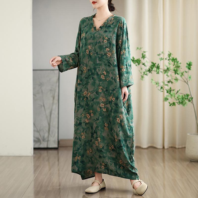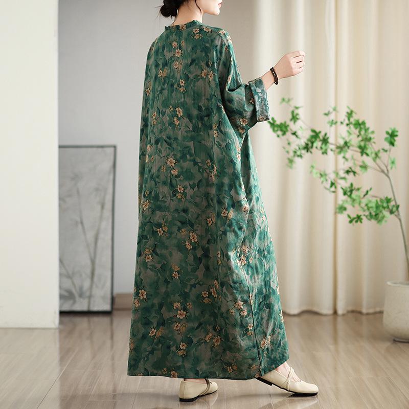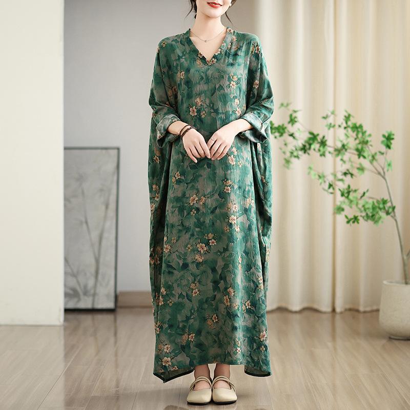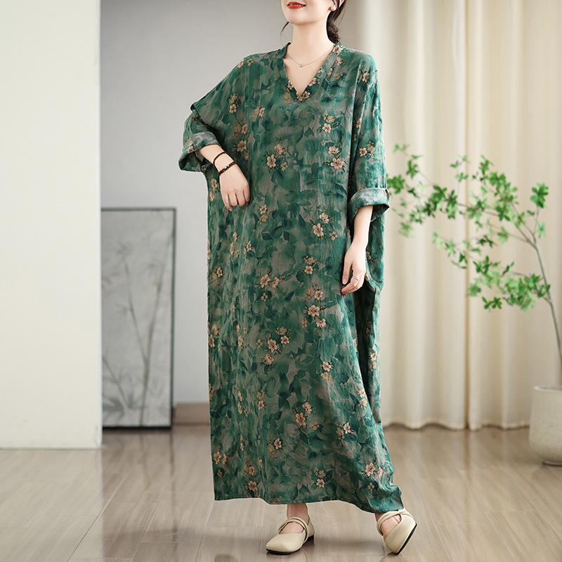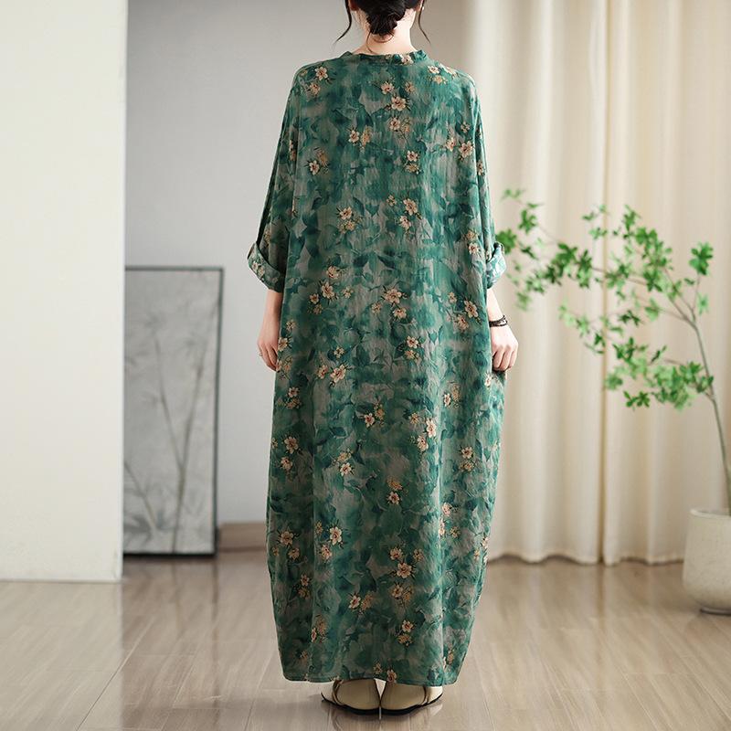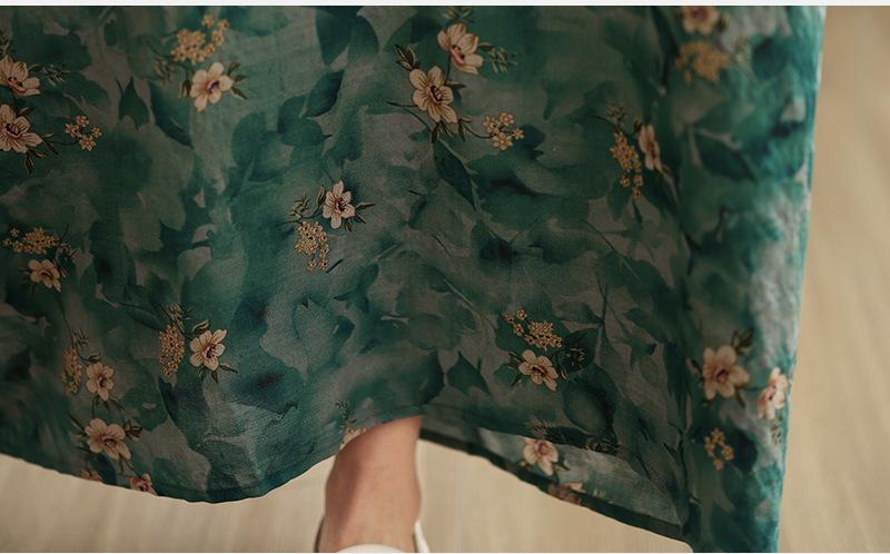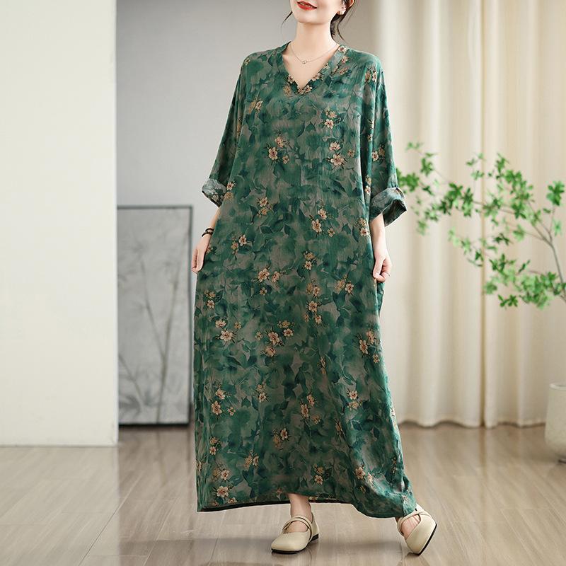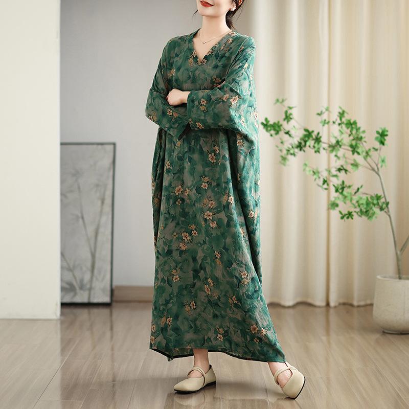 Vestido de algodón y lino con cuello en V, estilo retro, estilo festivo, de viaje, con falda larga y color, de principios de primavera de 2025.