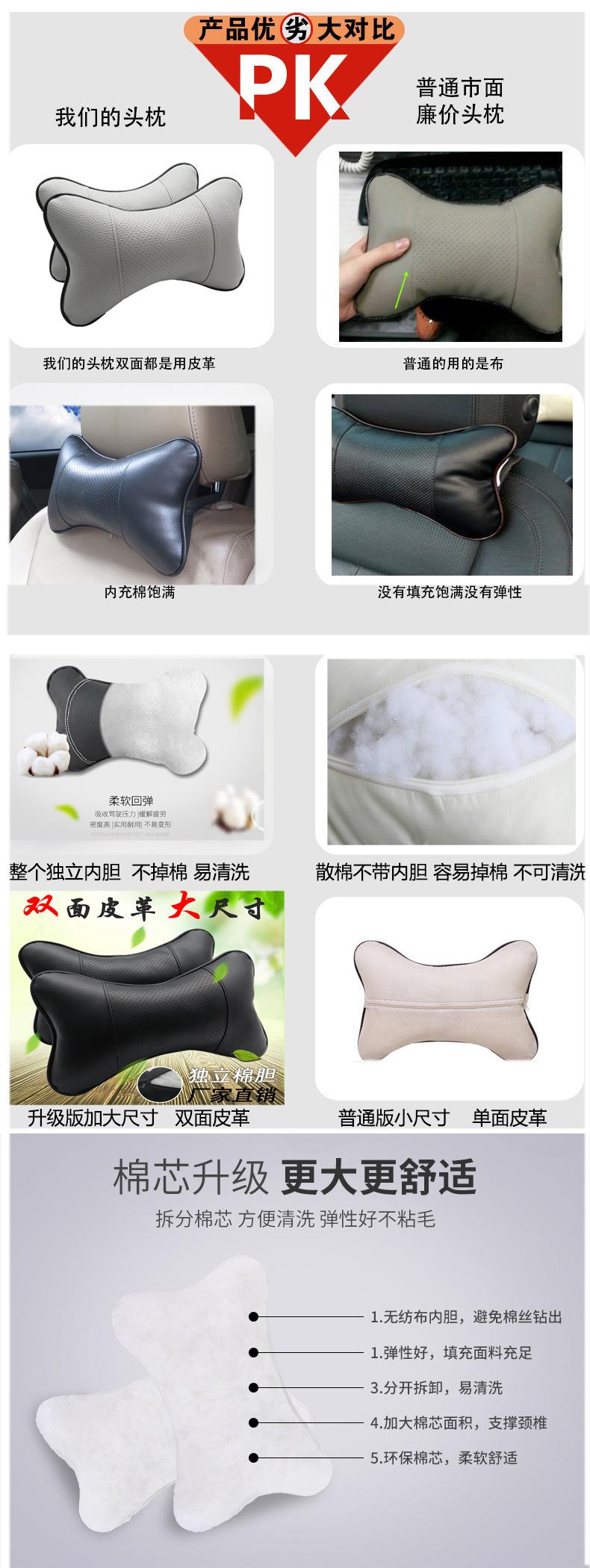Double-sided leather headrest pair Black, Double-sided leather headrest a pair of black spell Red, Double-side...