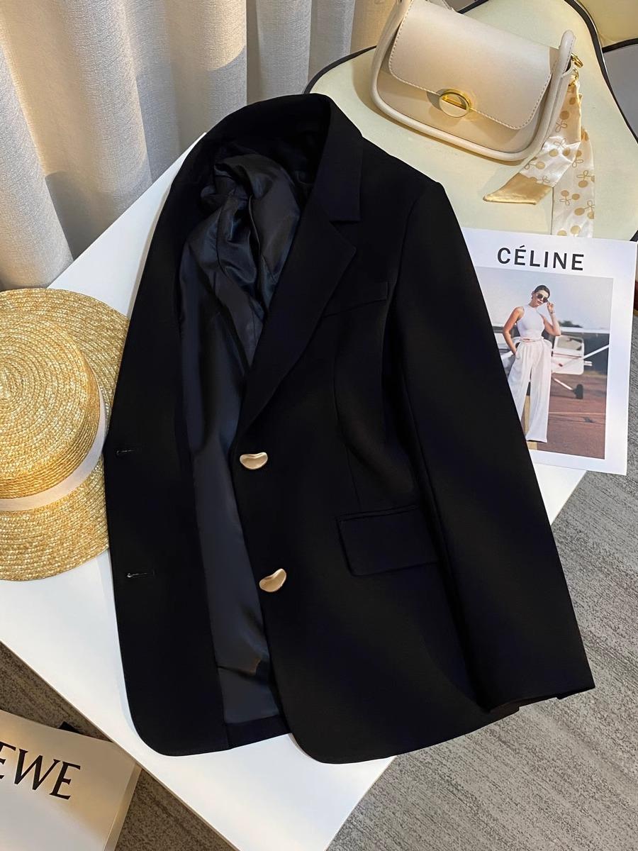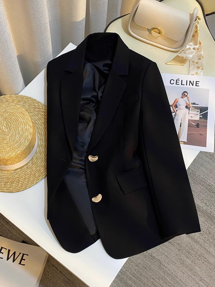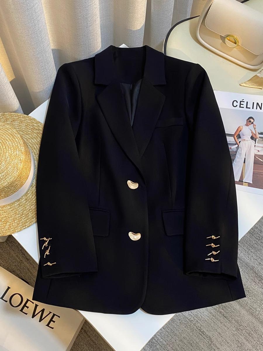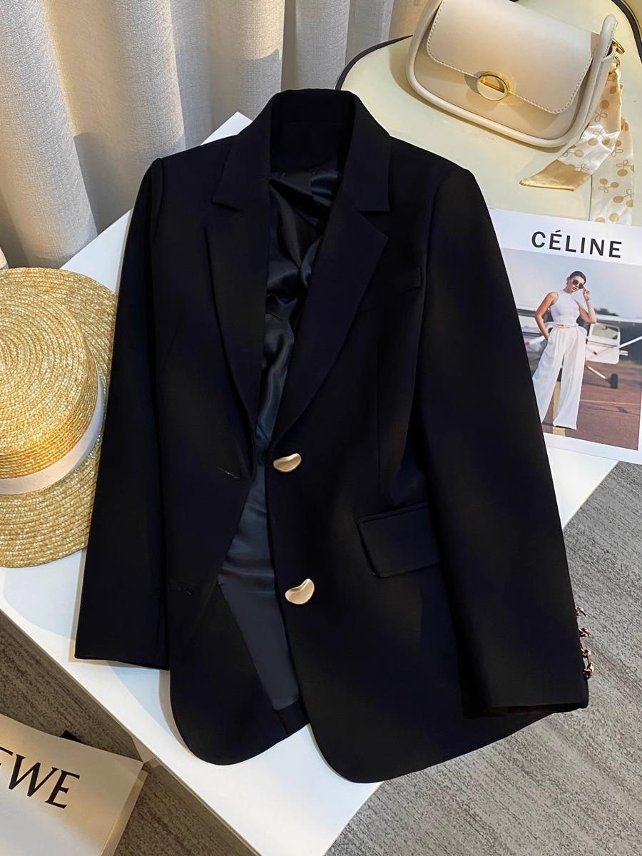 Chaqueta de Traje Negra para Mujer 2025 Otoño Nuevo Estilo Coreano Diseño de Alta Gama Casual Versátil Traje Pequeño A3151