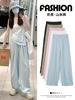 Calça Yamamoto de Seda de Leite Azul para Mulheres 2026 Novo Verão Estilo Fino Petite Casual Solta Preguiçosa Seda de Gelo Calça Wide Leg